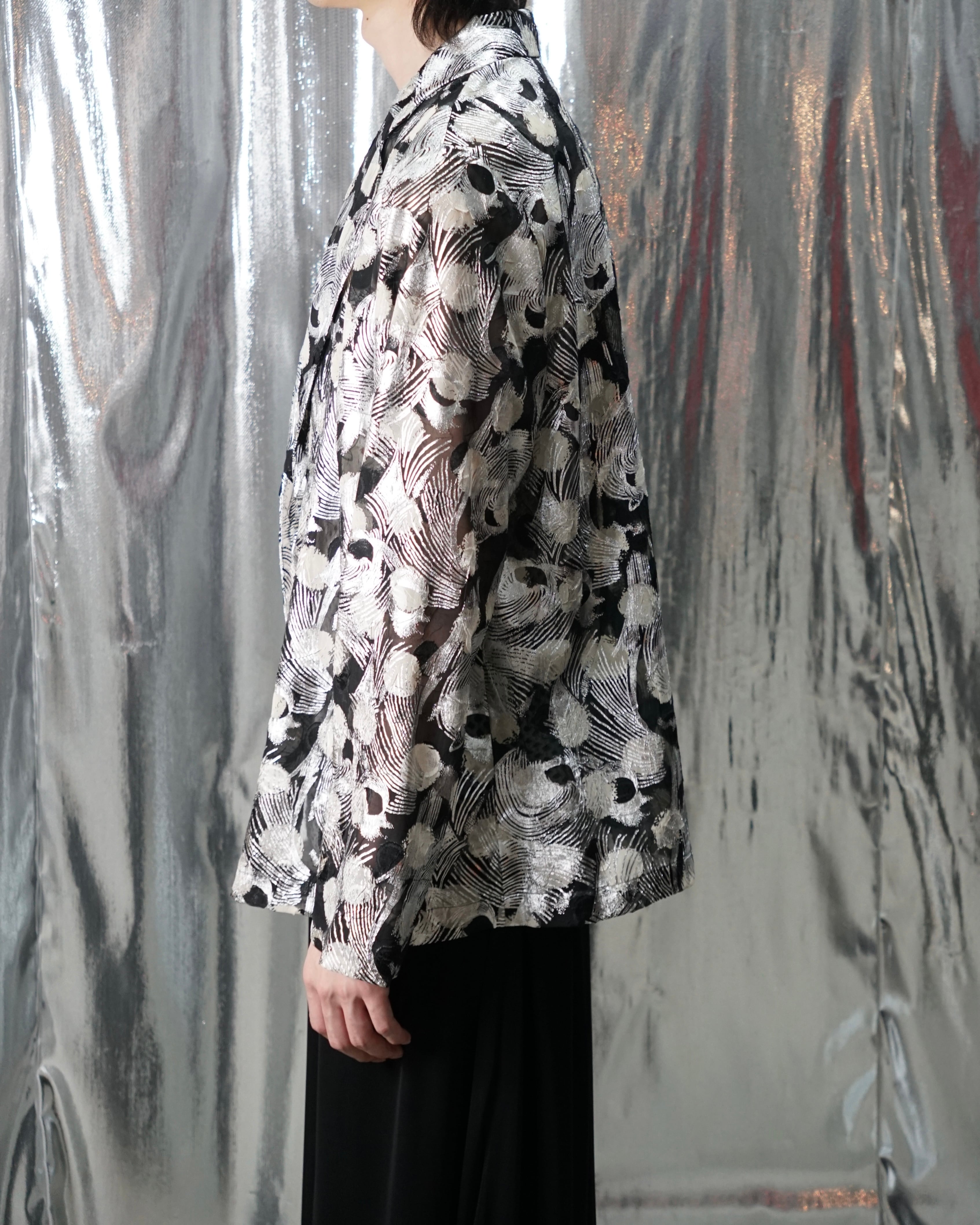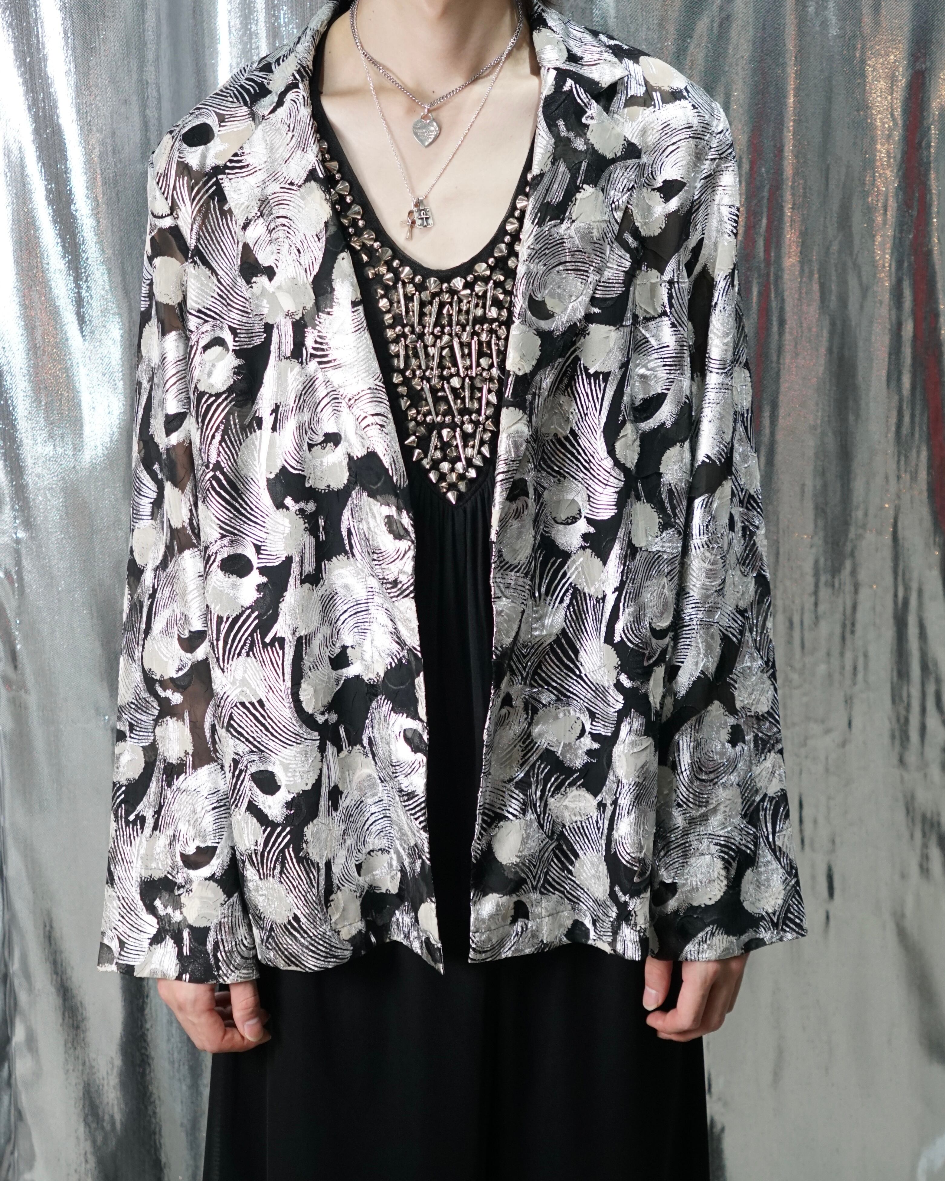 シルバーの輝きが最高なシースルーのテーラードジャケット。