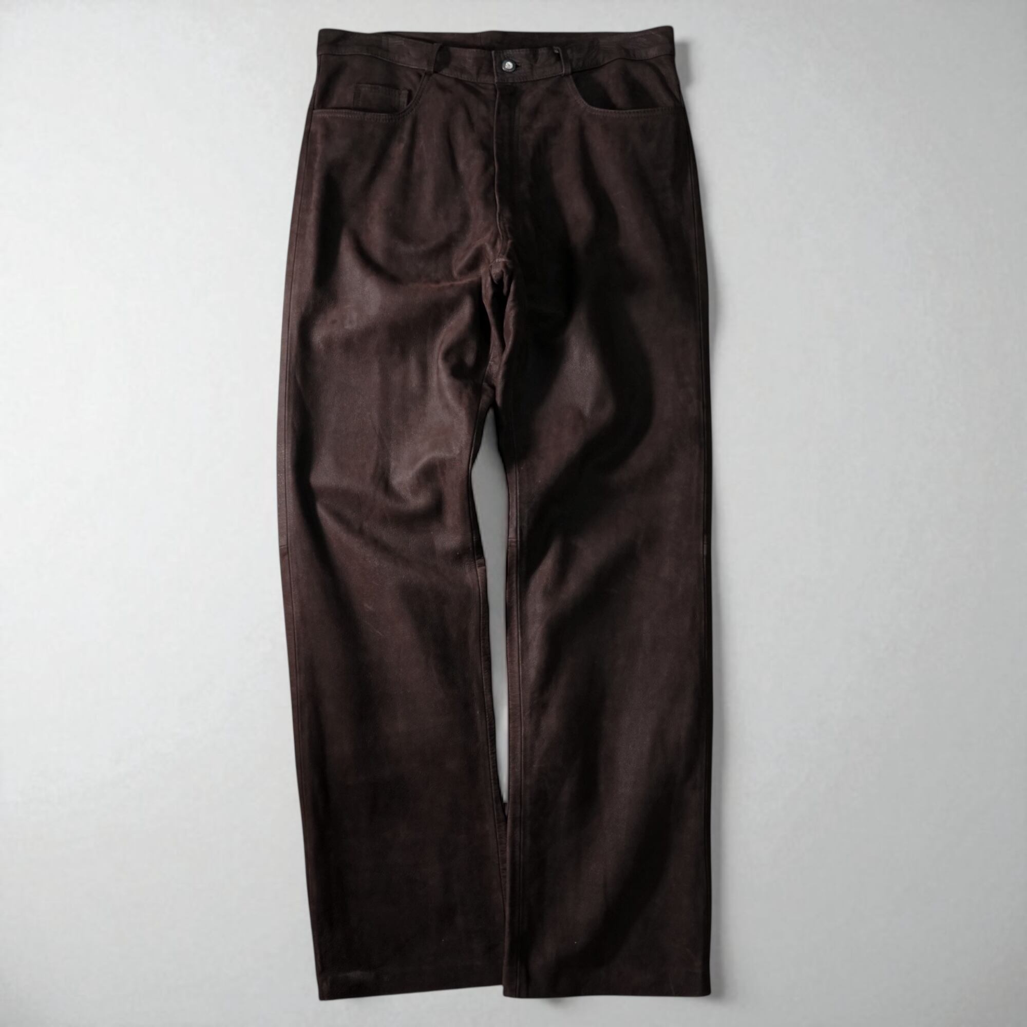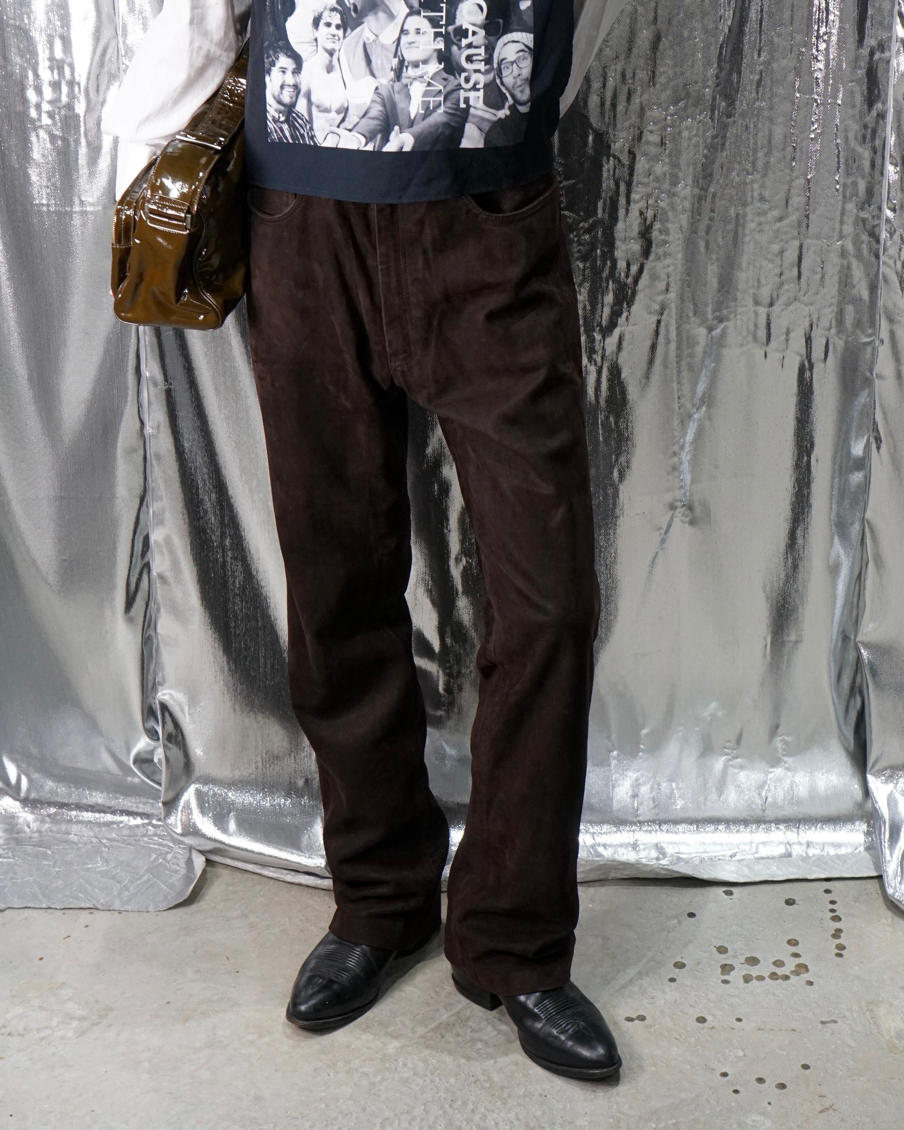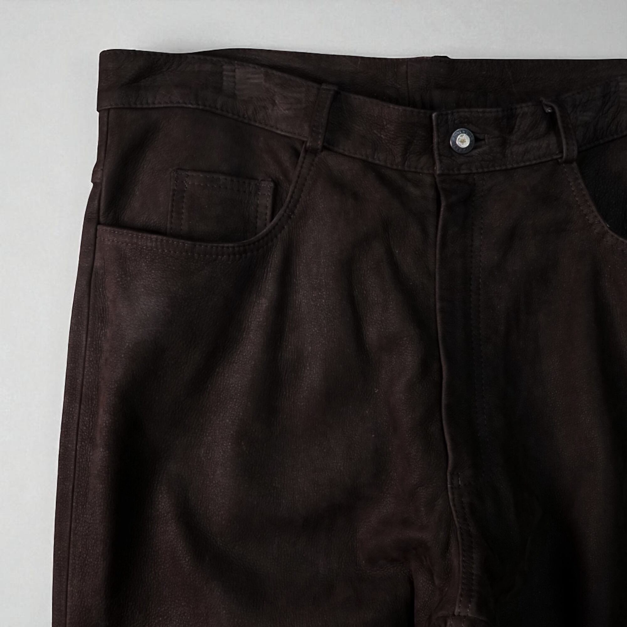 この時代ならではの独自性を色濃く残した、ヌバックレザー仕様のレザーパンツ。