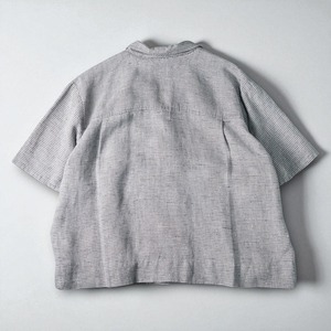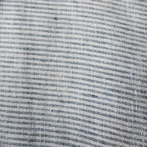 リネン100%ならではの軽やかな風合いに、繊細なボーダーと、よく見ると浮かび上がるカスリ柄が奥行きのある表情をプラス。
