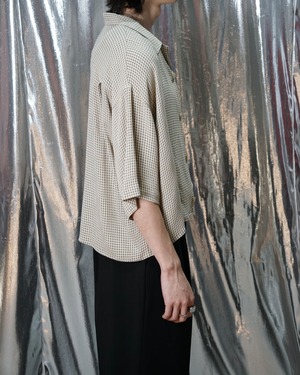 開放感のあるオープンカラー仕様で、夏のリゾートや都会的なリラックススタイルに最適な一着です。