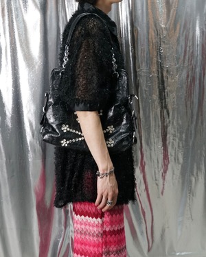 オーバーサイズシルエットと、毛足のあるフラッフィーな質感が絶妙に組み合わさり、退廃的かつセンシュアルなムードを漂わせる1着です。