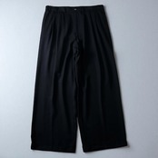 深く取られた3タックにより、腰回りにゆとりと構築的なボリュームを生み出し、裾にかけてストンと落ちる極太のラインが魅力。