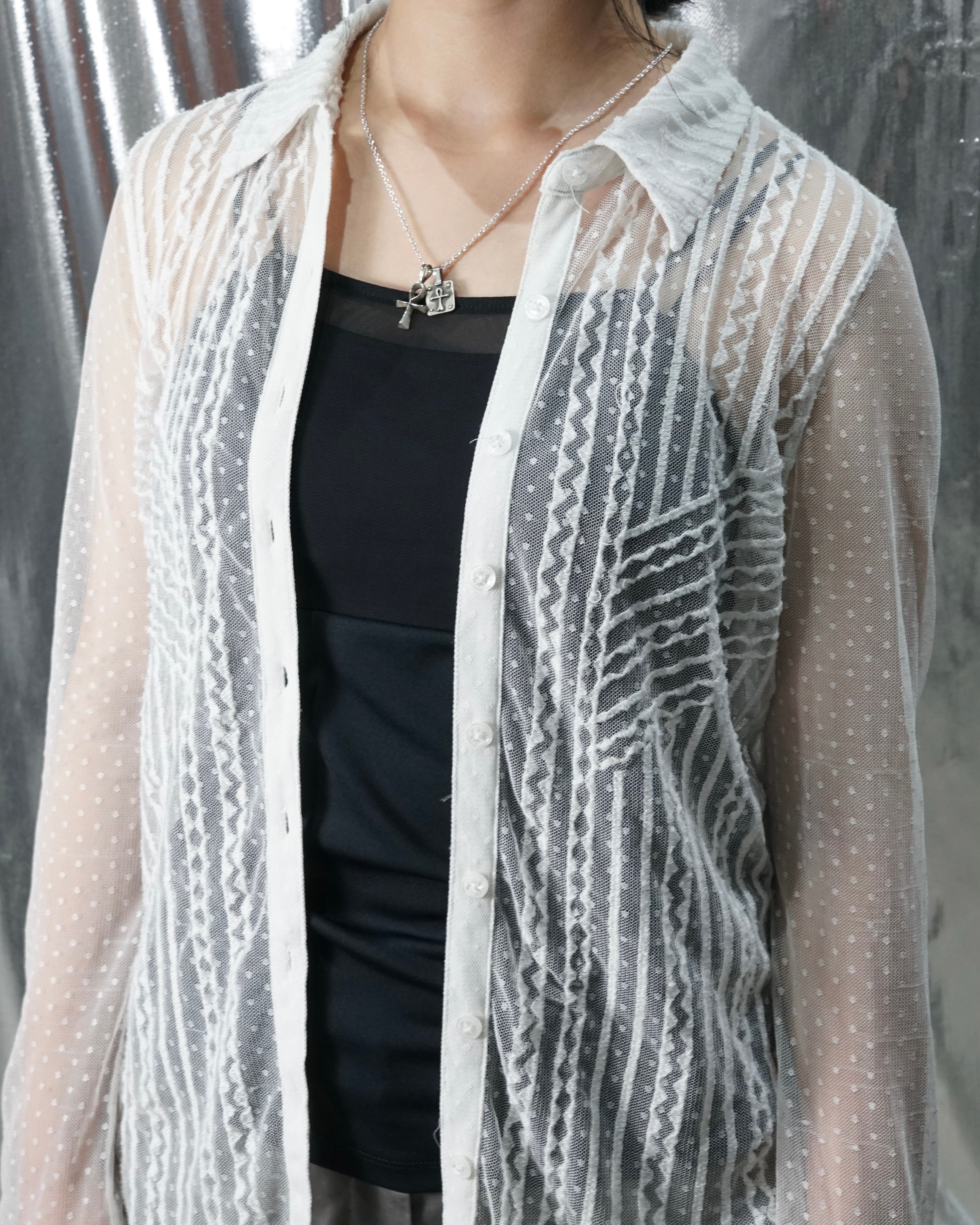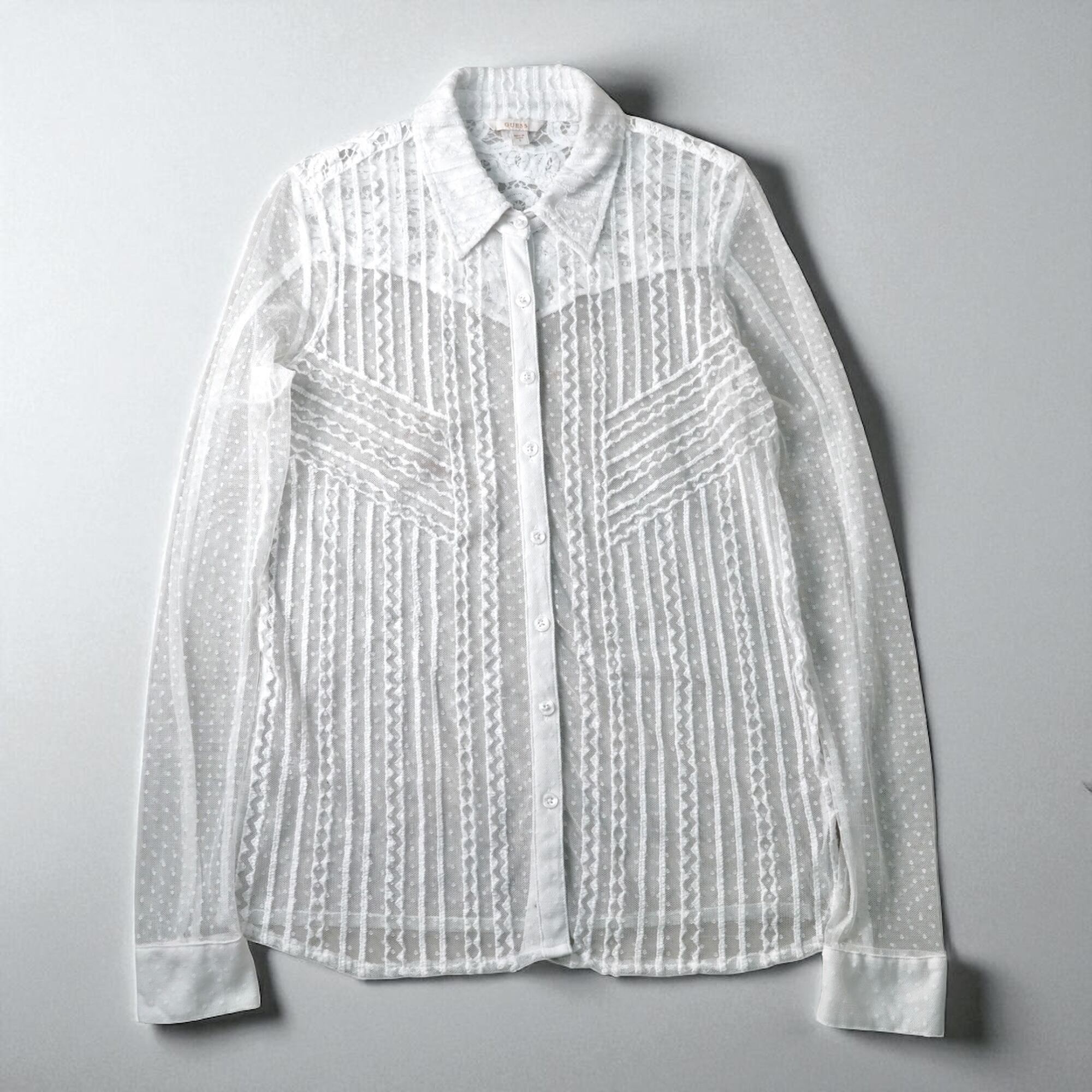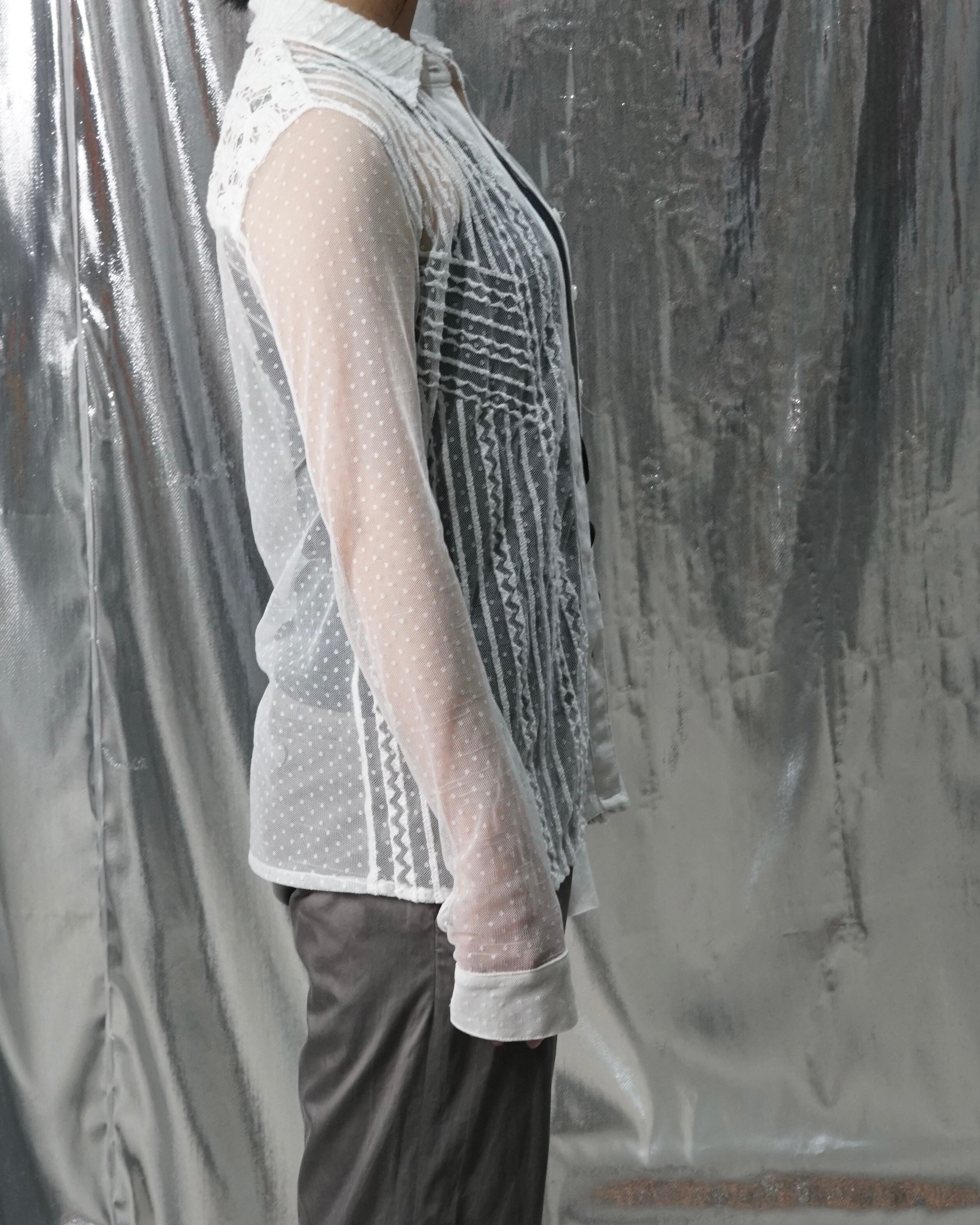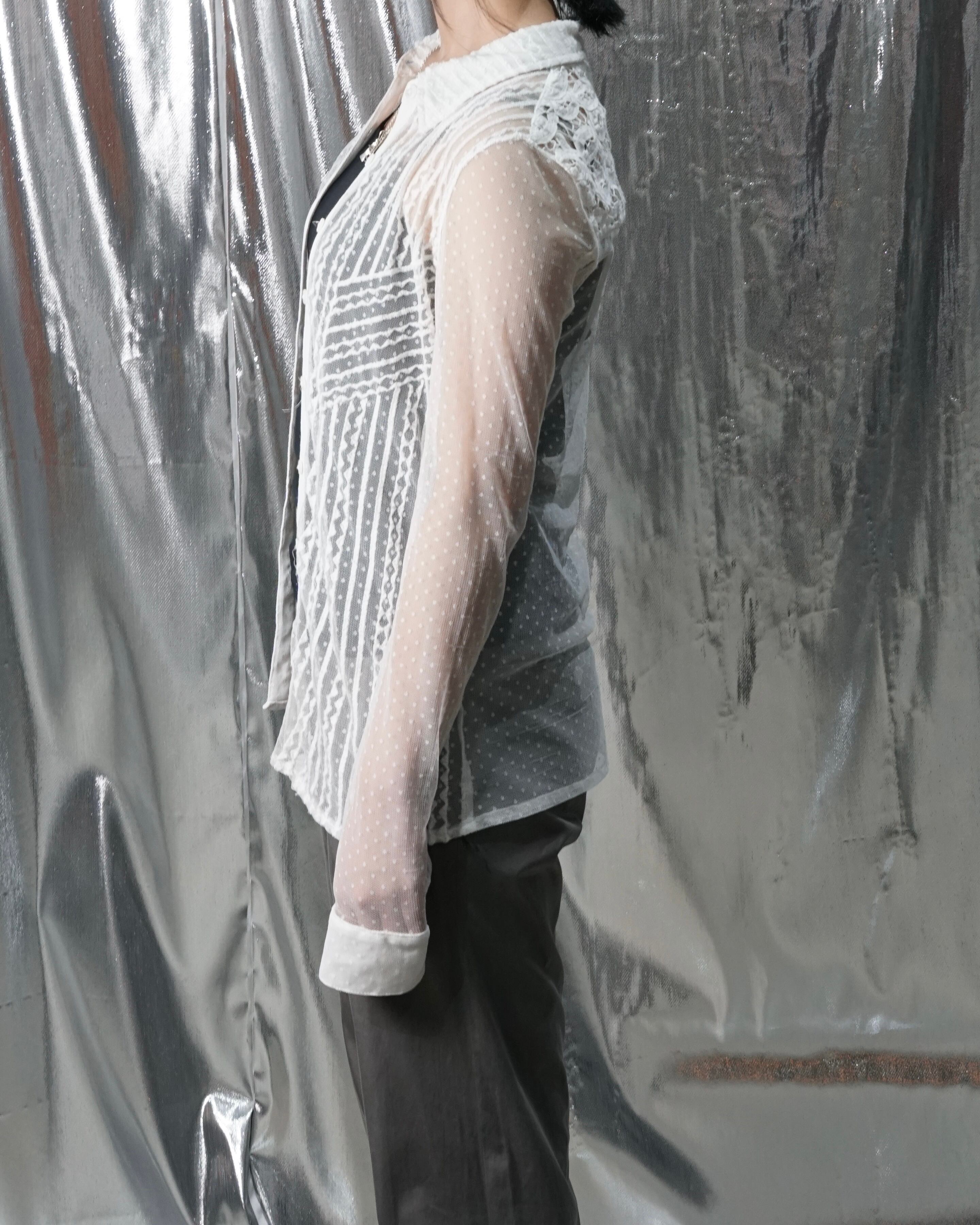 上品な透け感のあるホワイトレースを贅沢に使用したウエスタンシャツ。