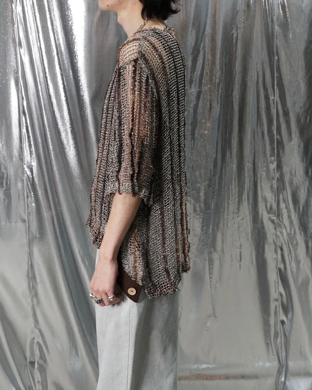 Vintage poly- rayon mesh cut-sew "BROWN"