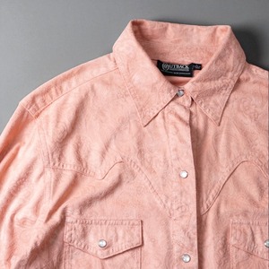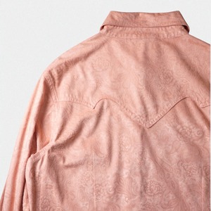 柔らかく起毛させたピーチスキン生地に、同色のペイズリー柄がさりげなく浮かび上がるウエスタンシャツ。