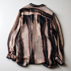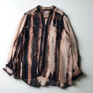 しなやかで軽やかなピュアシルクを使用した、透け感のあるスタンドカラーシャツ。
