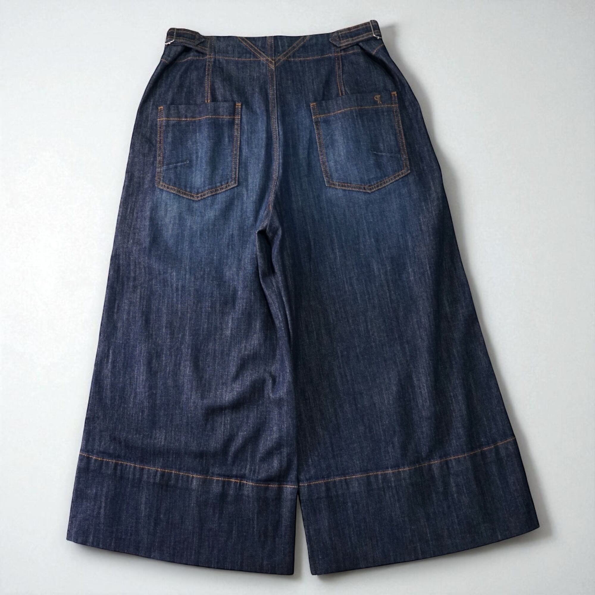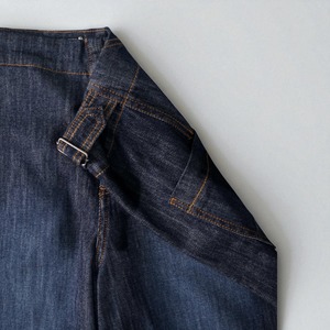 インディゴカラーの深みある色合いに、ウエスト部分のバックルデザインがアクセント。