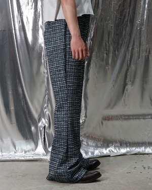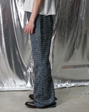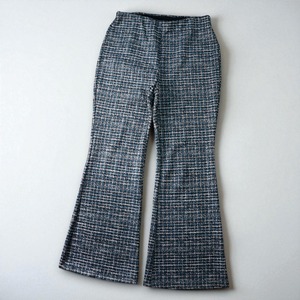 上品なラメが織り込まれたツイード生地は、83%ポリエステル、10%レーヨン、5%アクリル、2%スパンデックスの混紡素材。