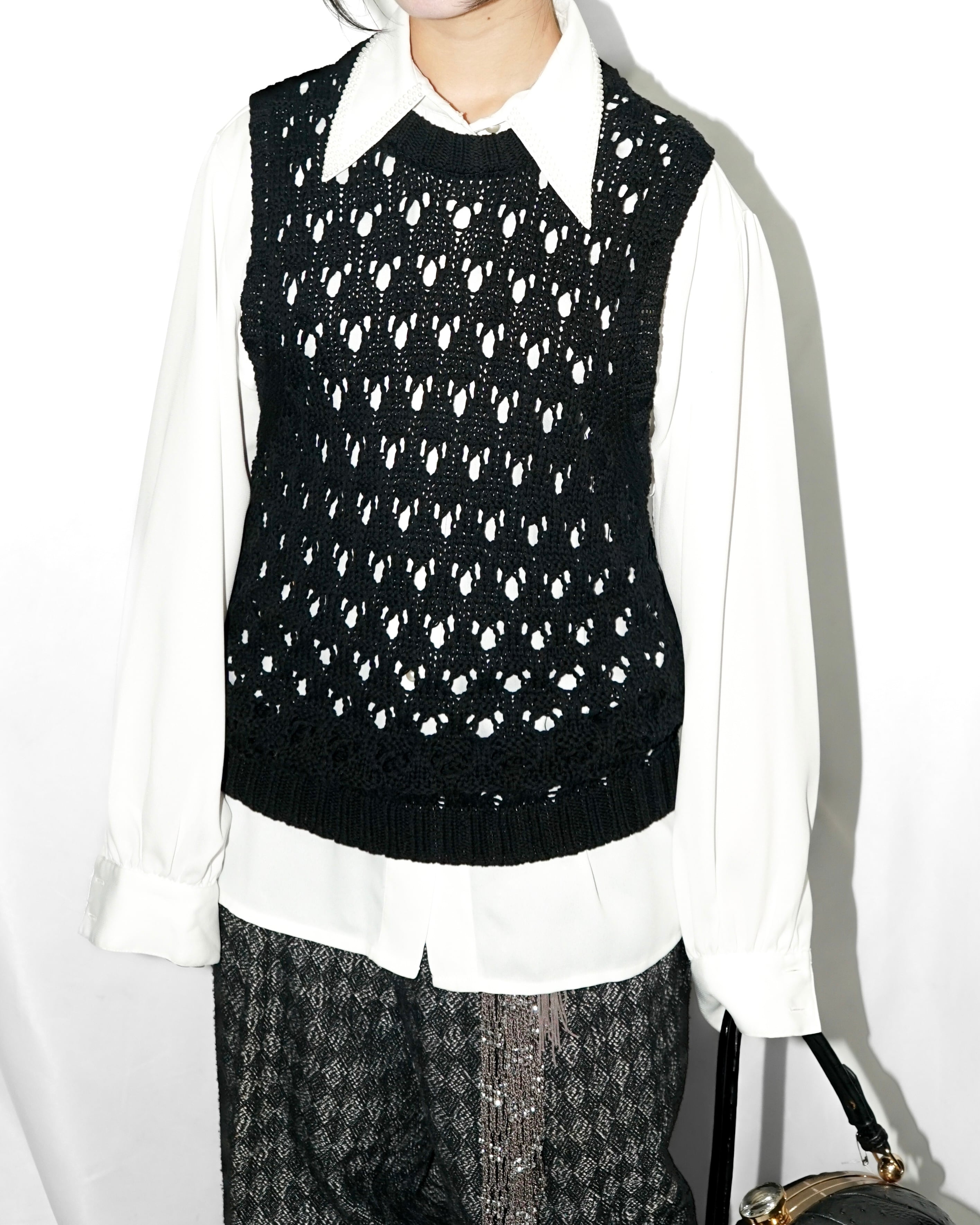 モードブランド kolor らしい構築的な編みの表情を持つ、ヴィンテージのメッシュニットベスト。
