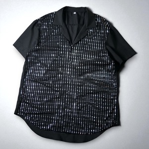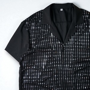 ブラックを基調に、フロントを覆う煌めくシルバーのスパンコールが圧倒的な存在感を放つ一枚。