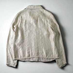 シャンパンゴールドの上品な光沢に、シワ加工のような独特の表情を加えたトラッカージャケット。