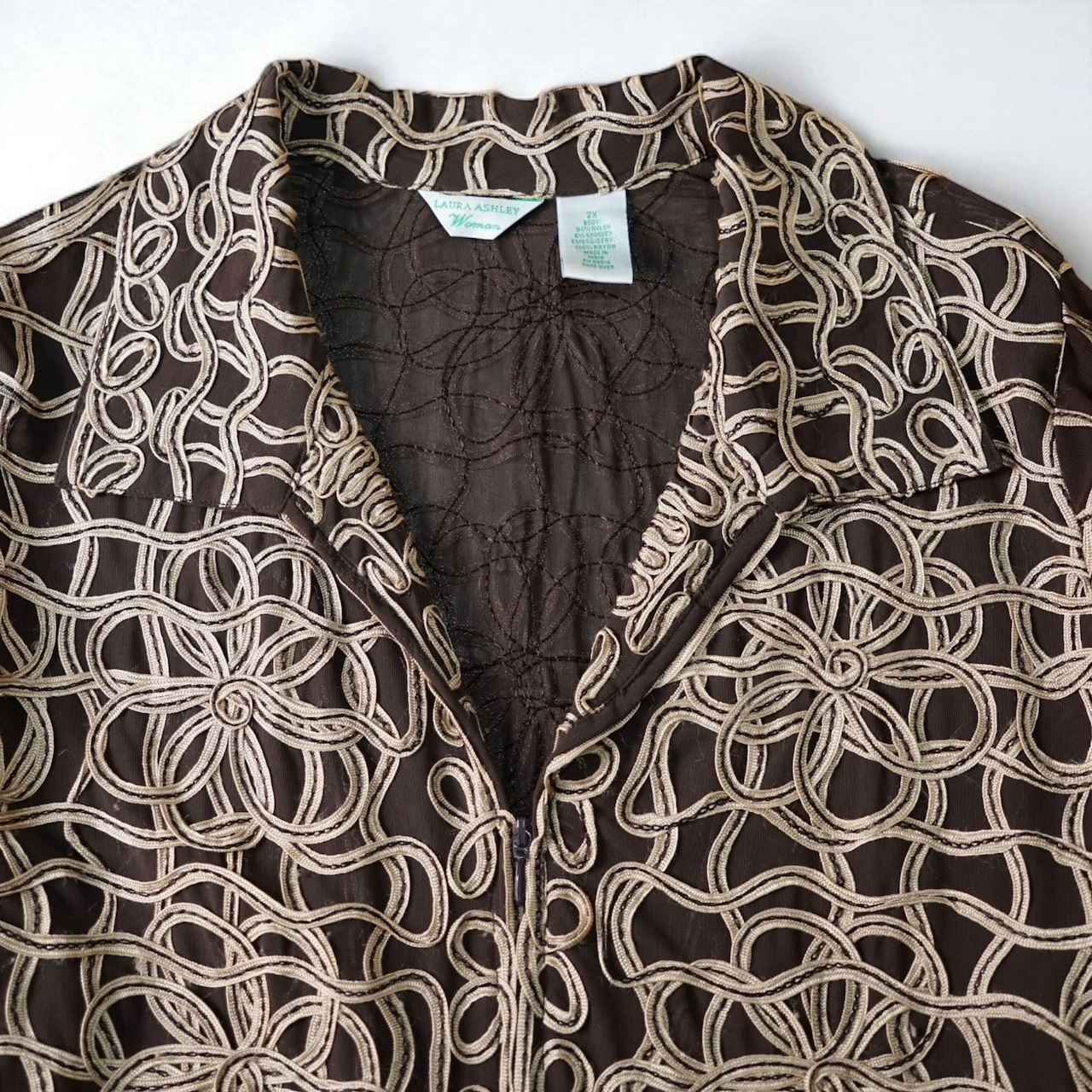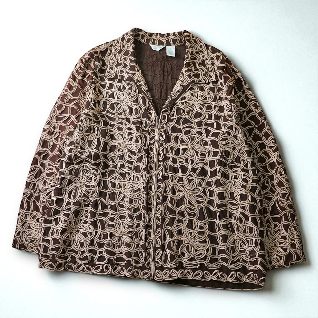 Vintage embroidery skipper see-through zip jacket "BROWN"