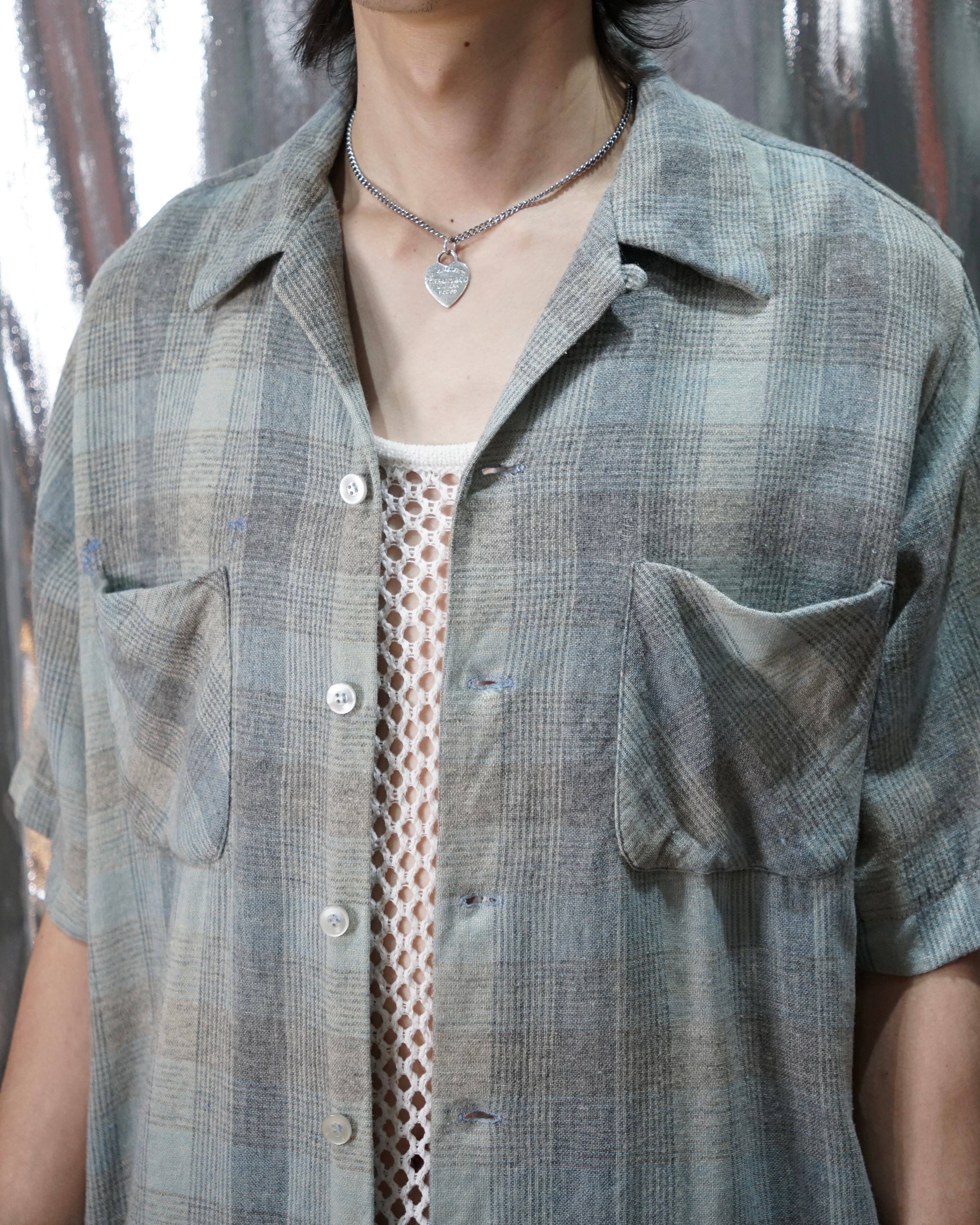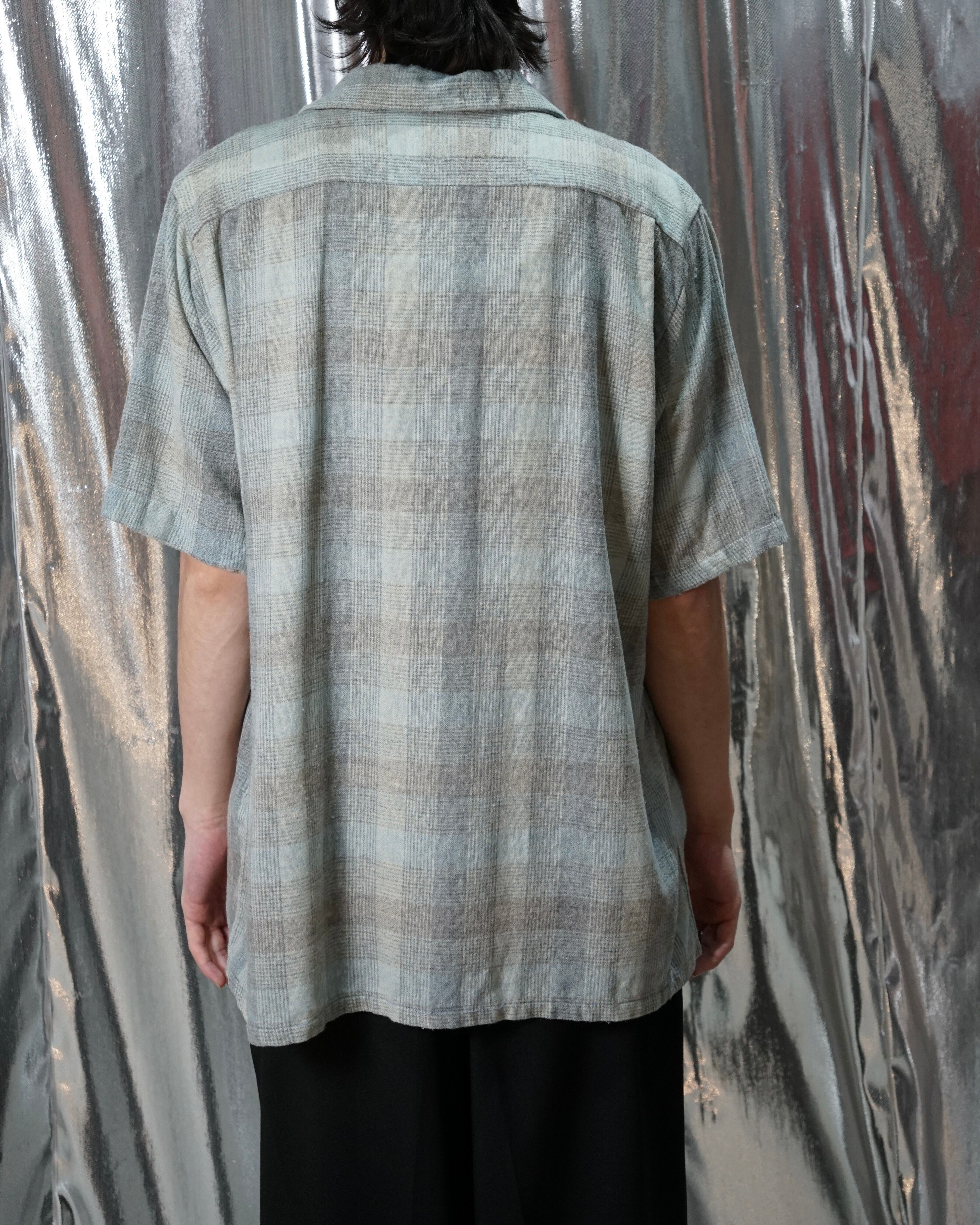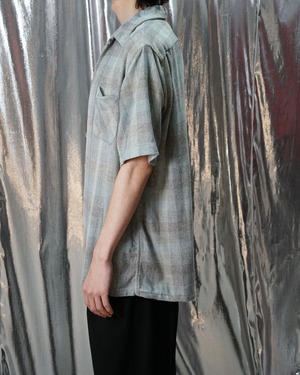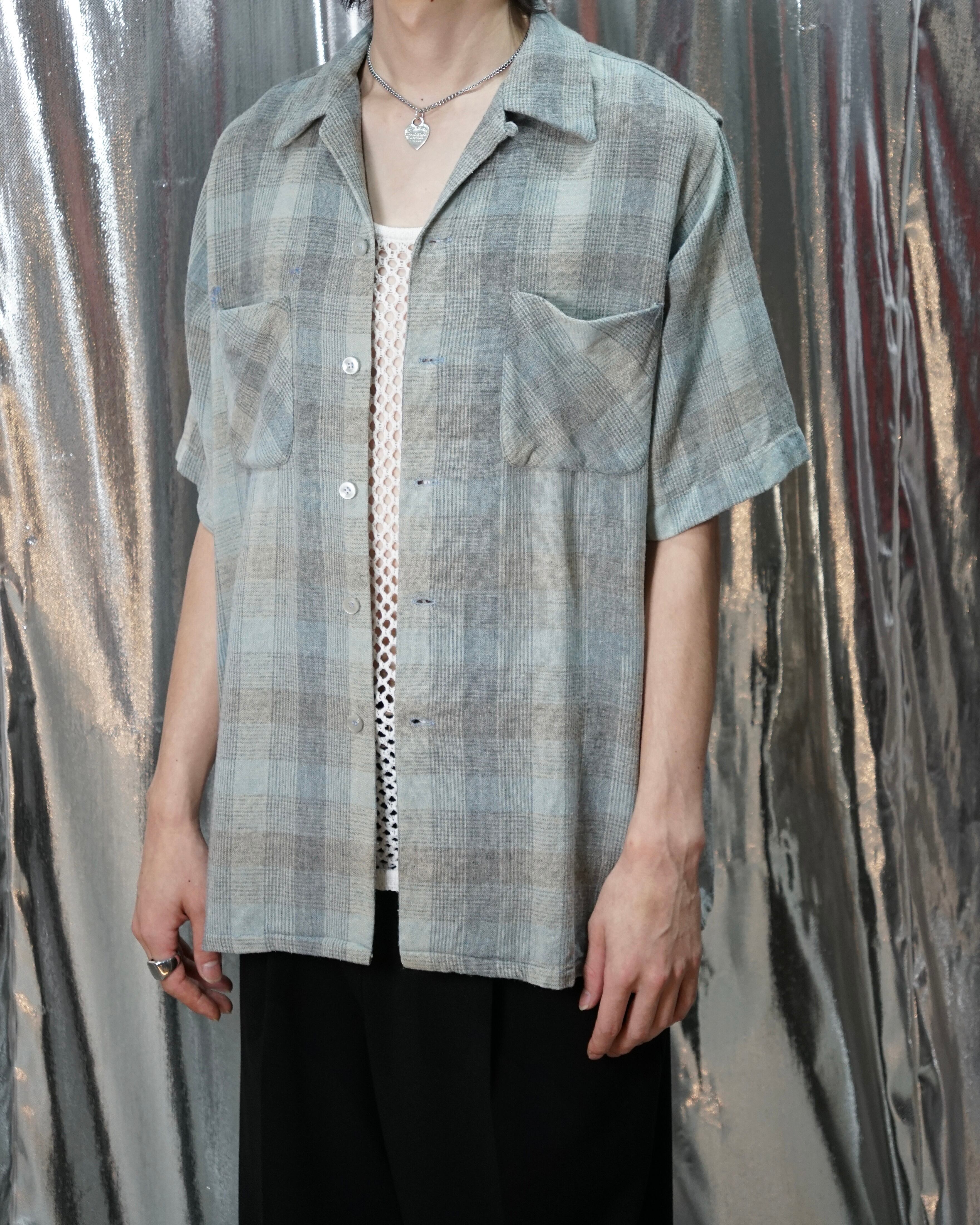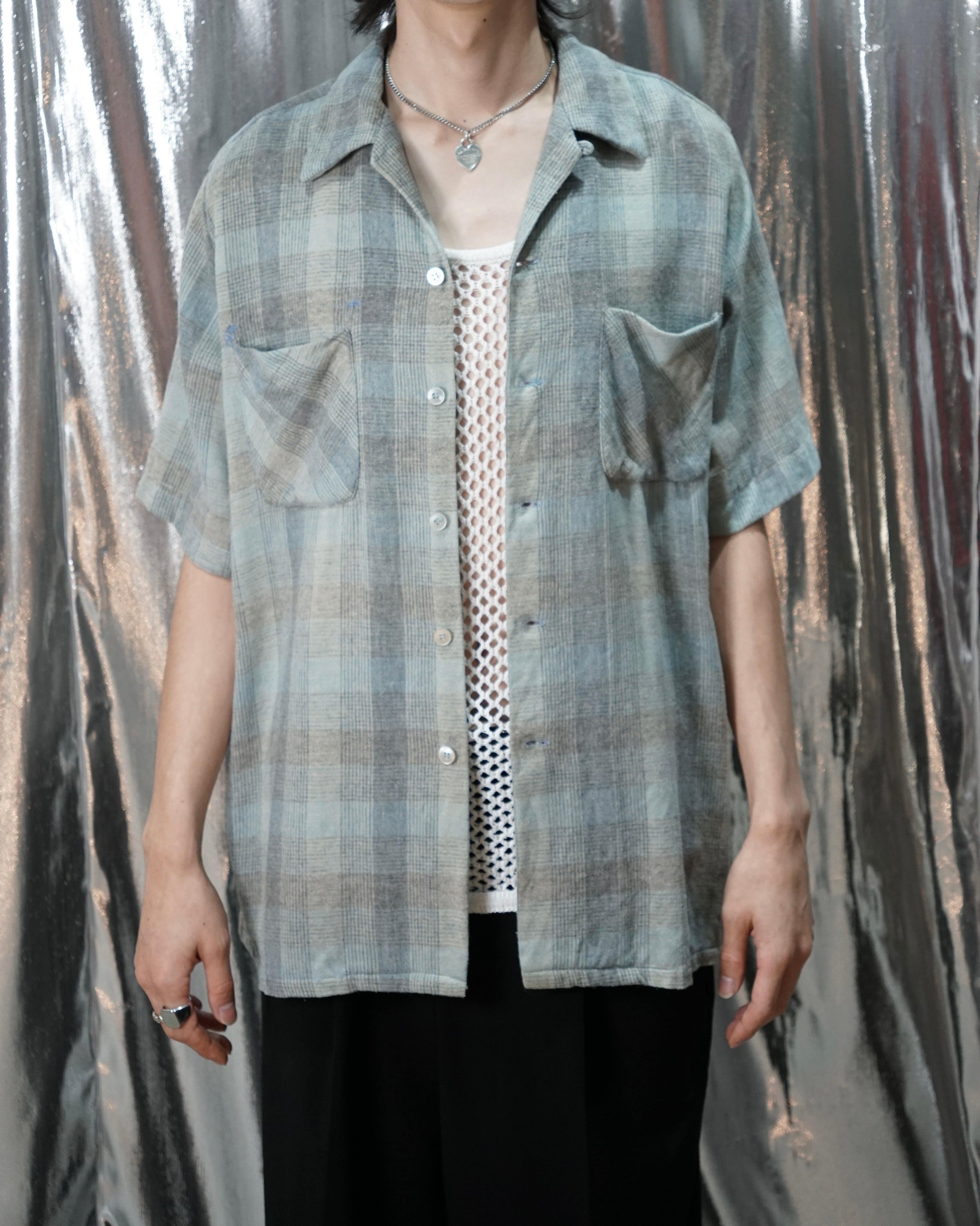 淡い水色とグレーで構成された柔らかなチェック柄が、どこか品のある佇まいを見せる1960年代のヴィンテージシャツ。