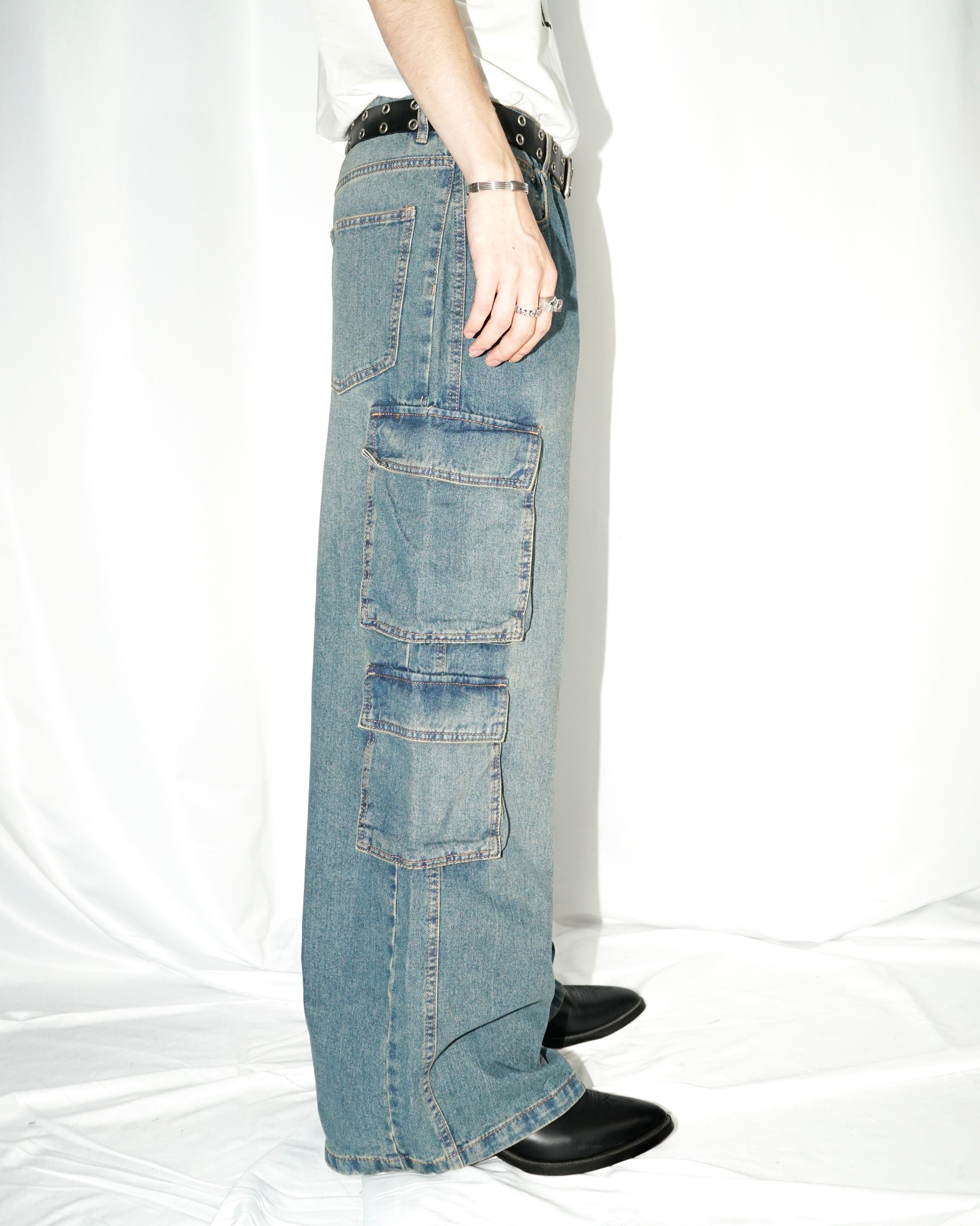 Vintage buggy flare faded cargo denim pants