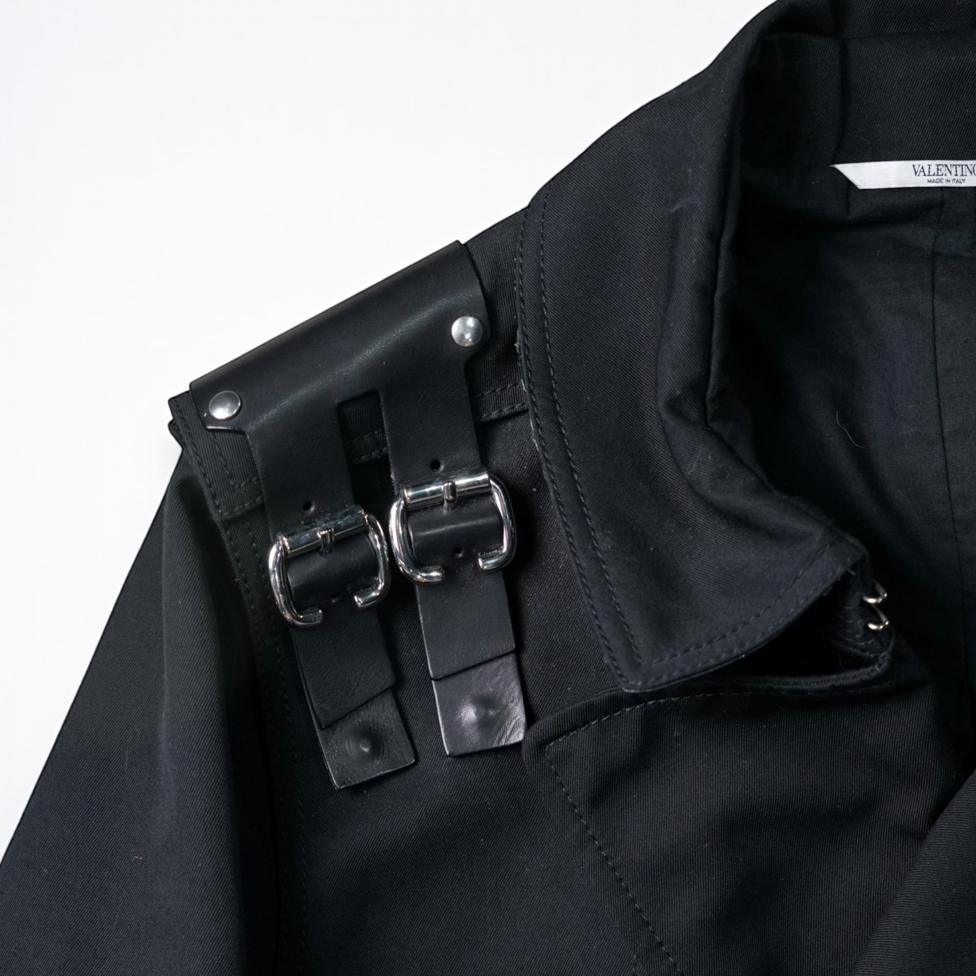 ショルダー部分に施されたレザーストラップとバックルのデザイン性が視覚的なアクセントとして落とし込まれており、機能性を超えて、モダンでアバンギャルドな印象を演出して頂けます。