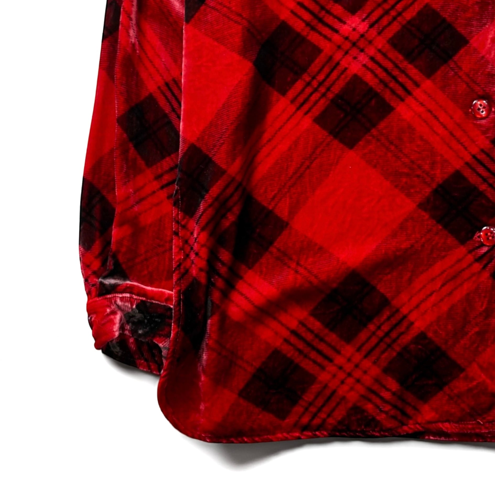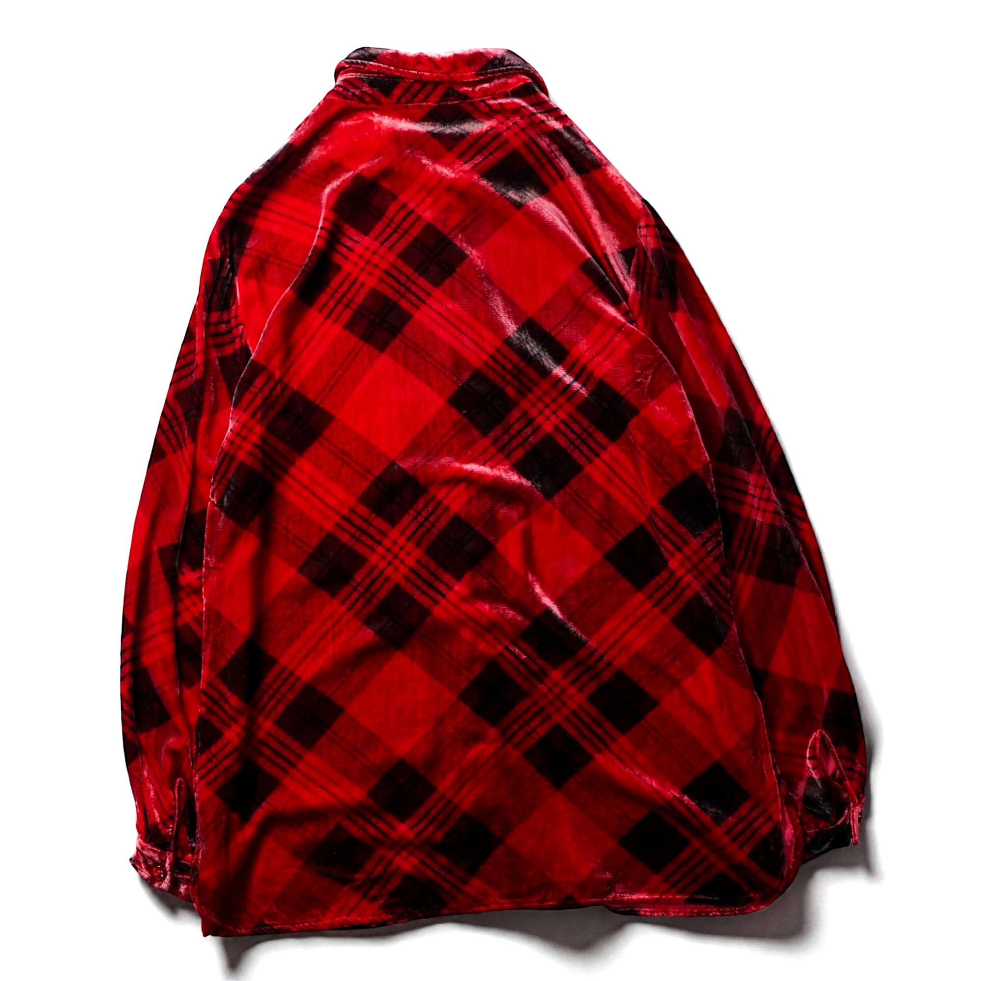 クラシックなチェック柄を、あえてベルベット素材で表現することで生まれるレトロ×ラグジュアリーな雰囲気が特徴。