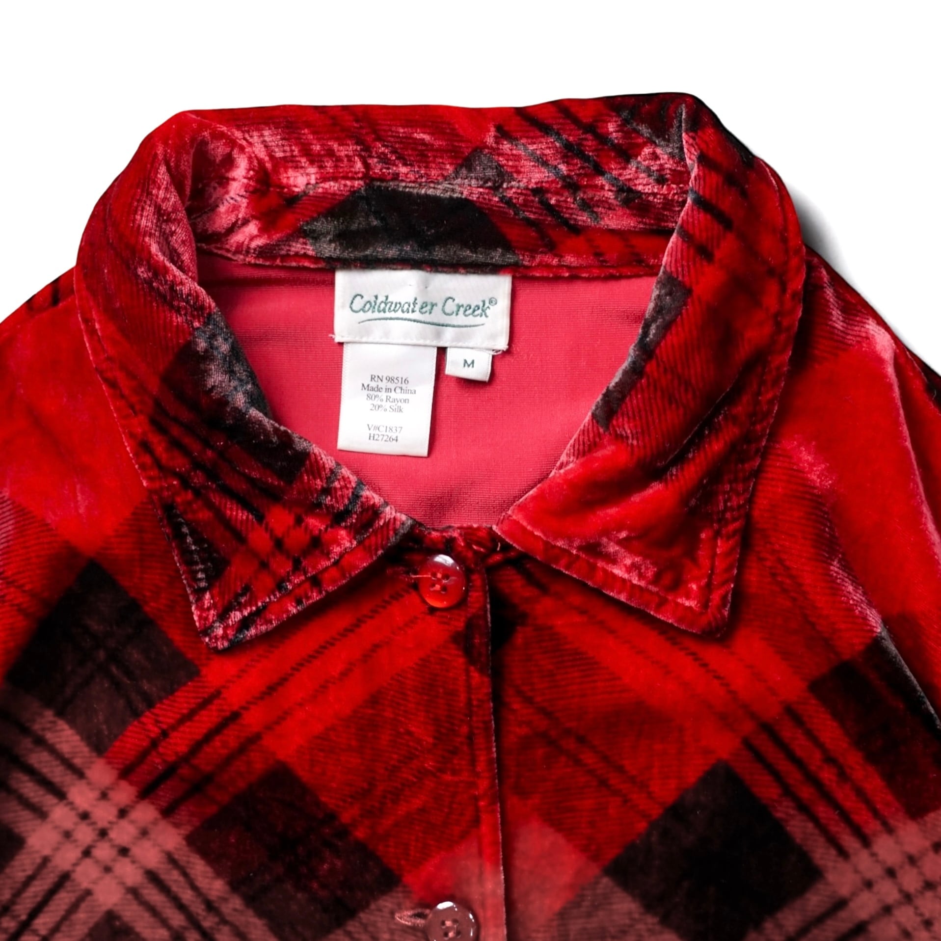 深いレッドトーンにブラックチェックを重ねた、