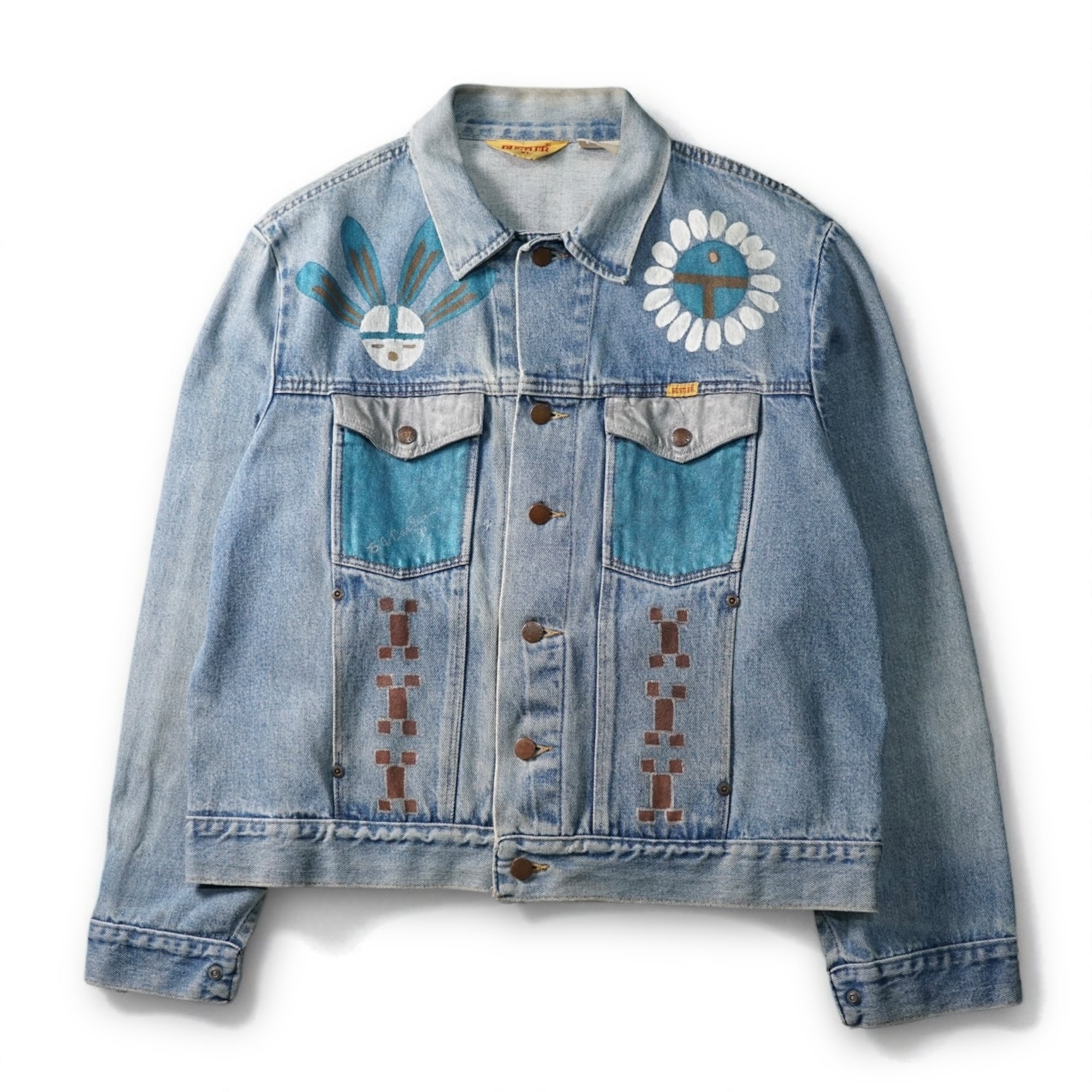 80年代アメリカのデニムブランド RUSTLER(ラスラー) をベースに、当時のヒッピーアーティストによってカスタムされた、一点物のハンドペイント・デニムジャケット。
