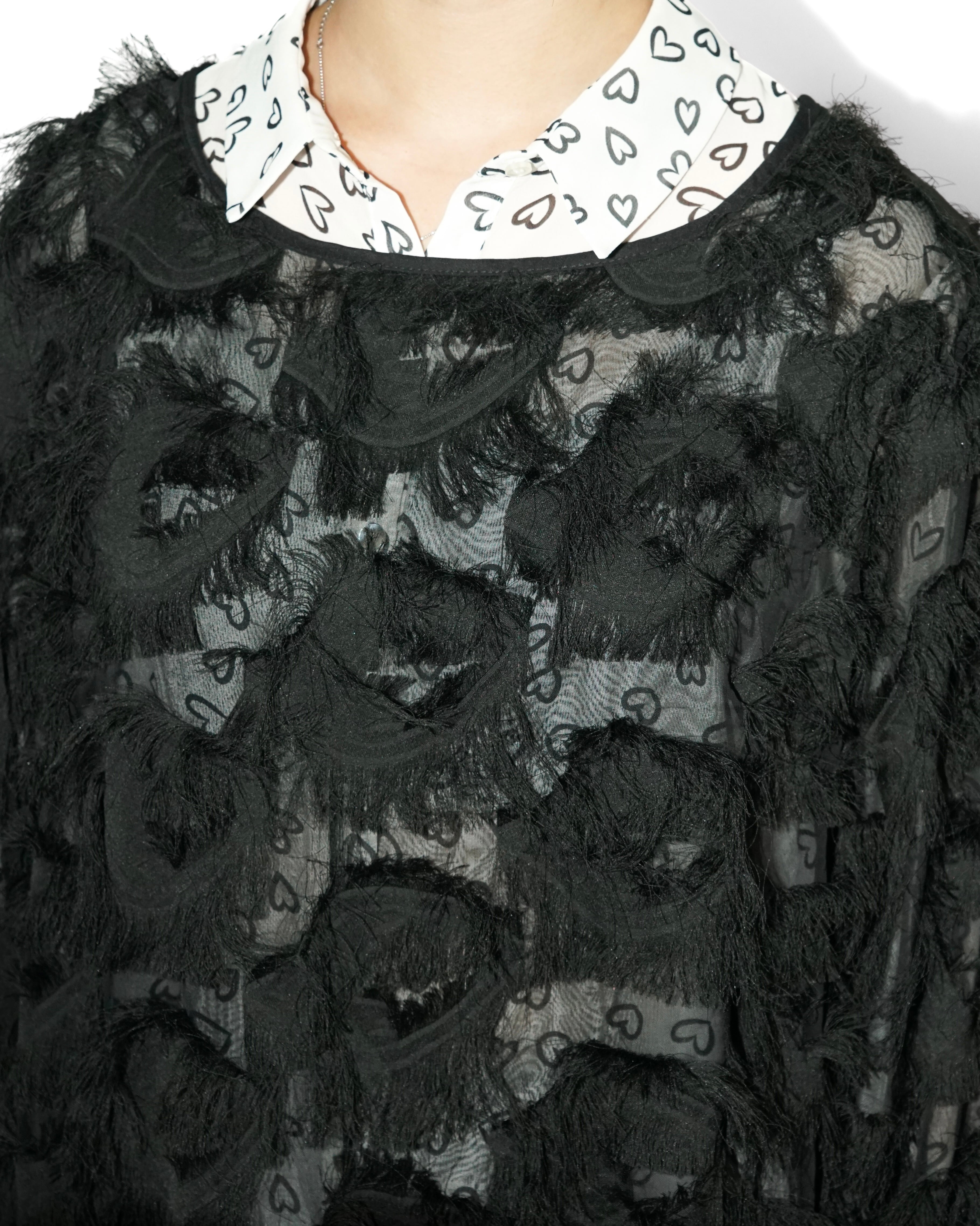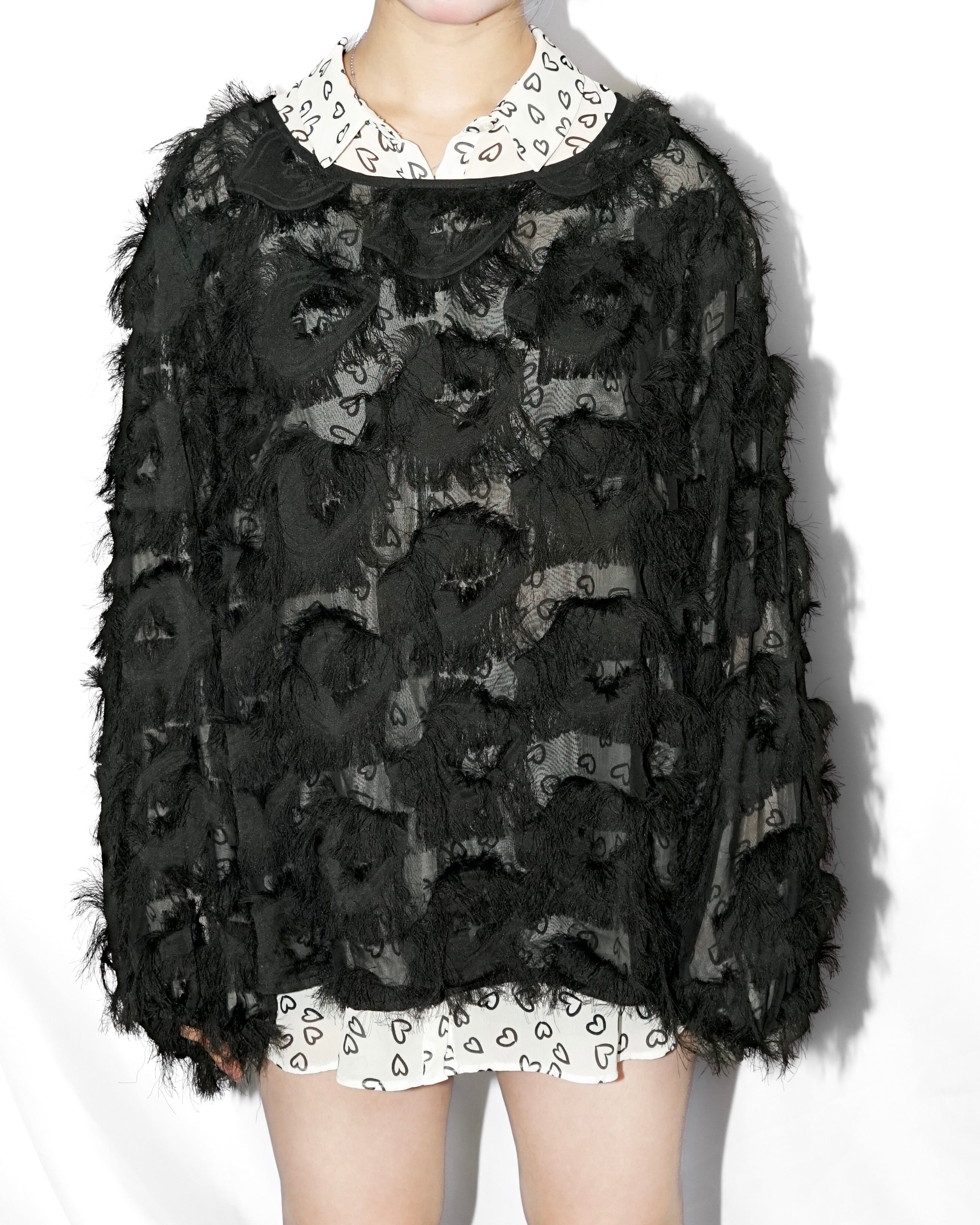 立体的なシャギーフラワーとシースルーメッシュを重ねた、アートピースのようなヴィンテージトップス。