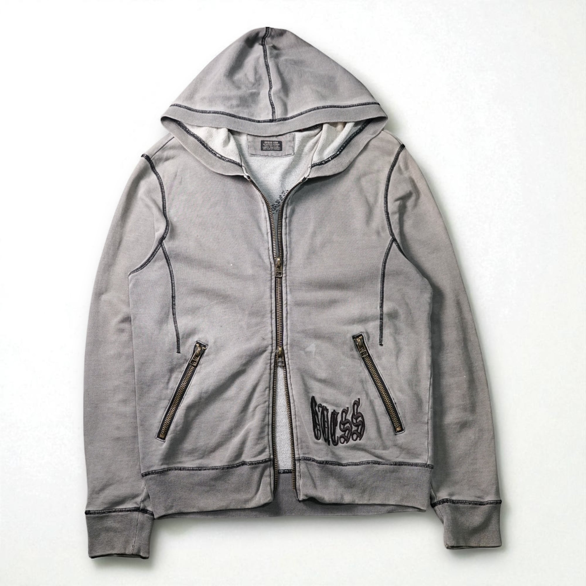 “GUESS” vintage double zip faded sweat hoodie