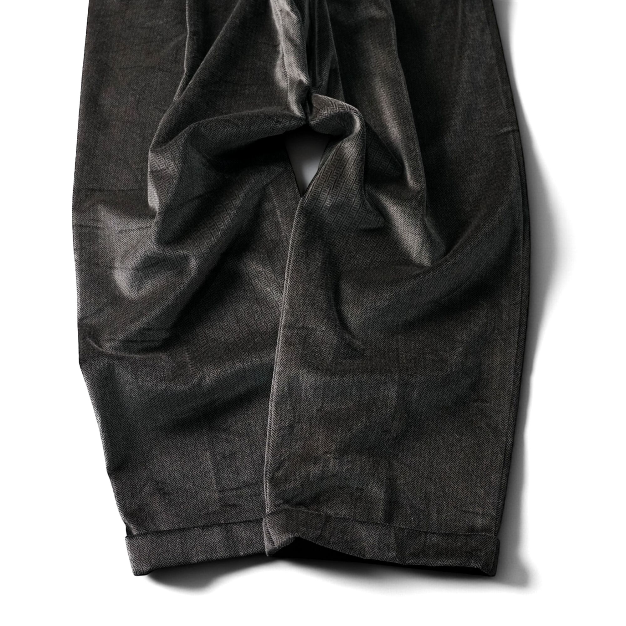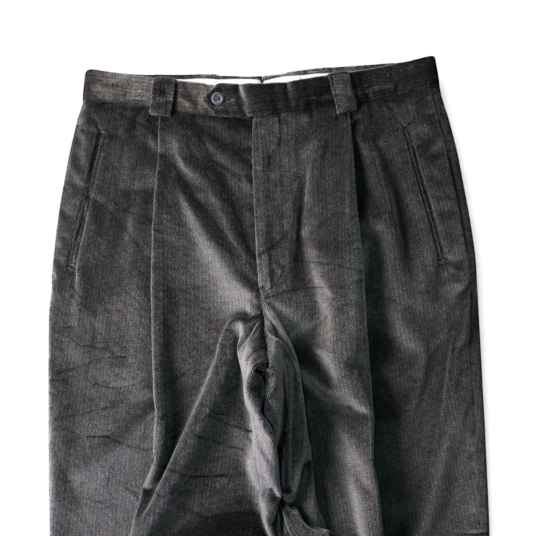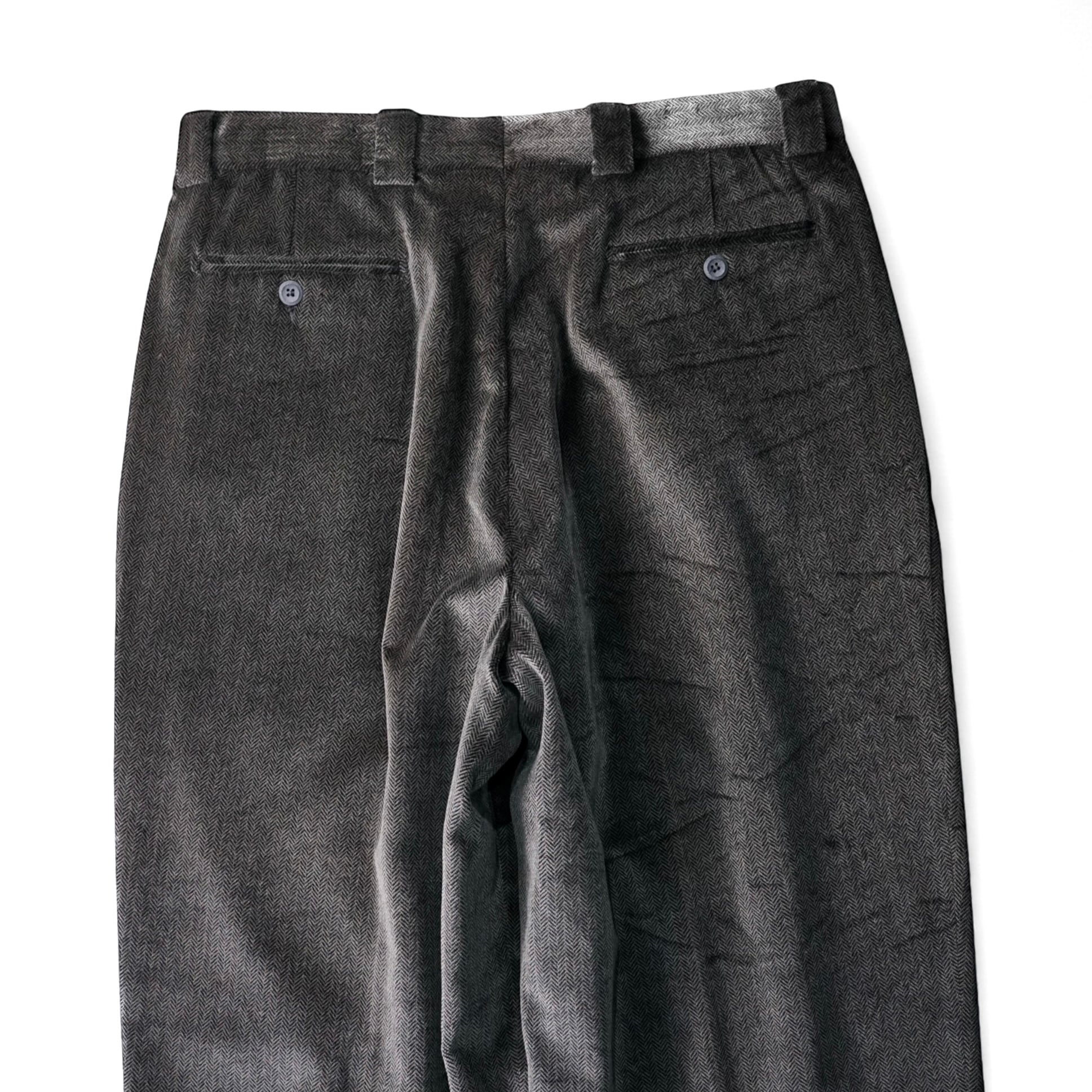 ふわりと光を吸うような“ベルベット × ヘリンボーン”の珍しい表情が魅力の、1980年代・Made in USAのワイドスラックス。
