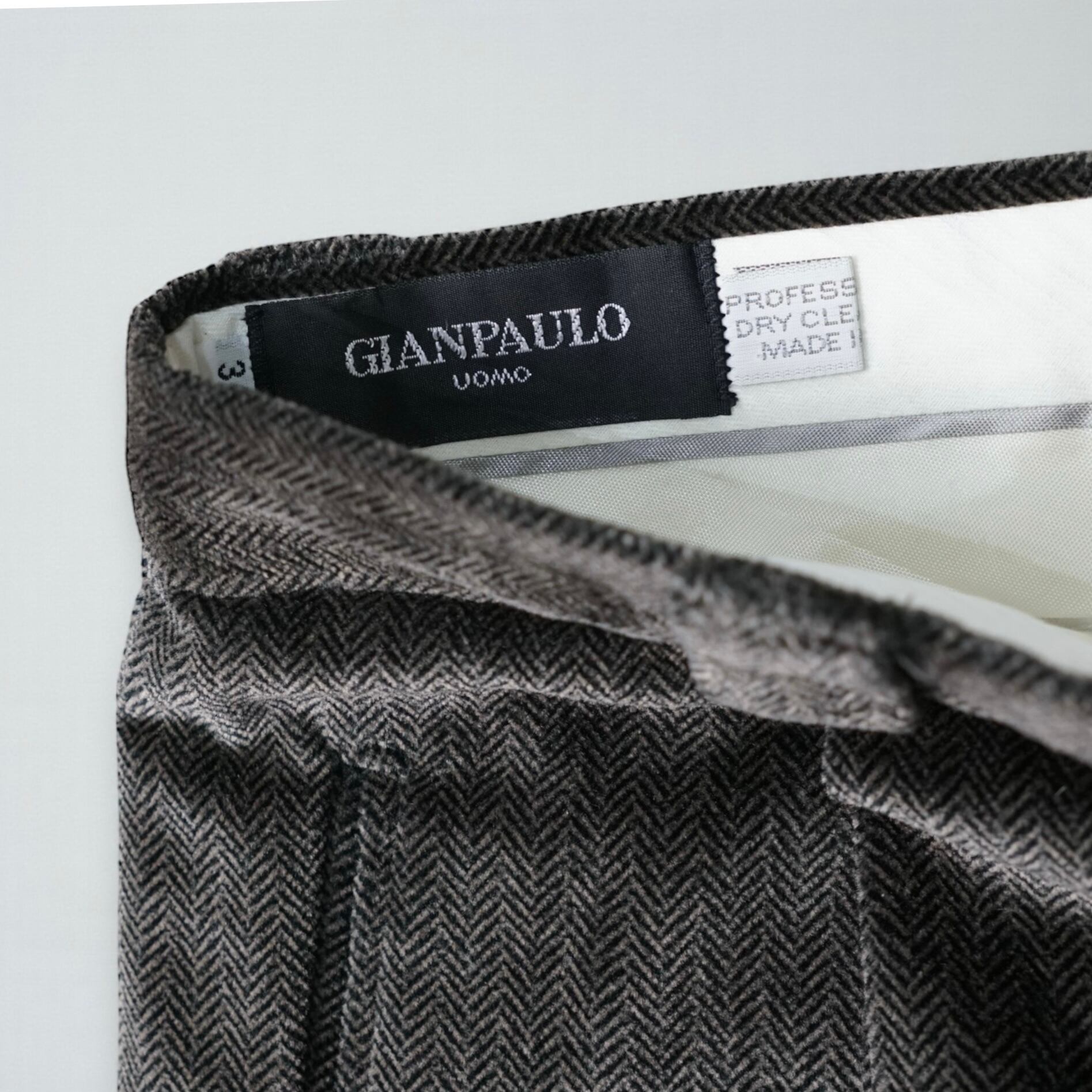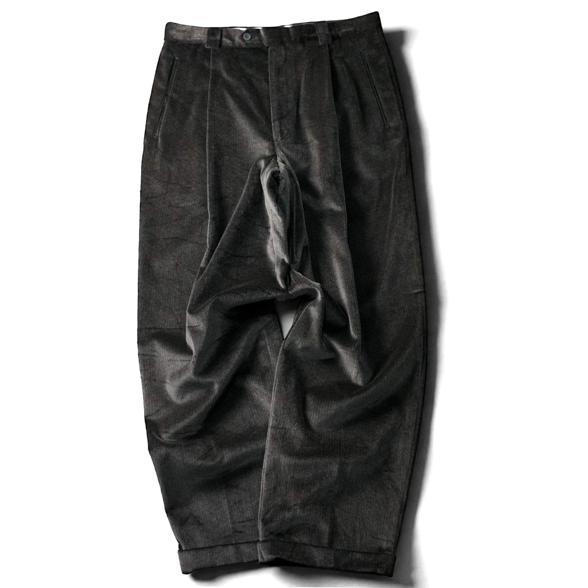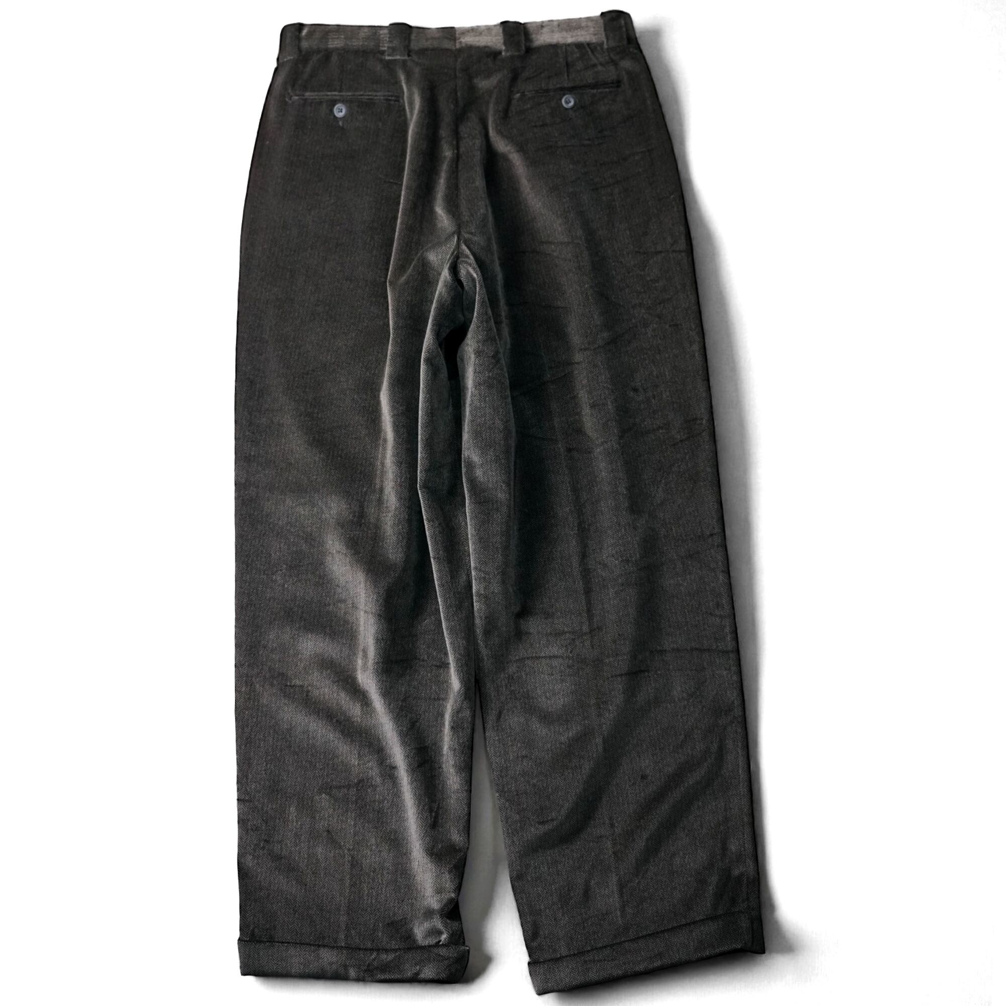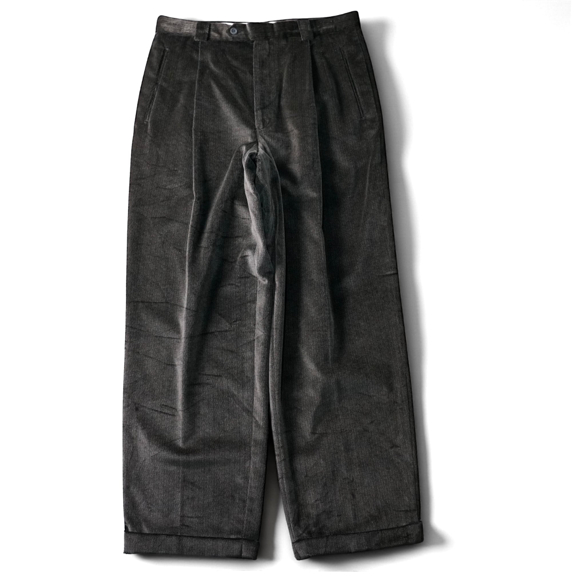 ふわりと光を吸うような“ベルベット × ヘリンボーン”の珍しい表情が魅力の、1980年代・Made in USAのワイドスラックス。
