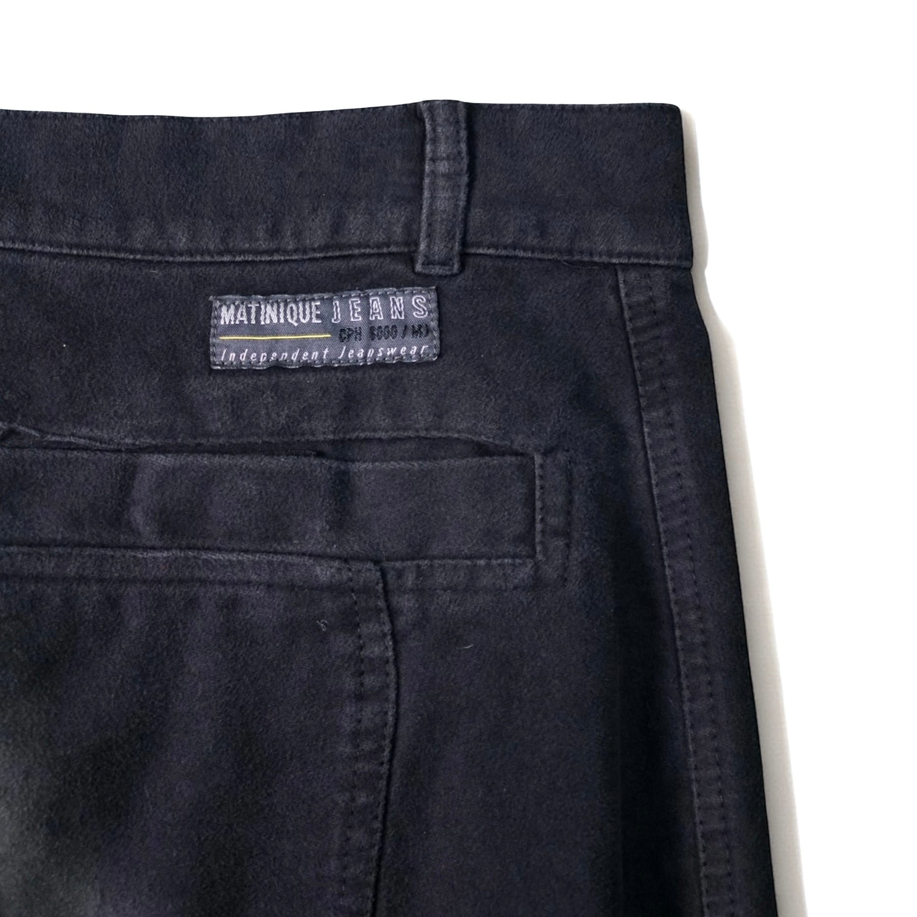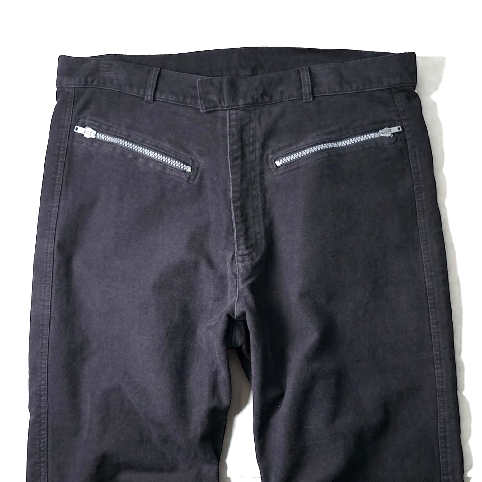ポルトガル製の 柔らかく微起毛したコットン生地を使用した、ジップギミック・バイカーフレアパンツ。