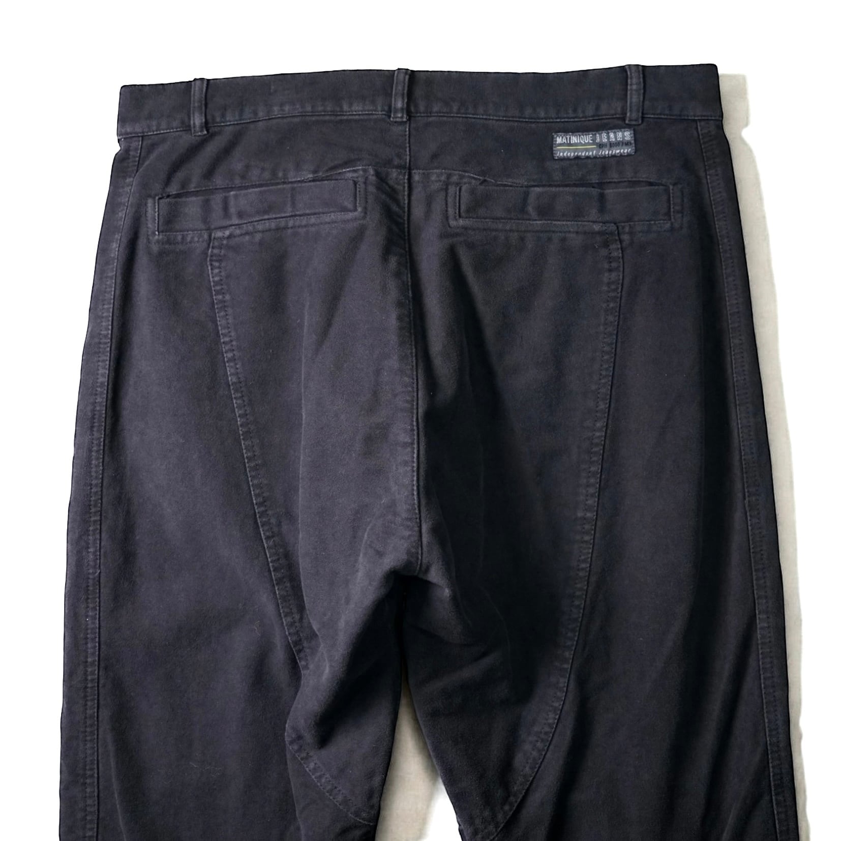 スウェードタッチ/ピーチスキンのようなマットで品のある質感で、アーカイブの名作パンツに通じる“陰影と落ち感”を生み出す一本です。