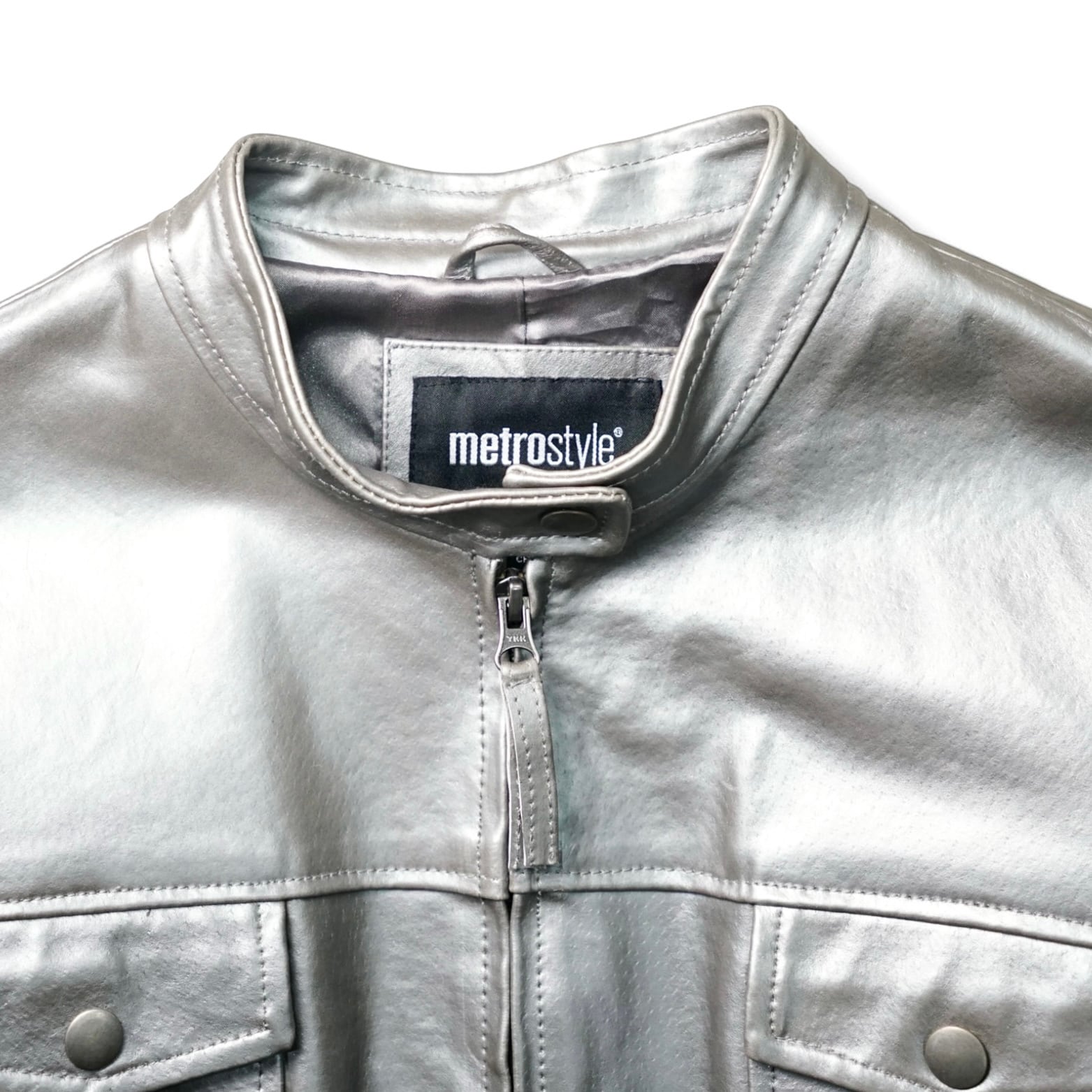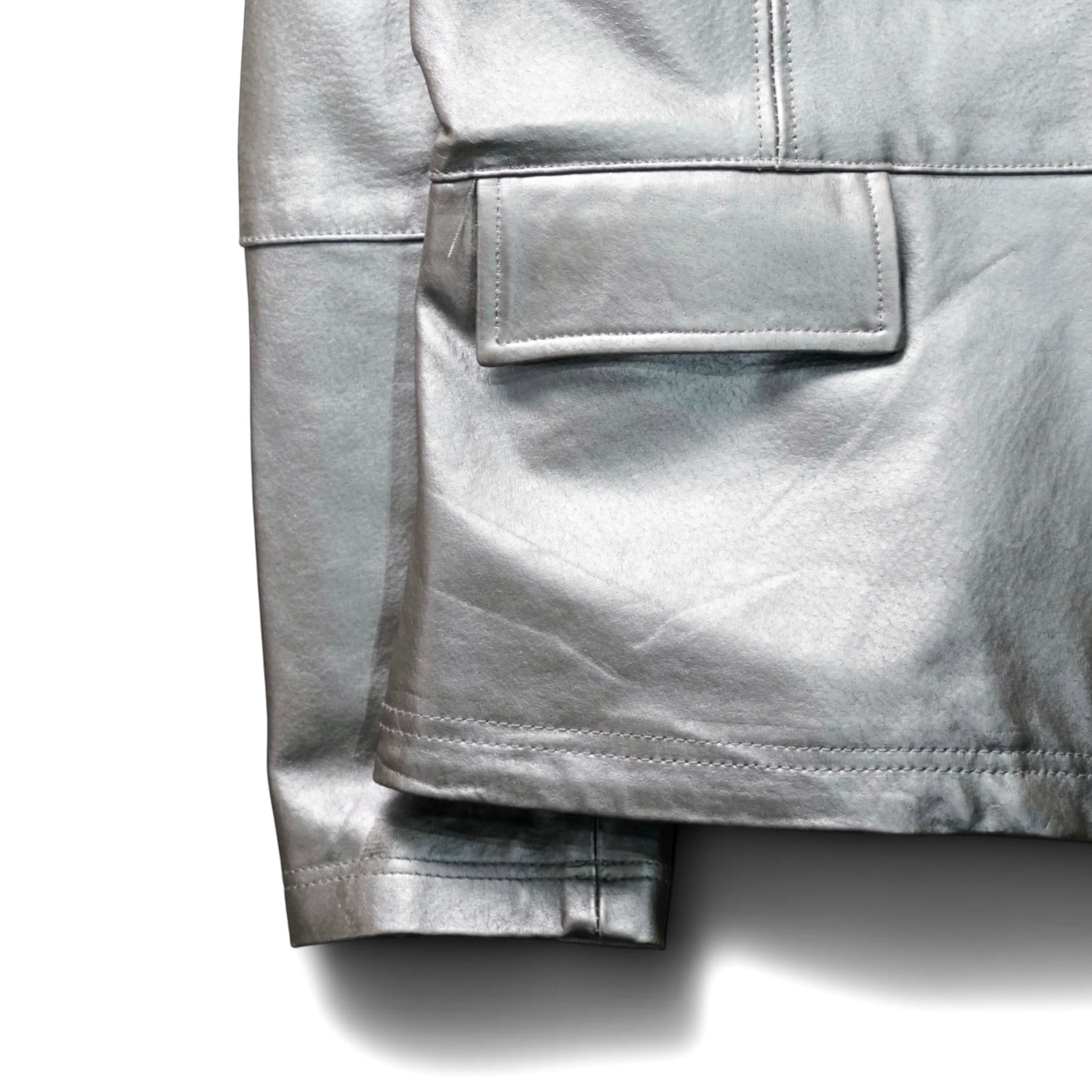 強い存在感を放つヴィンテージシルバーレザーライダースジャケット。