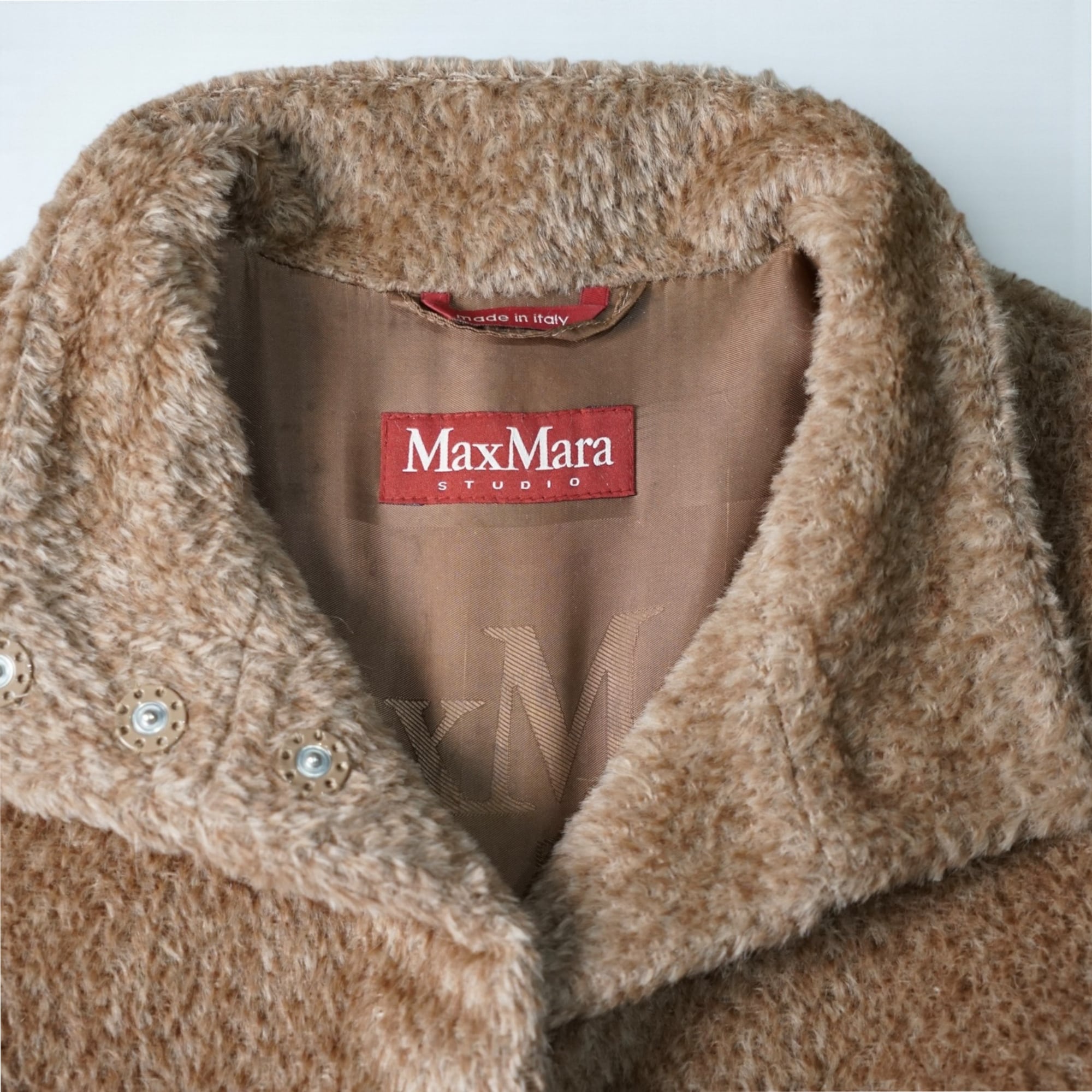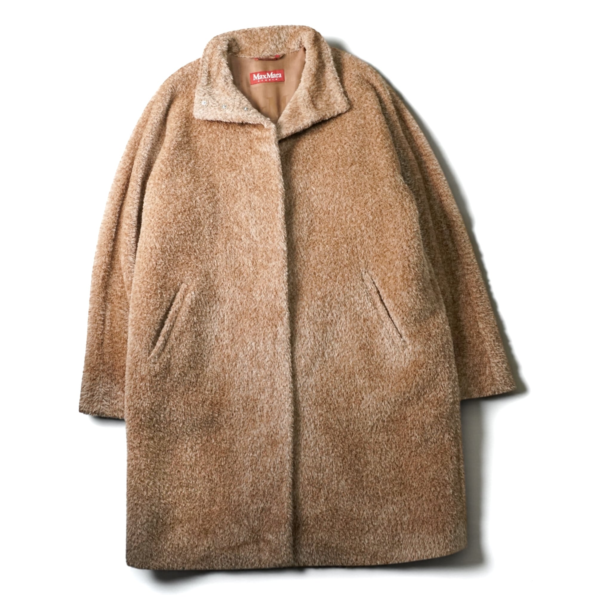 上質なアルパカシャギーを贅沢に使用した、**MAXMARA(マックスマーラ)**のスタンドカラーコート。