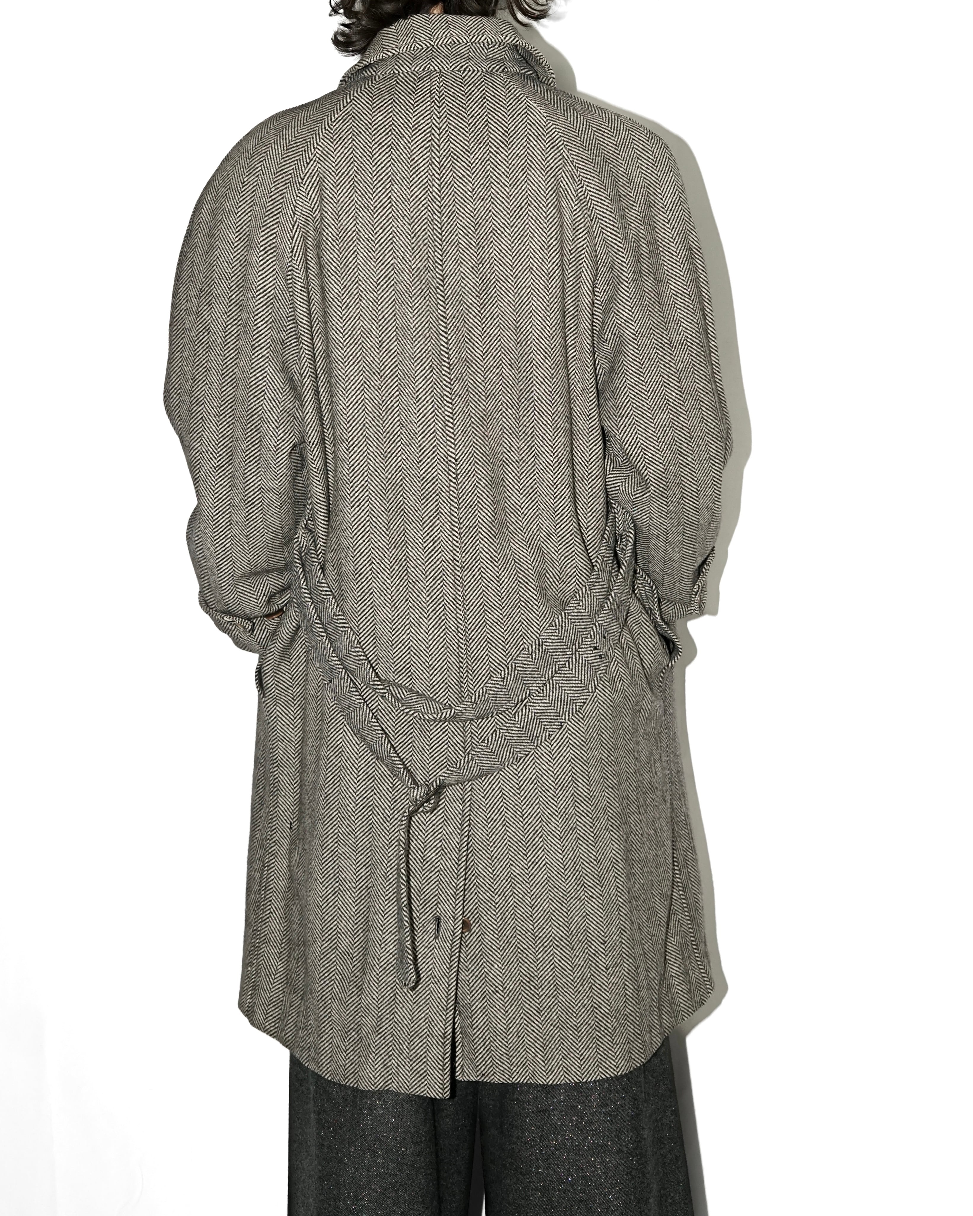 たっぷりとした身幅が生むドレープが美しく、背面の共地ベルトで絞ることで表情を変えられます。