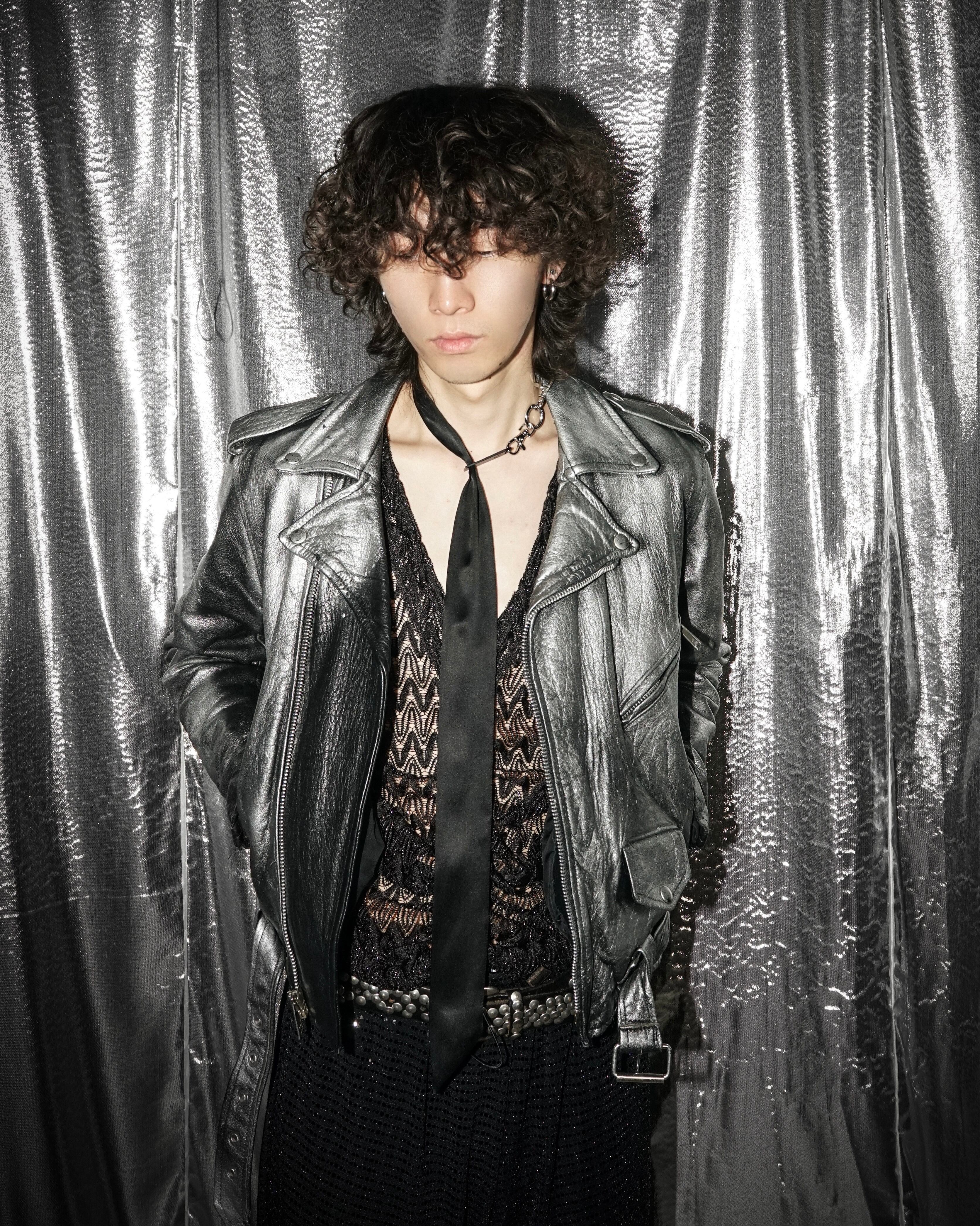 ヴィンテージのレザーライダースをベースに、全体へスプレー加工を施した一点物のアートピース。