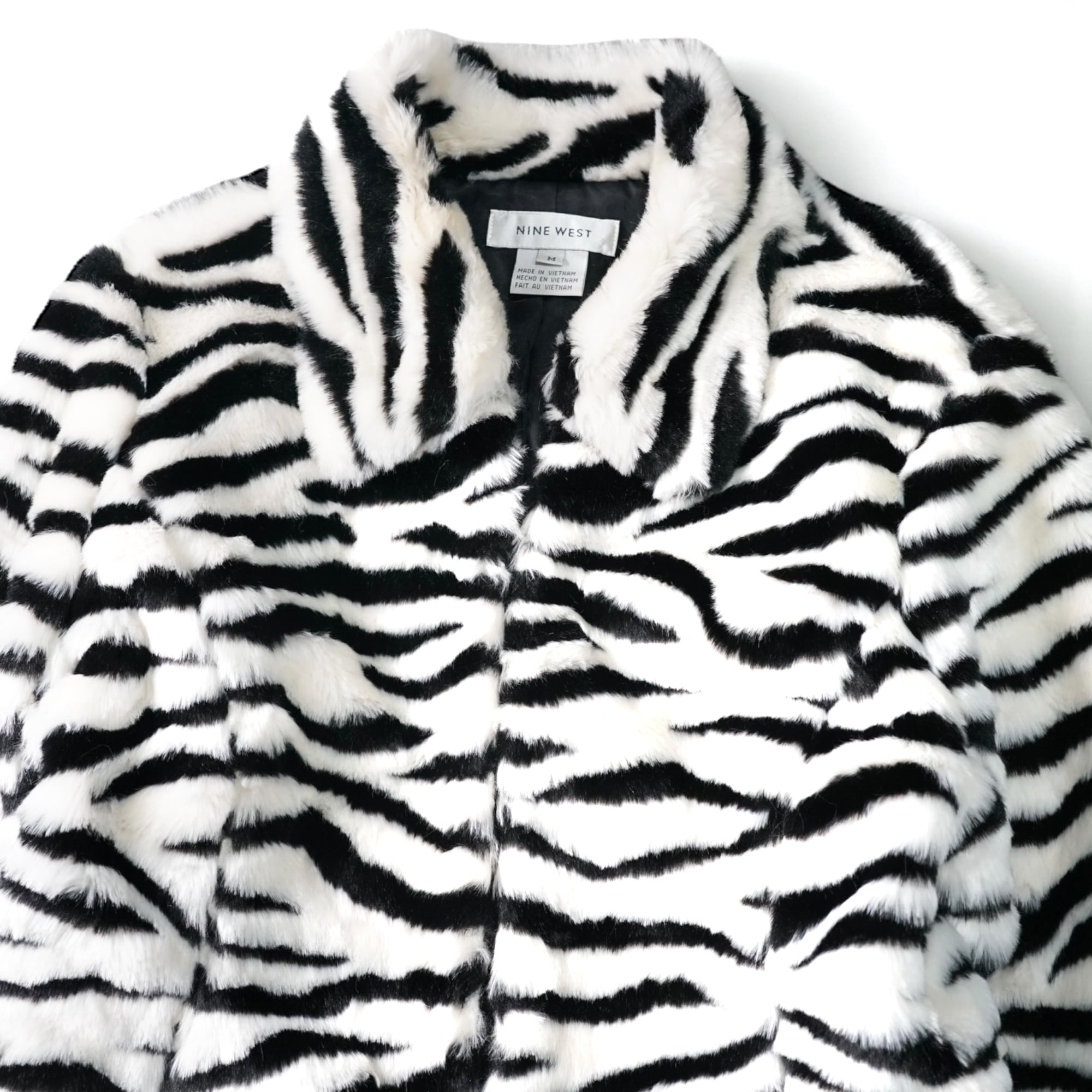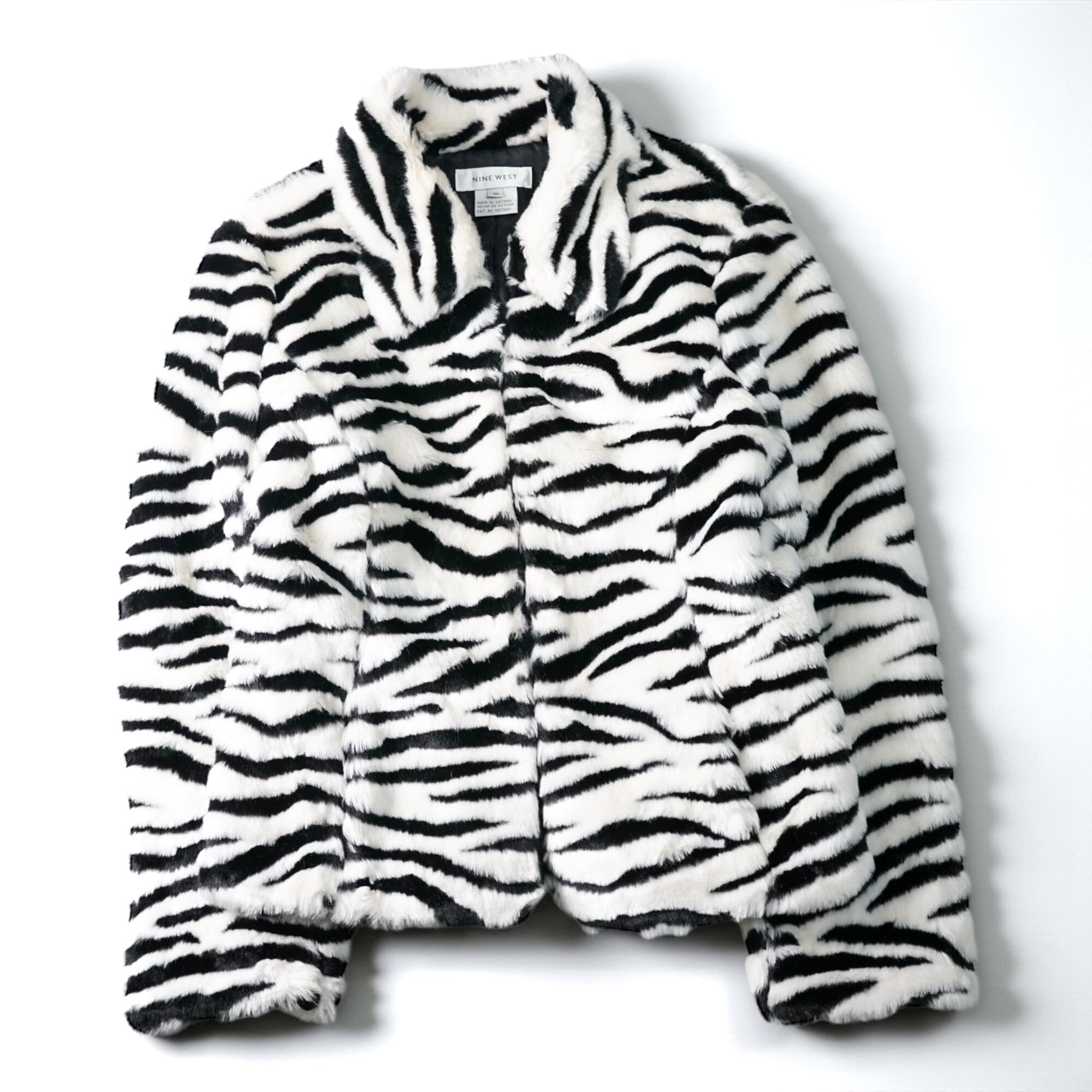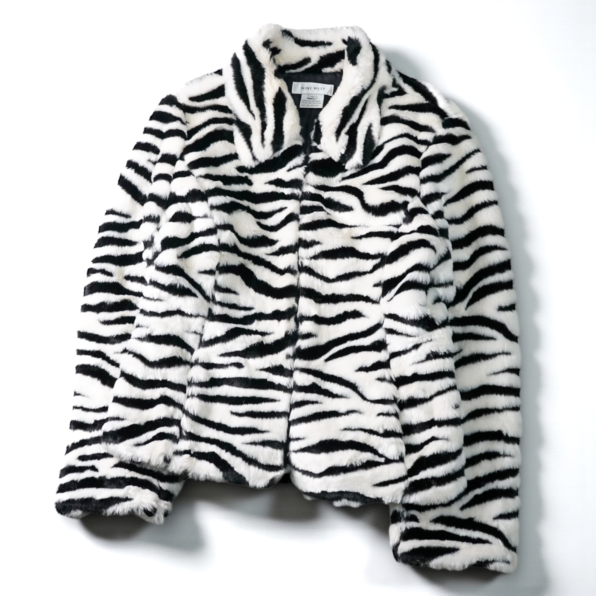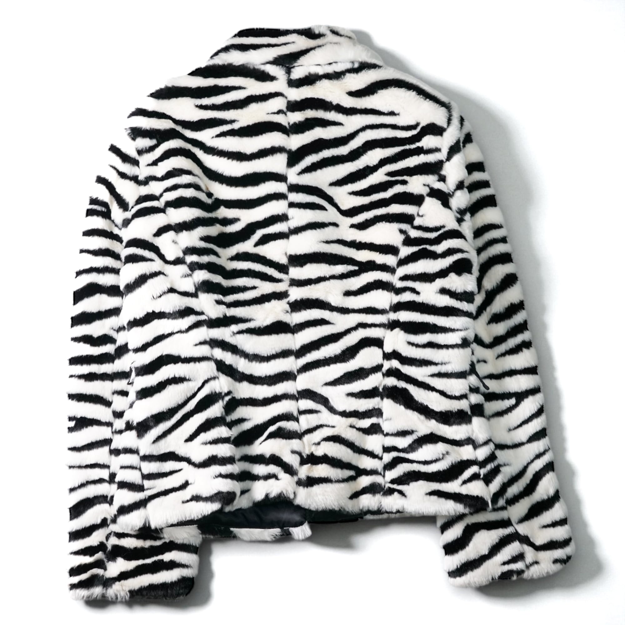 ゼブラパターンのフェイクファーを使用した、存在感のあるヴィンテージショートジャケット。