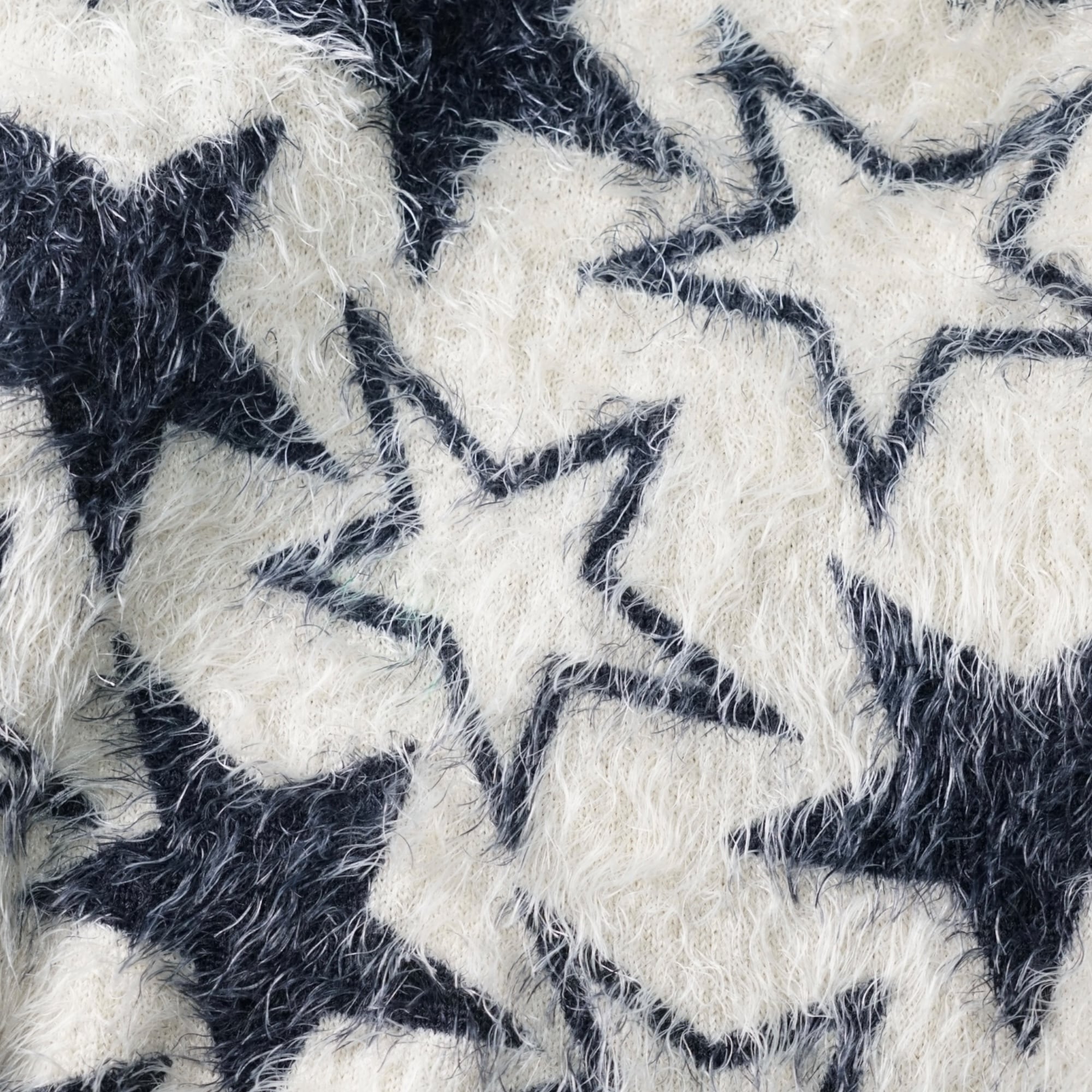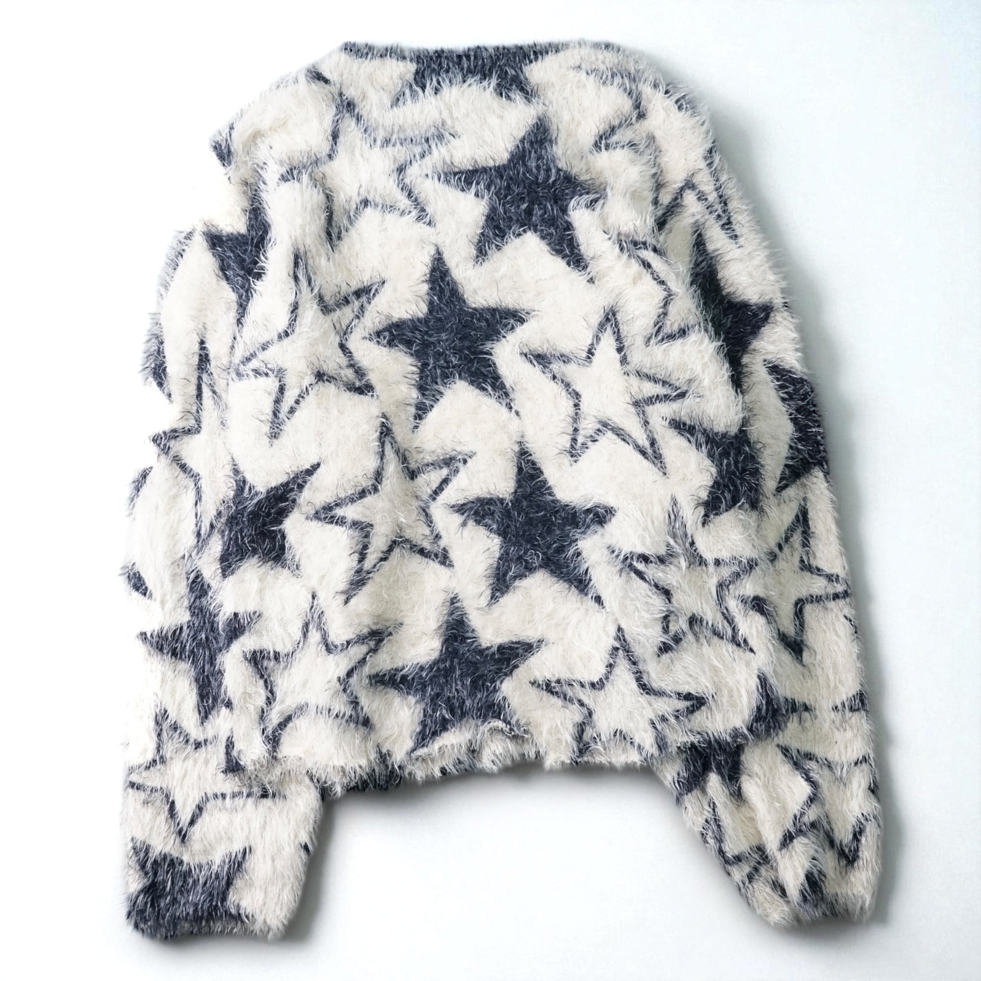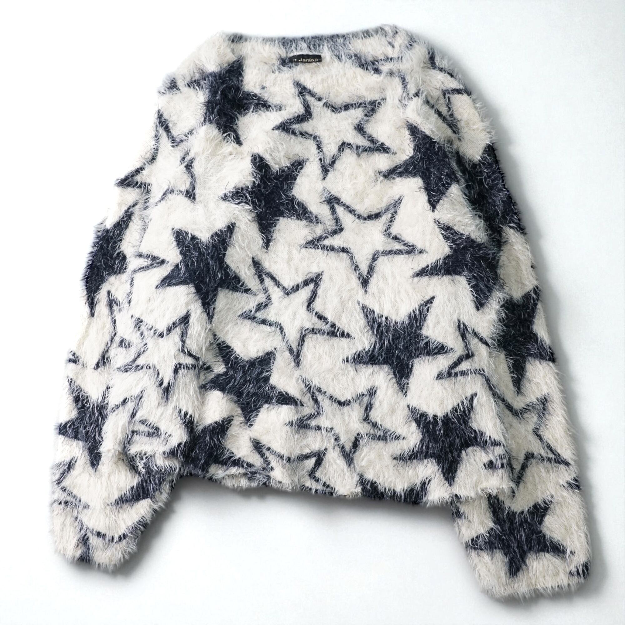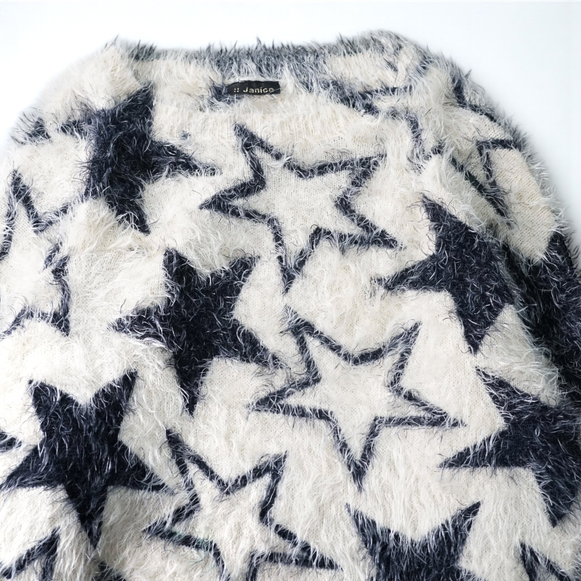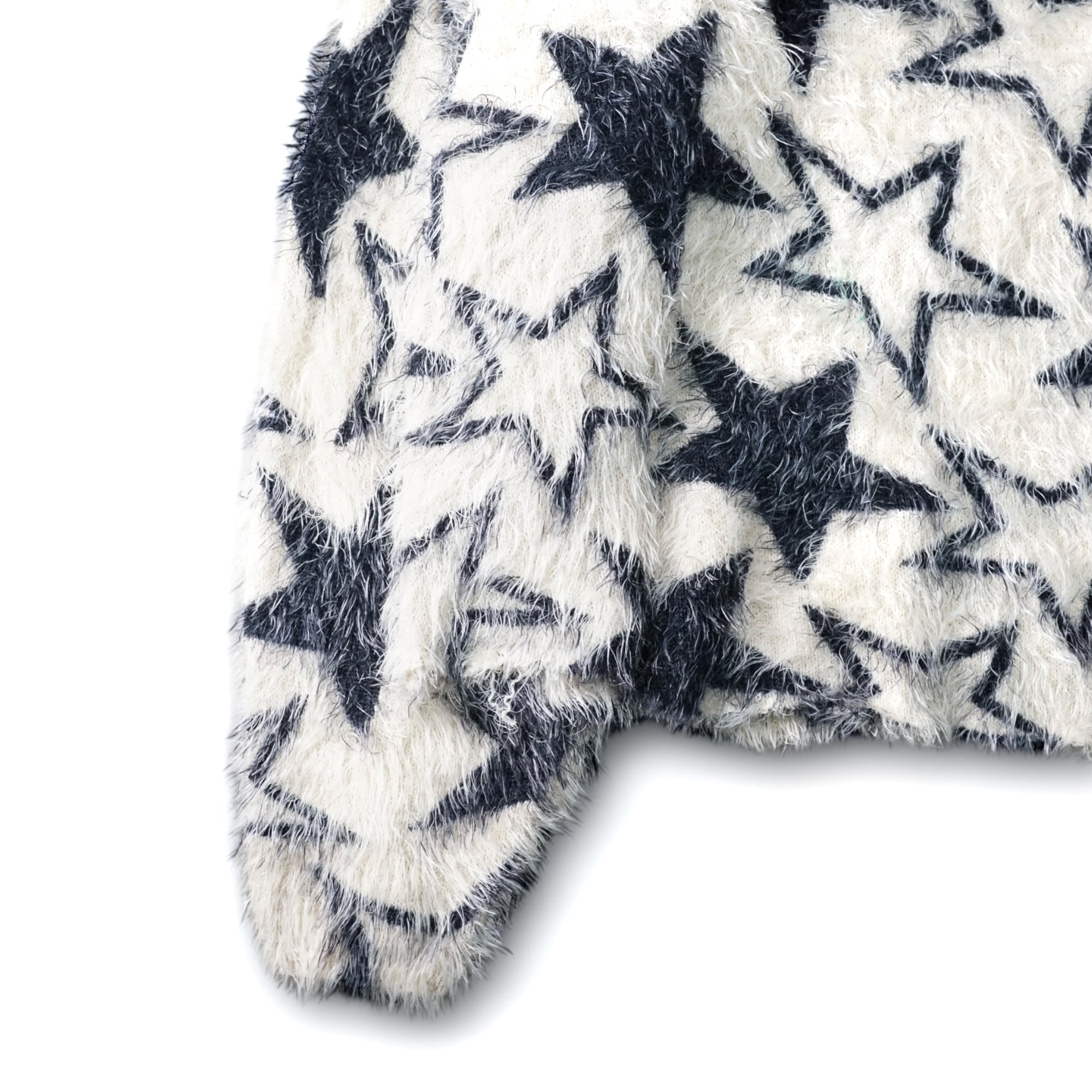ふんわりとしたシャギー素材に、星柄が全面にあしらわれたアイキャッチなニットプルオーバー。