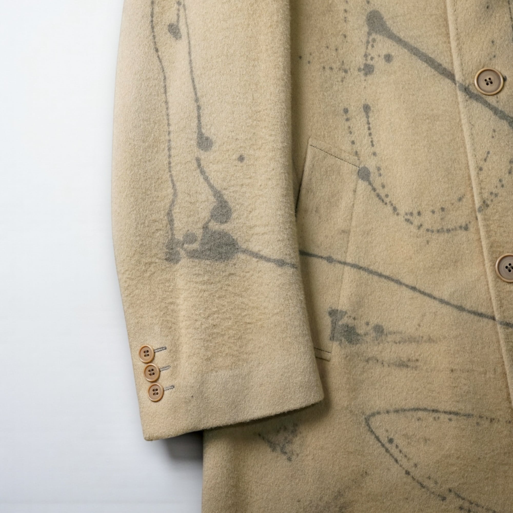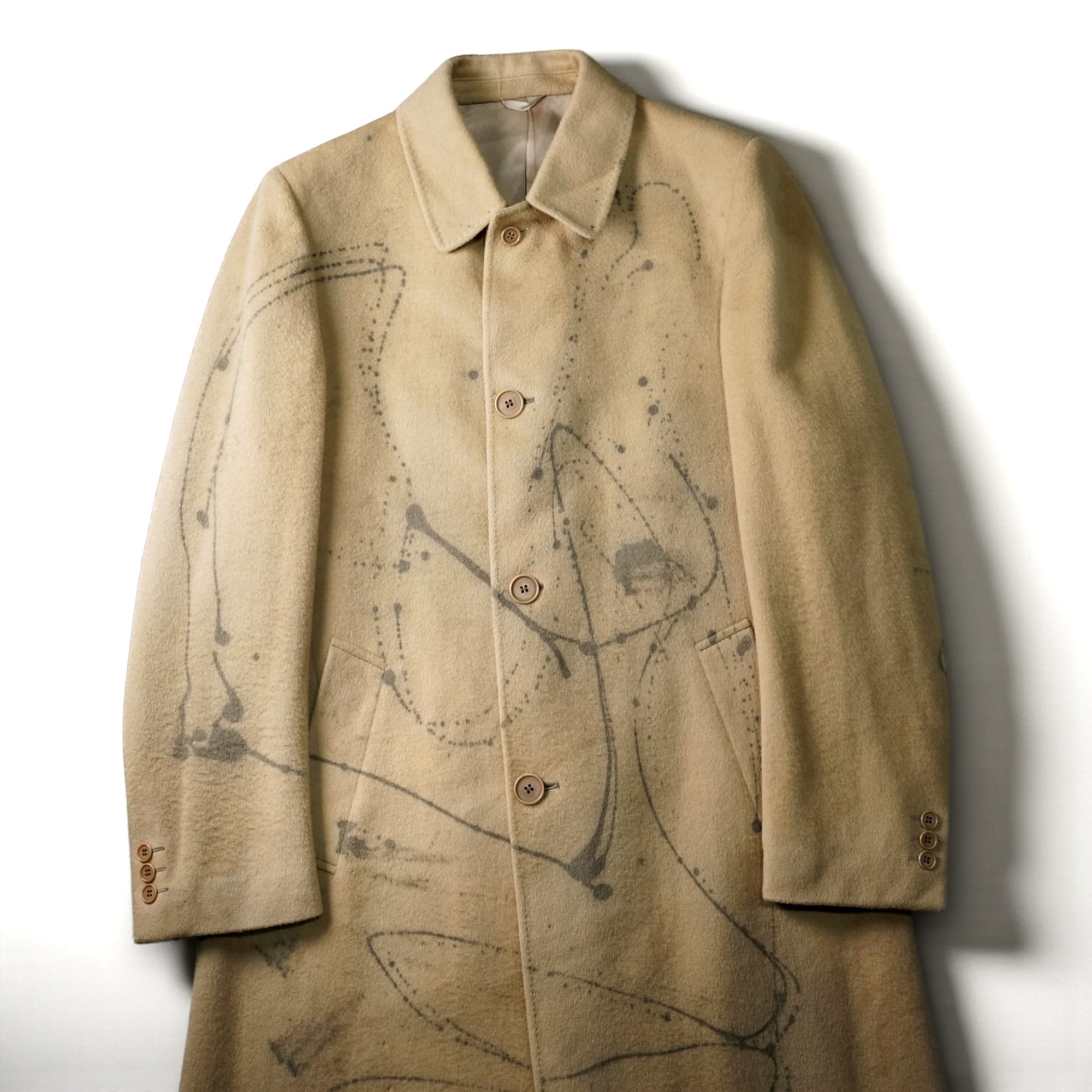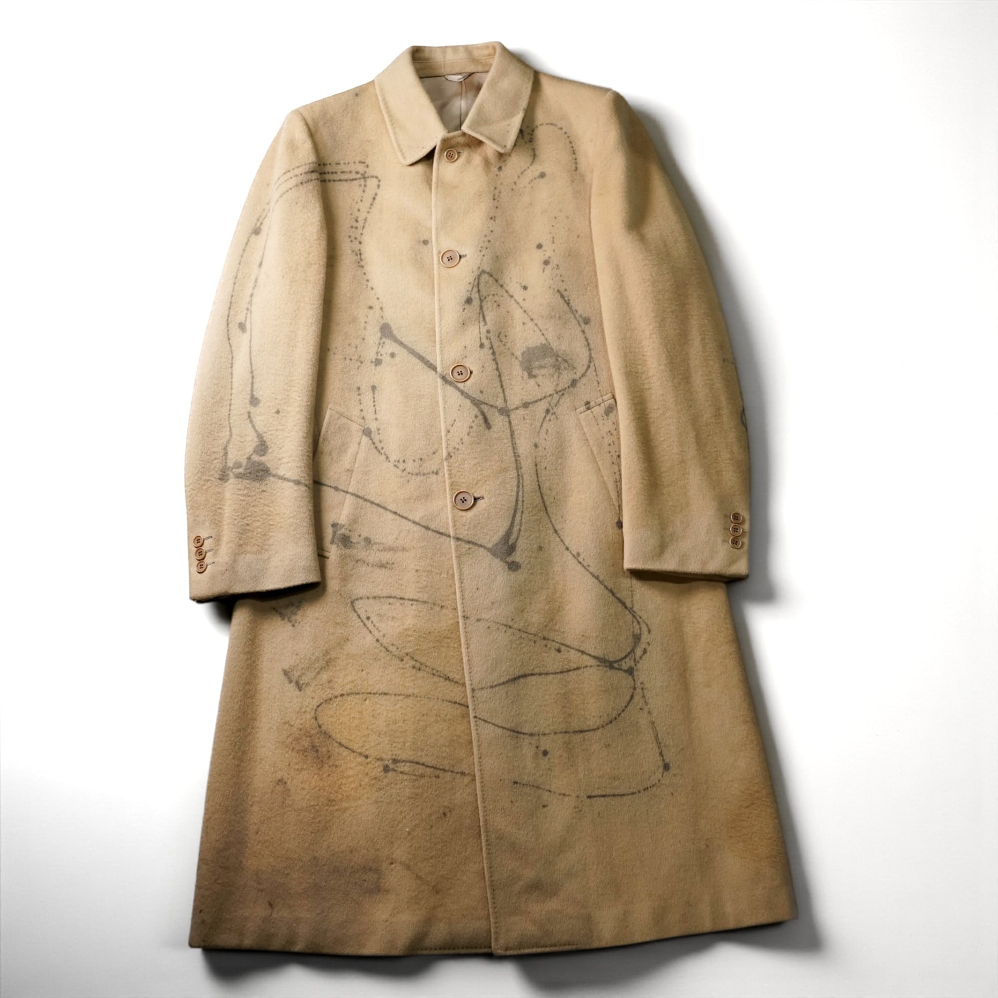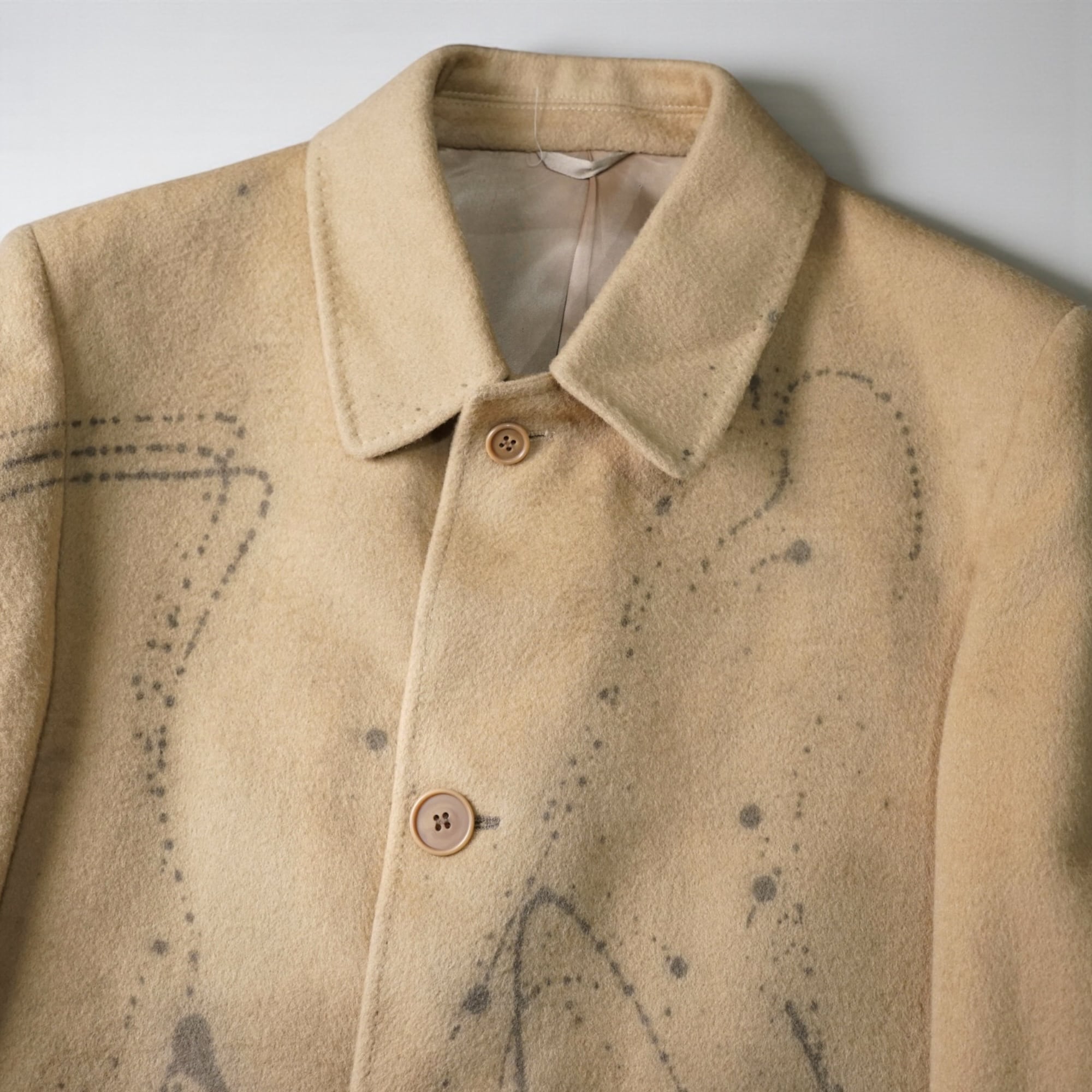 柔らかなクリームトーンのウール地に、アーティスティックなペイントが全面に施された一着で、現行ではまず見ることのできない圧倒的な存在感を放ちます。