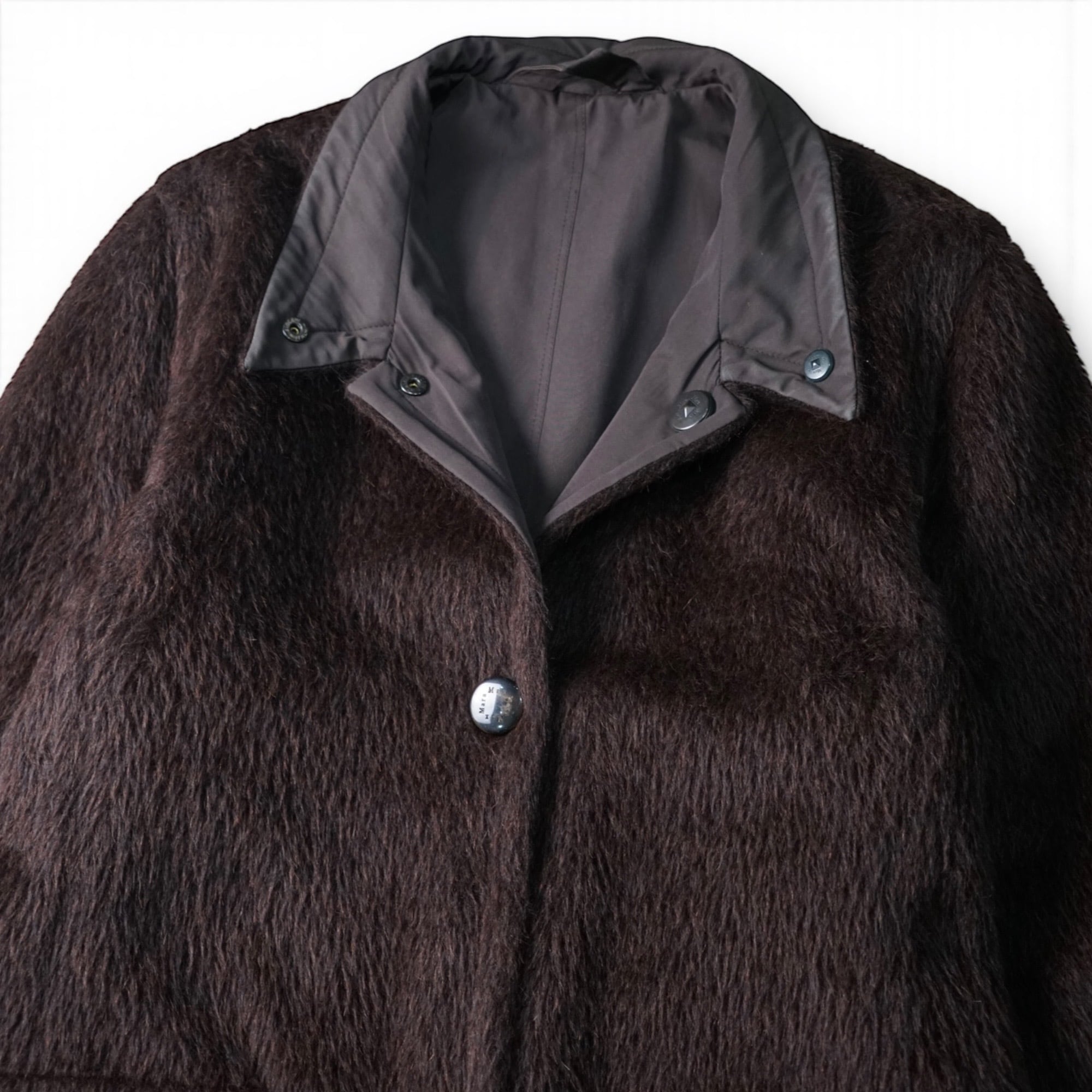 イタリア製、MAXMARA の白タグ期よりリバーシブル仕様のアルパカシャギー × ナイロンロングコート。