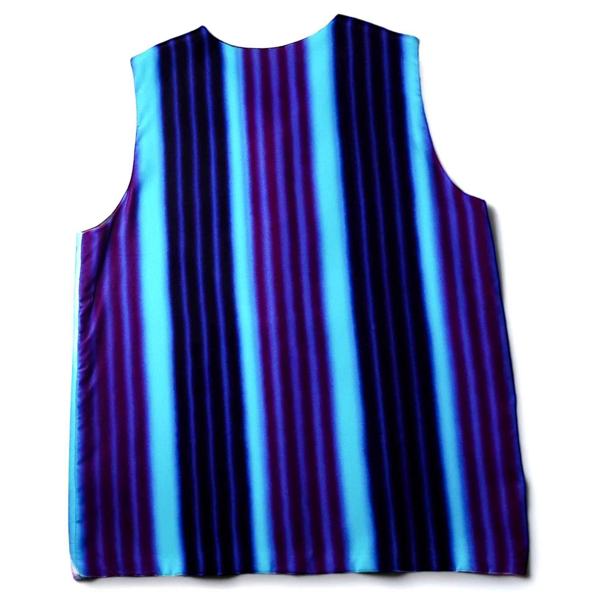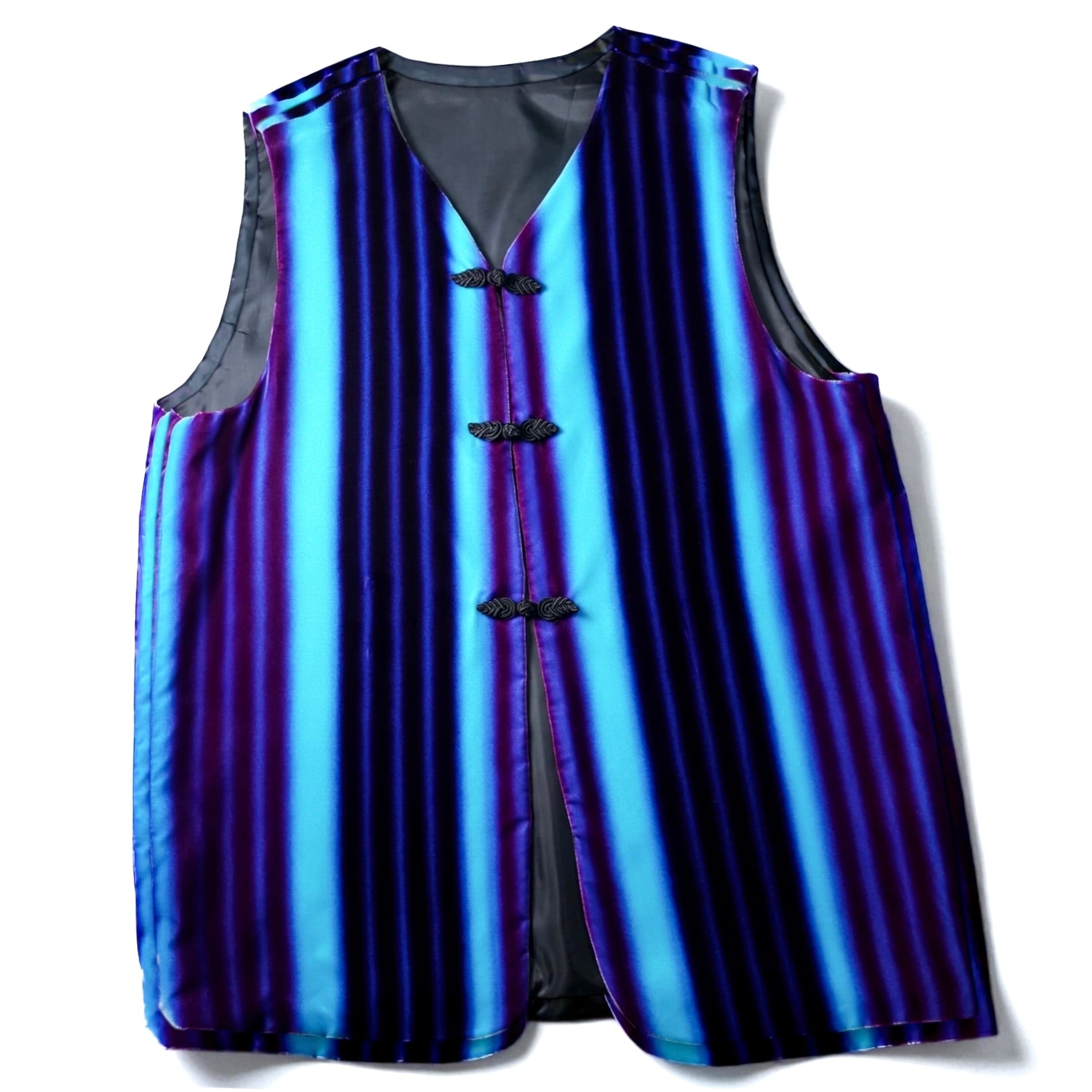 深いブルーからパープルへと滑らかに溶け込むシャドウストライプをベルベットで表現した、存在感抜群のヴィンテージチャイナベスト。