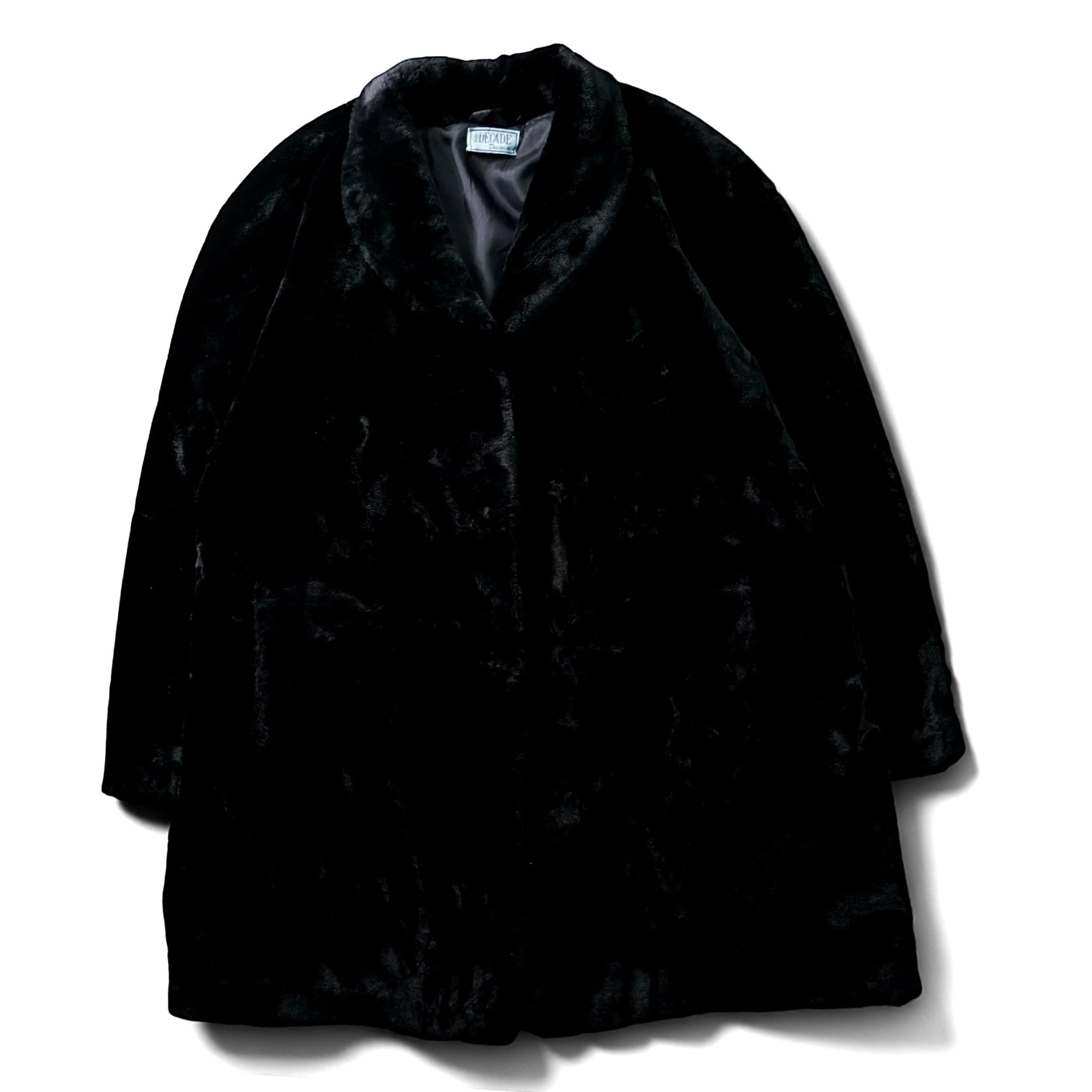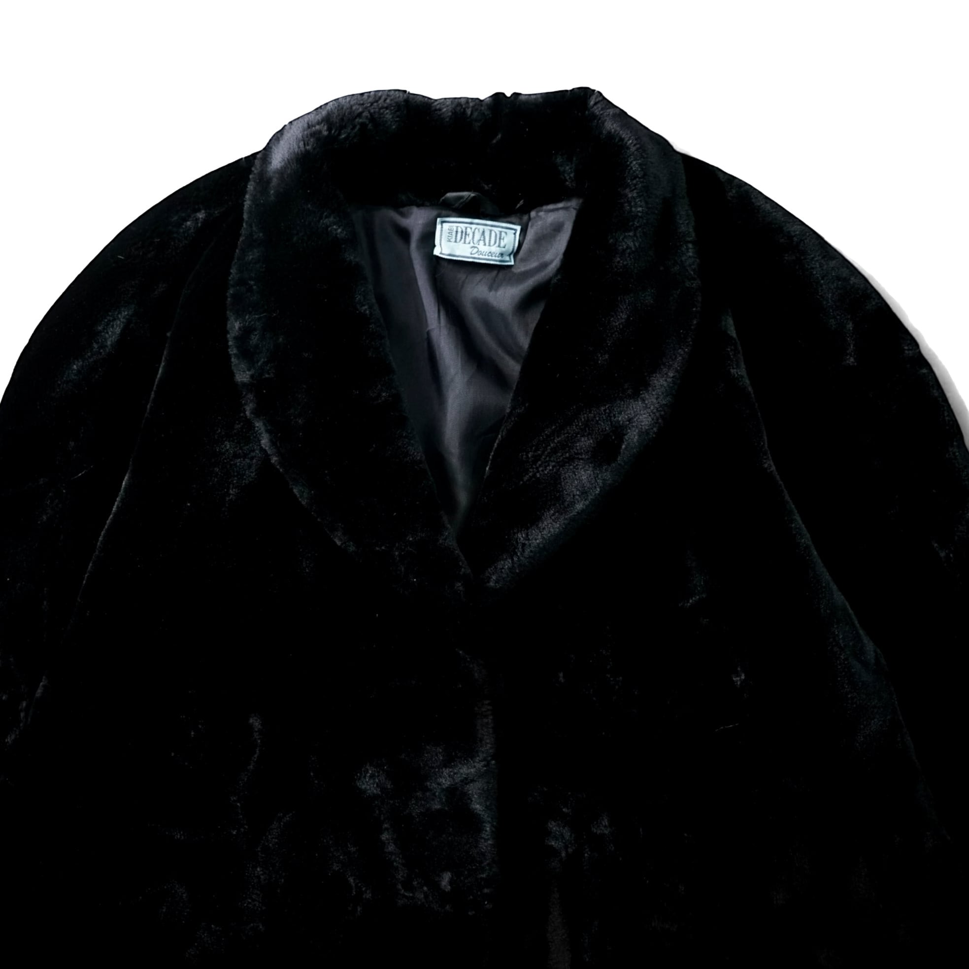 フランス製らしいエレガンスと退廃的なムードが同居した、“KIABI DECADE Douceur” のブラックフェイクファーコート。