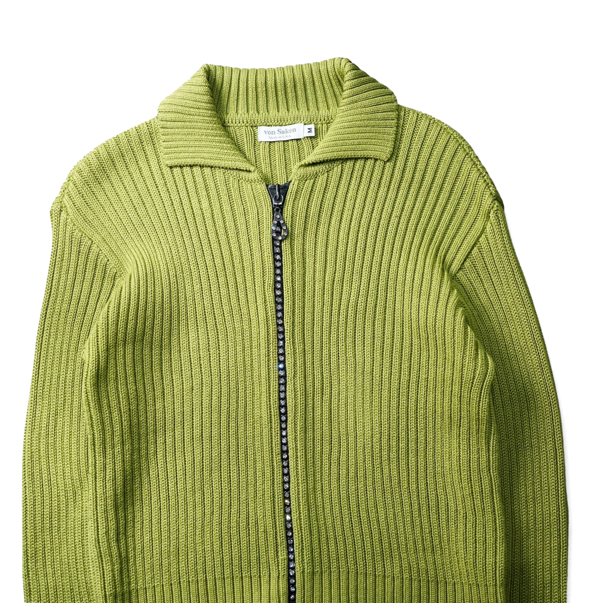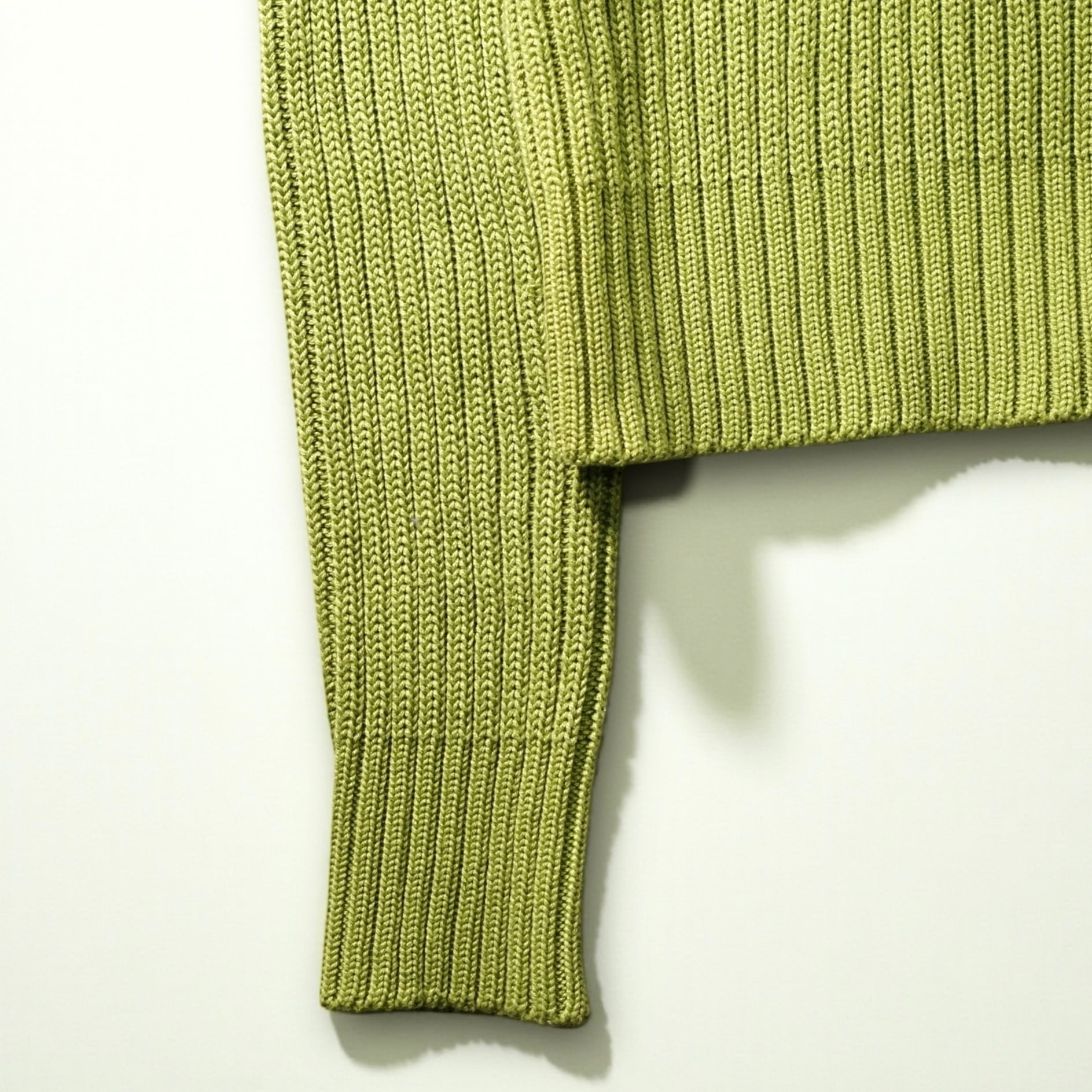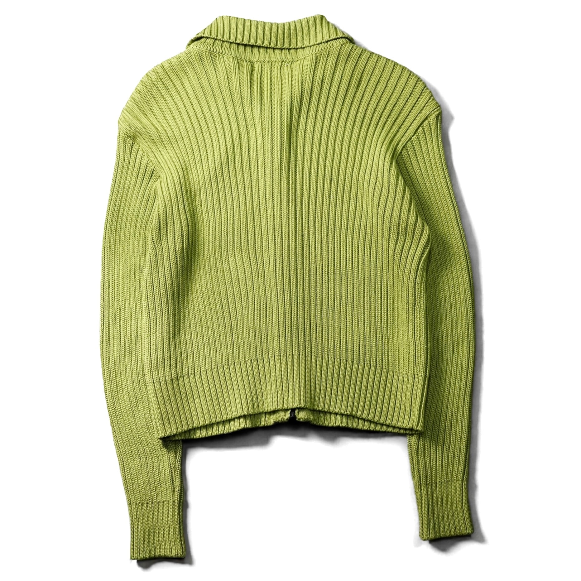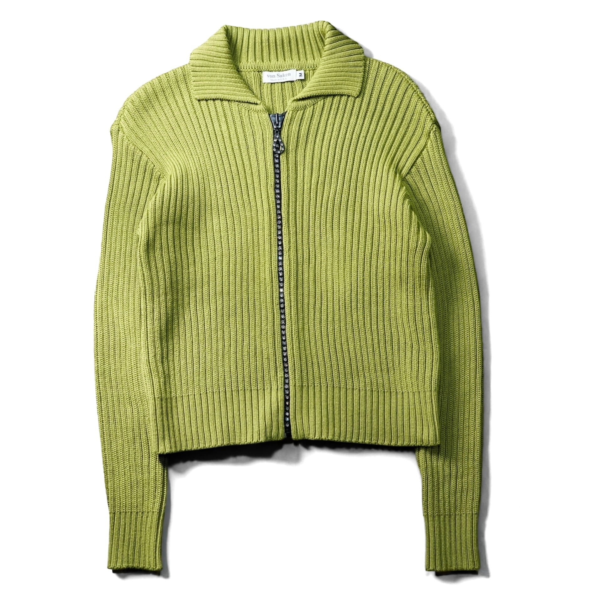 コンパクトなショート丈が印象的な、リブ編みジップニット。
