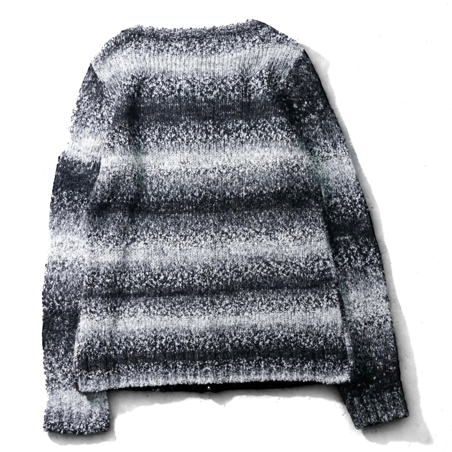 濃淡の重なりによって生まれる表情が印象的な、ヴィンテージ・ボーダーグラデーション ジップアップカーディガン。