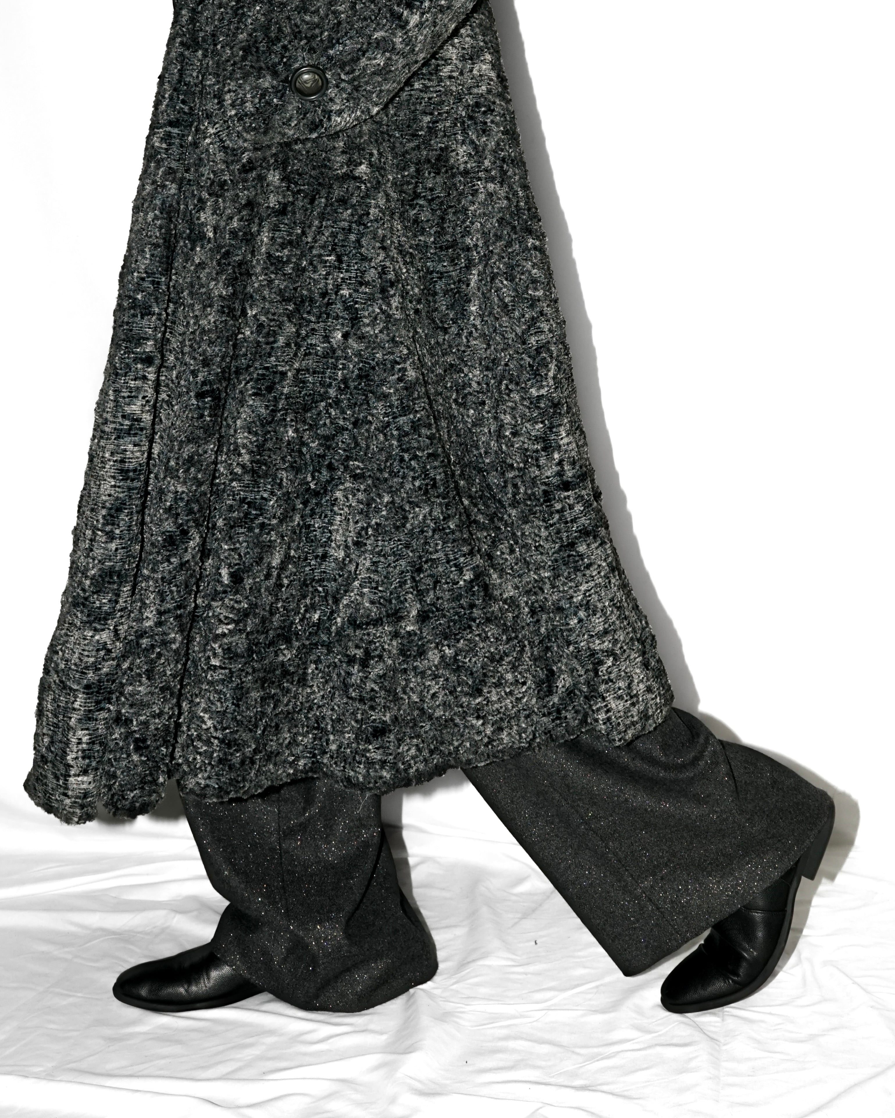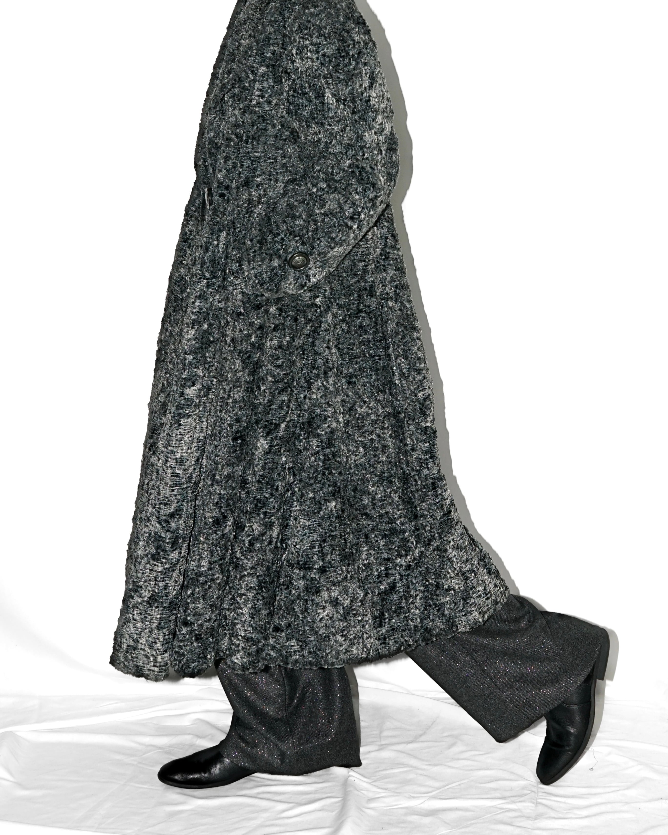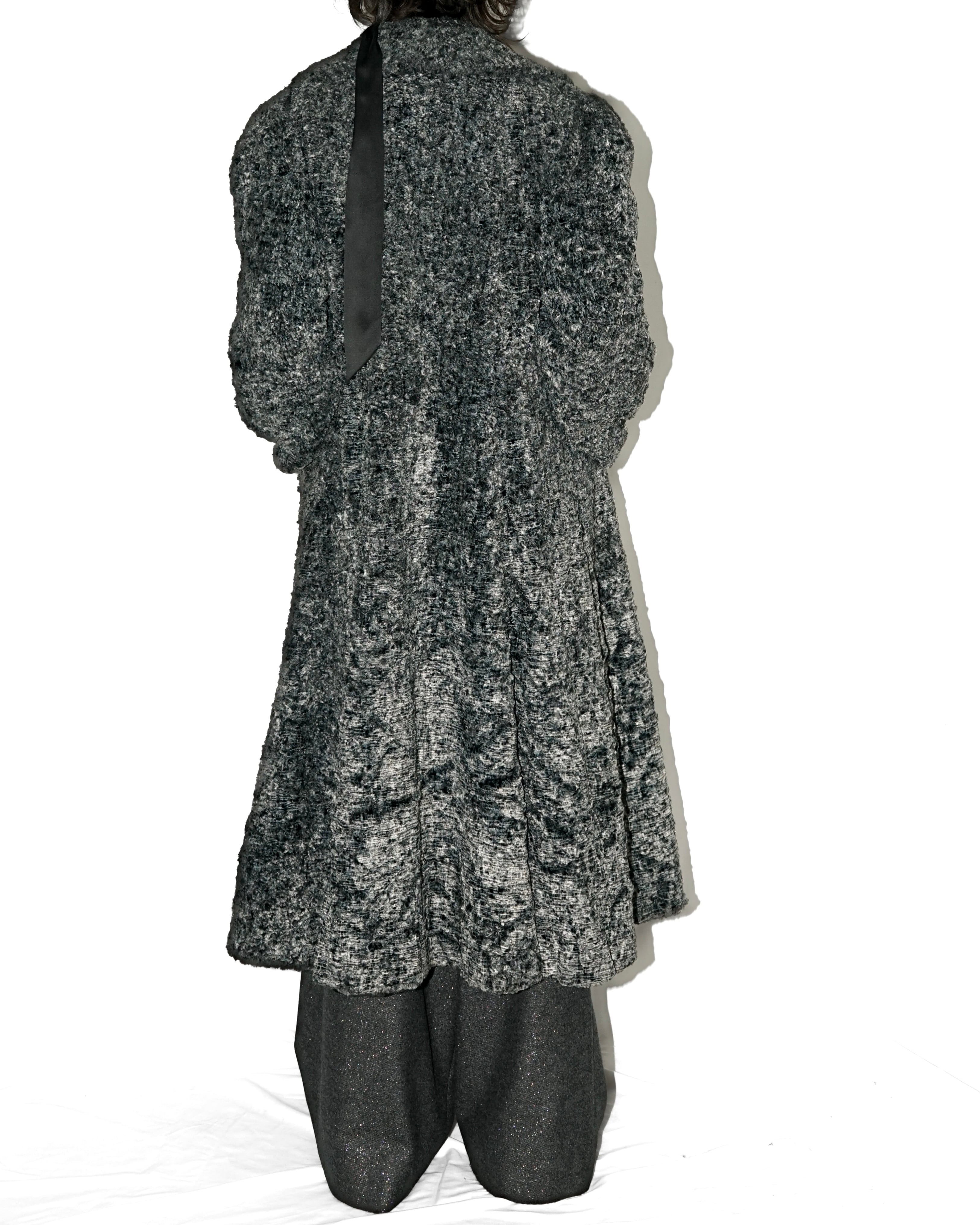 旧チェコスロバキアの毛織工場で生産された、重厚なブークレシャギーを贅沢に使用したマキシコート。