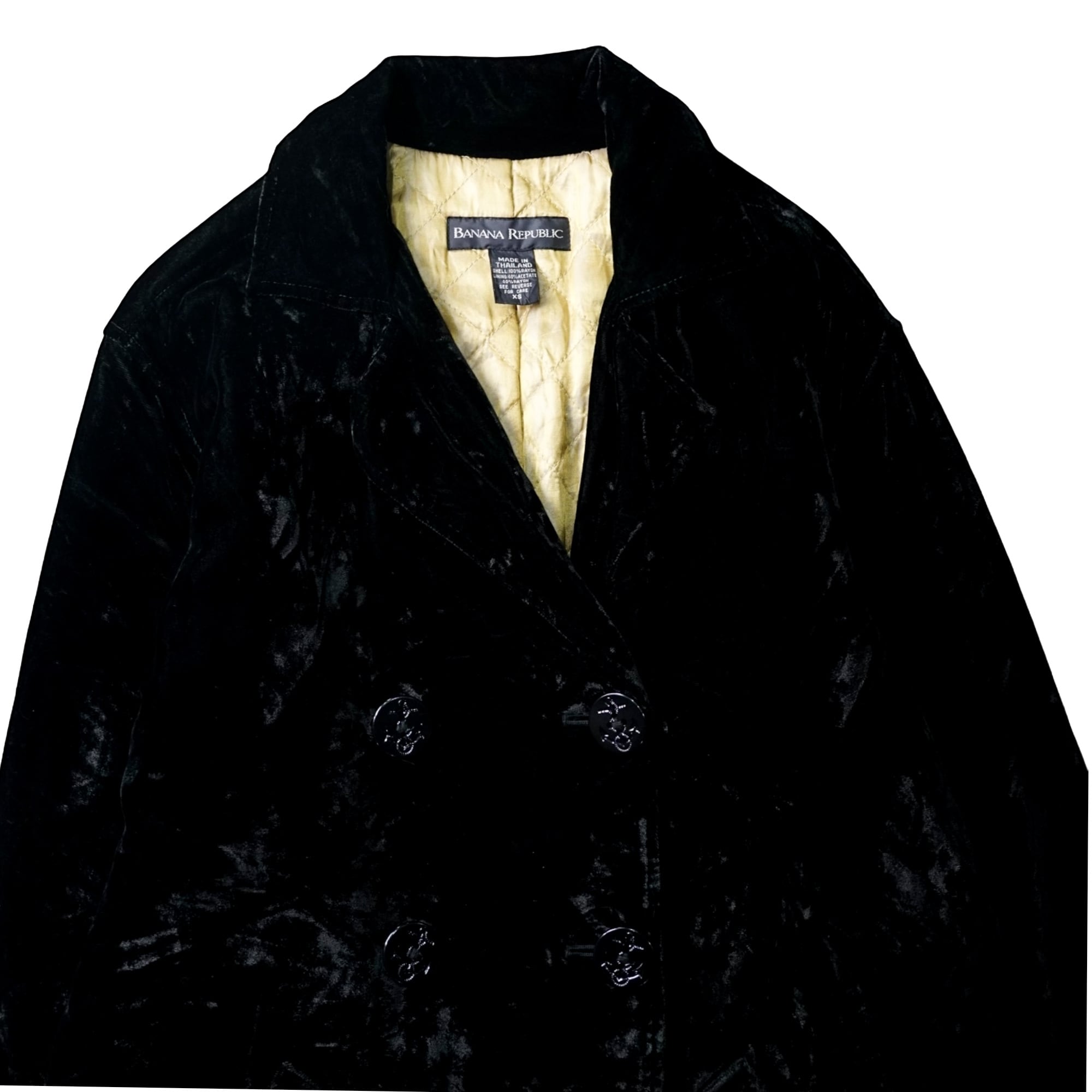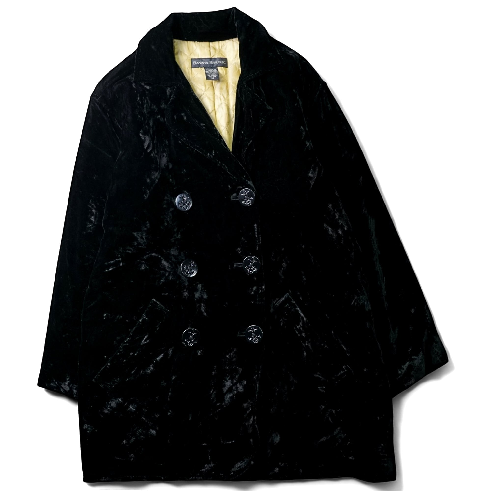 バナナリパブリックより、艶の深淵を纏った “ブラックベロア” のダブルブレストコートが入荷。