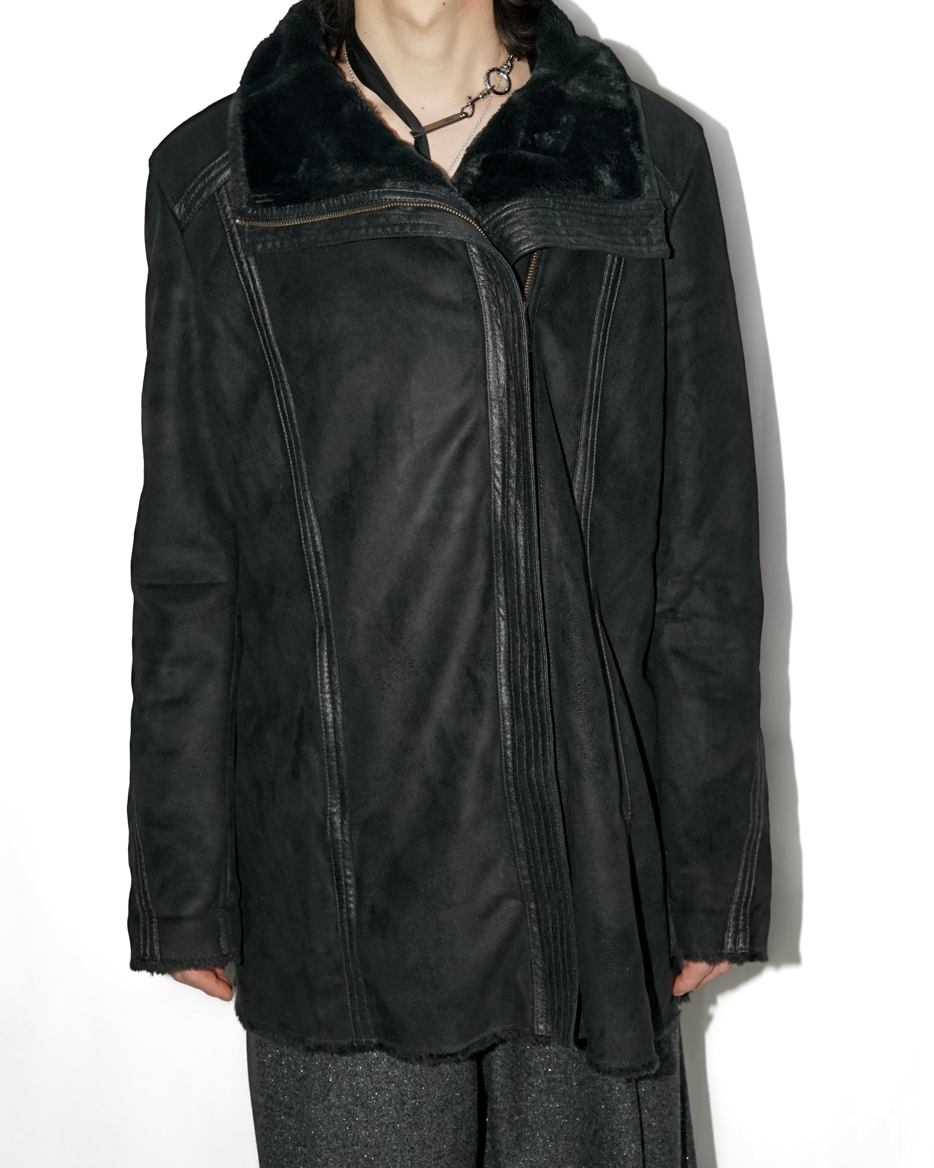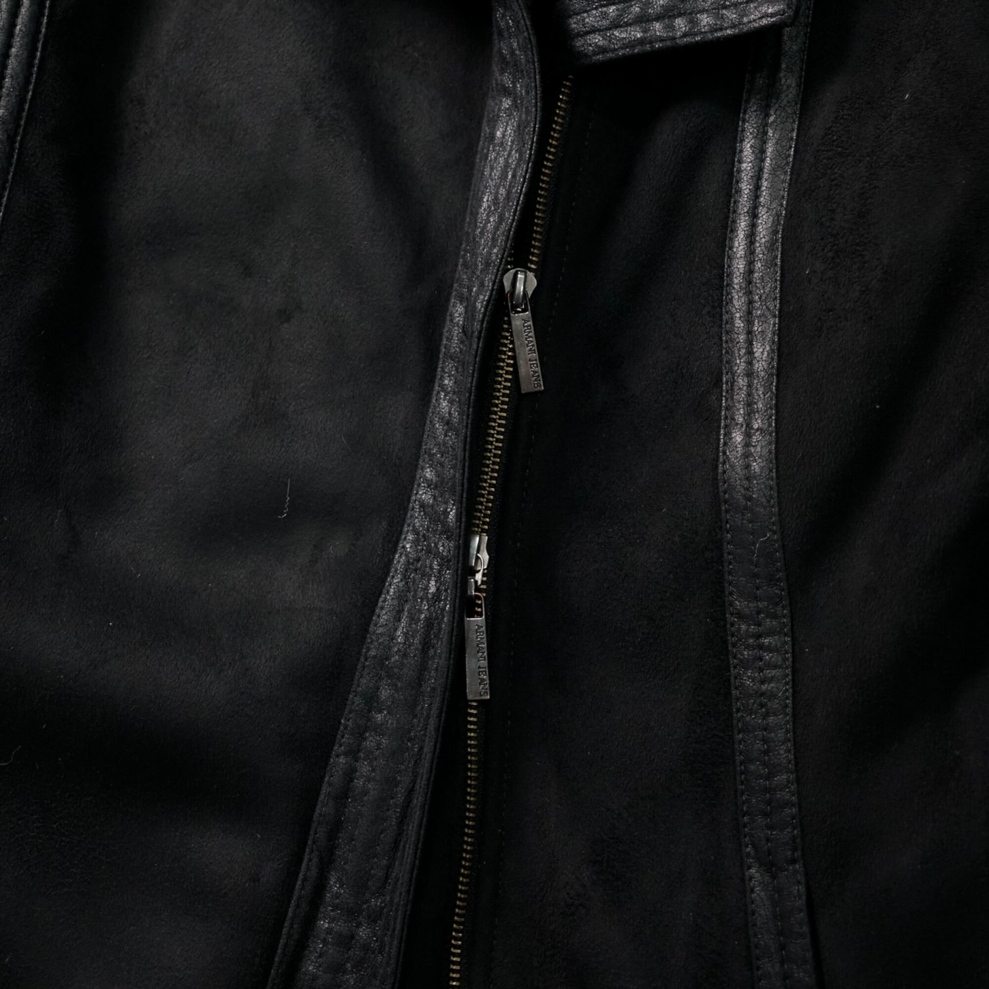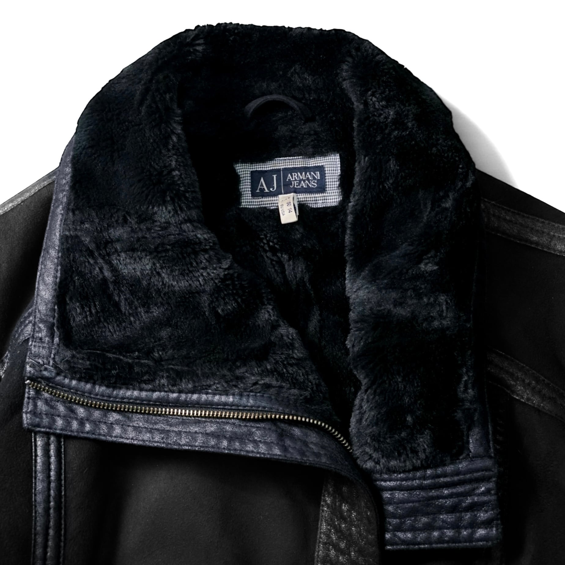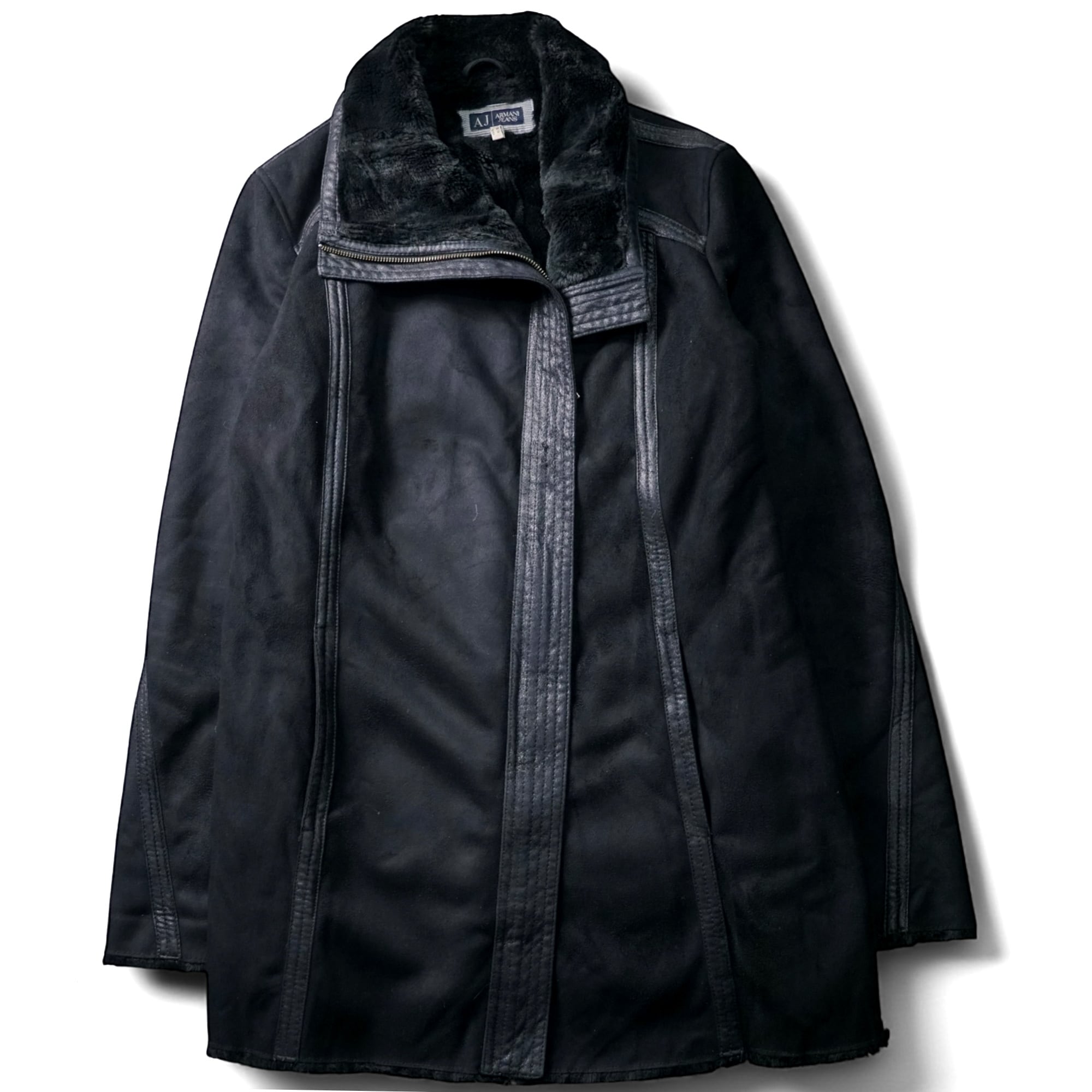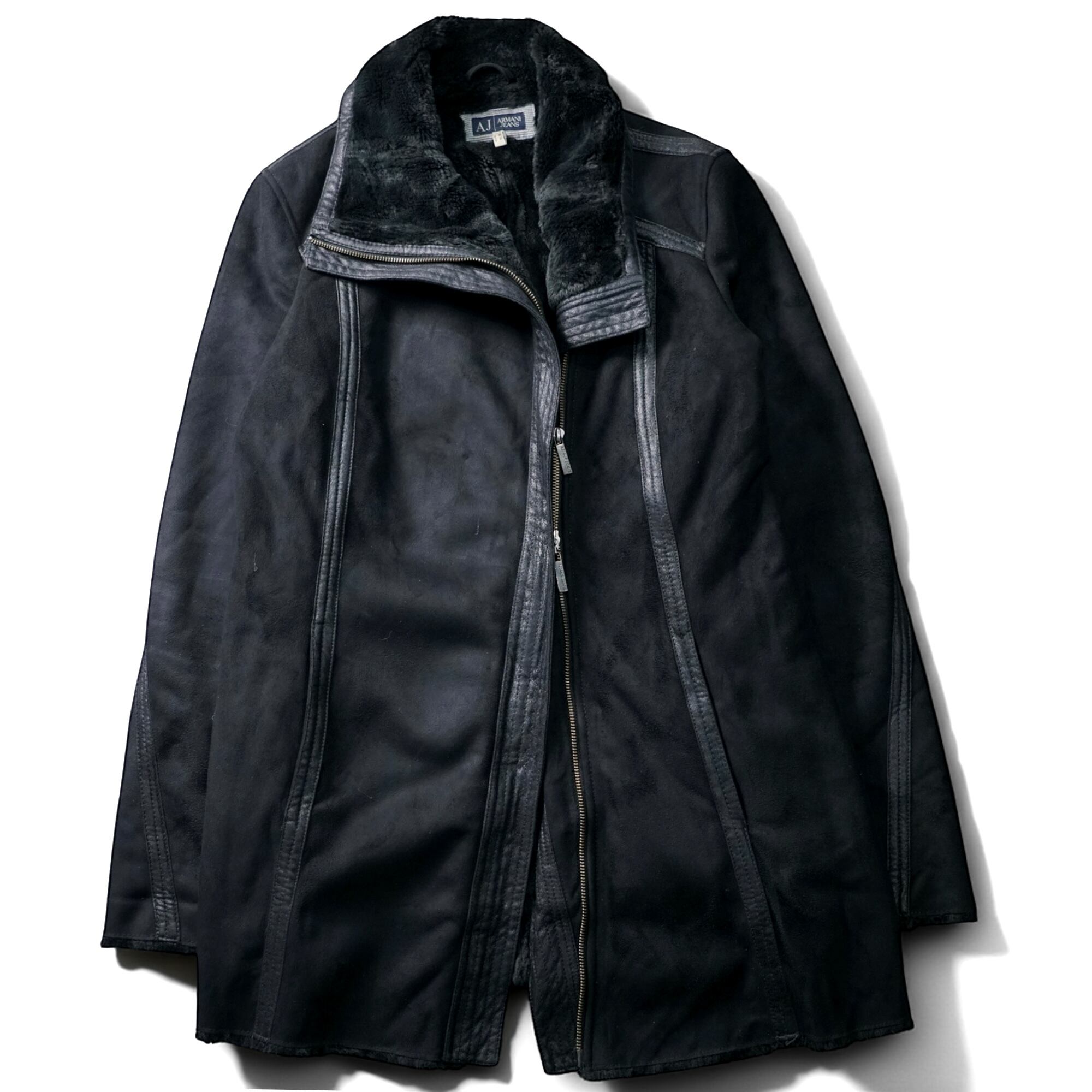 アルマーニ ジーンズより、存在感抜群のフェイクムートン・ダブルジップコート。