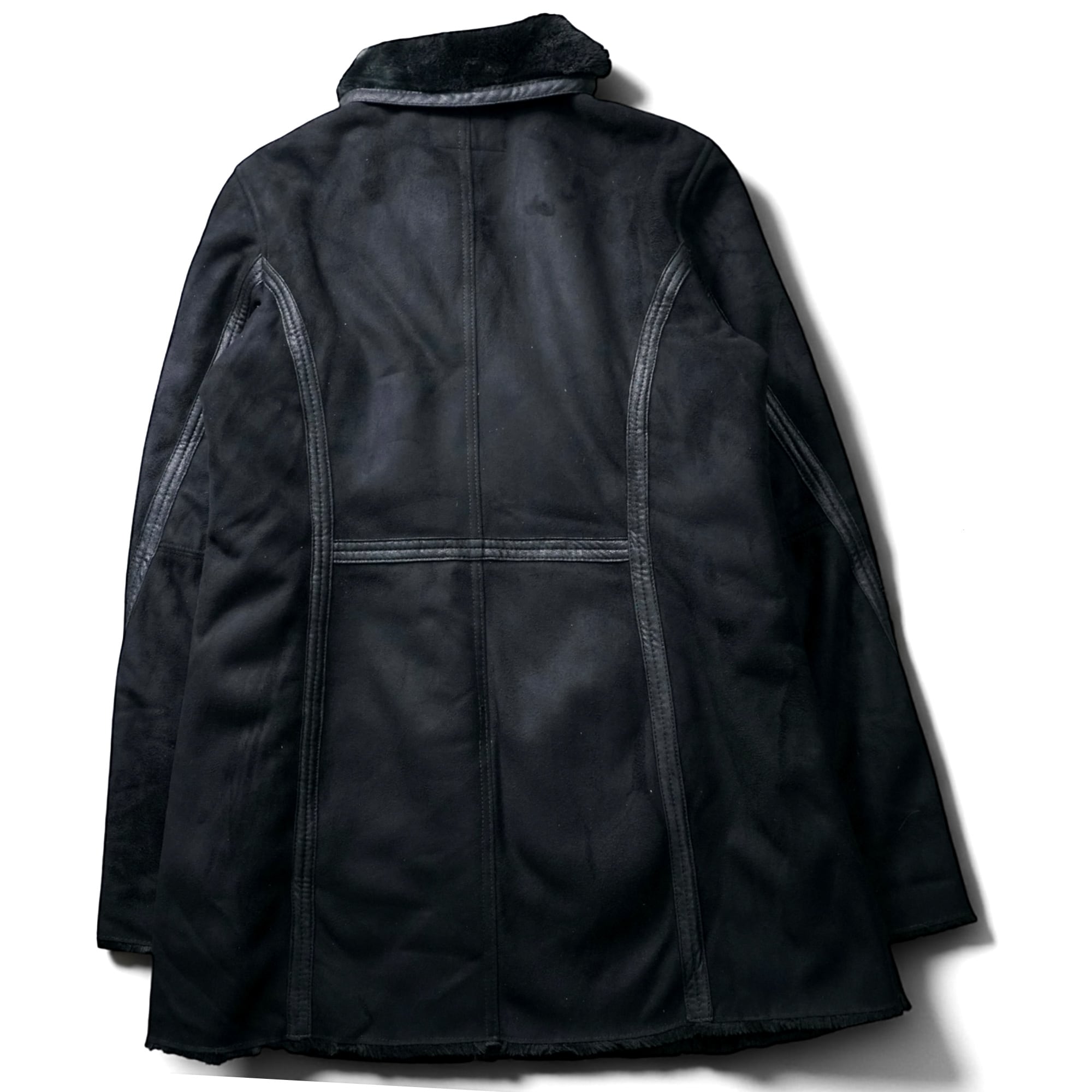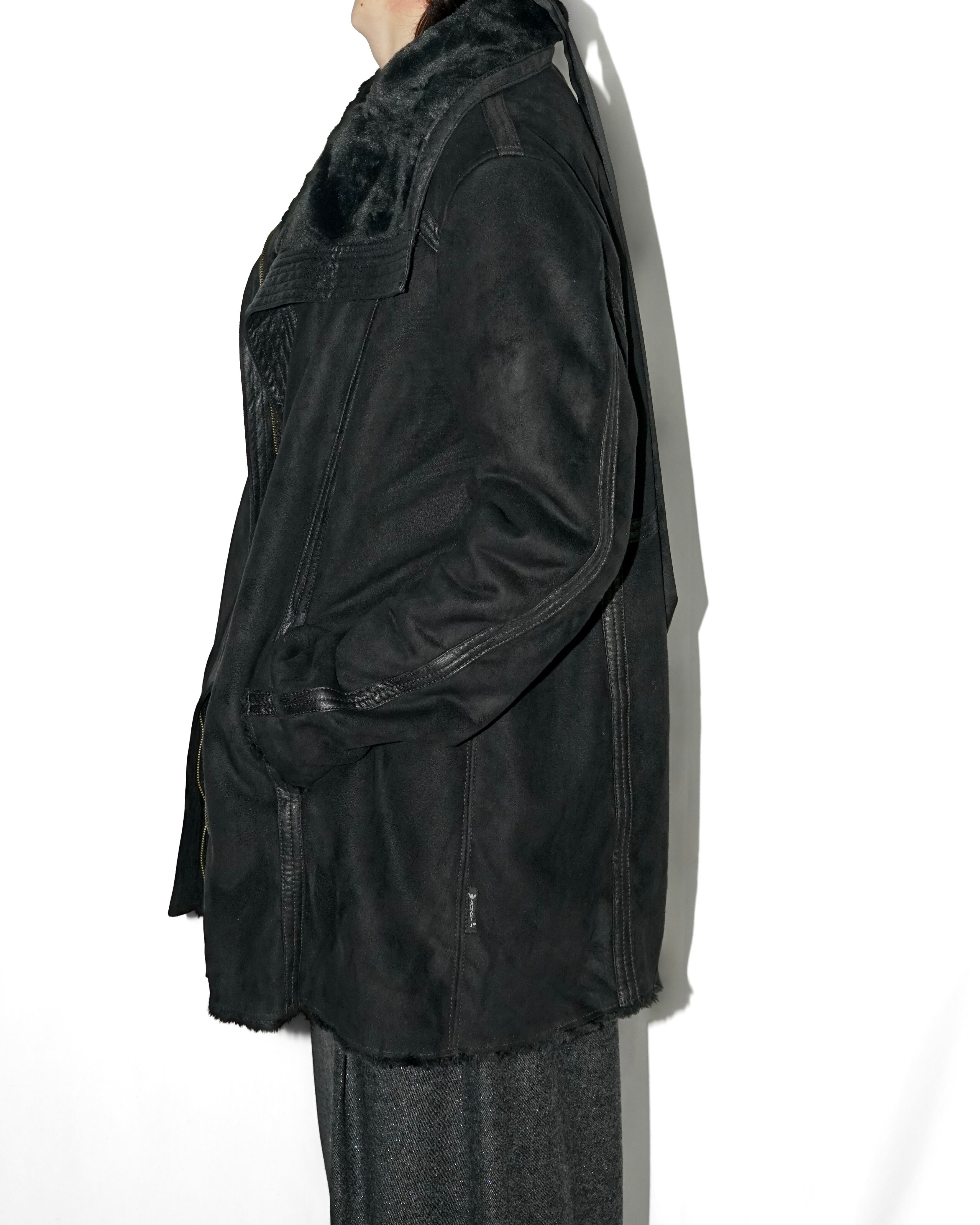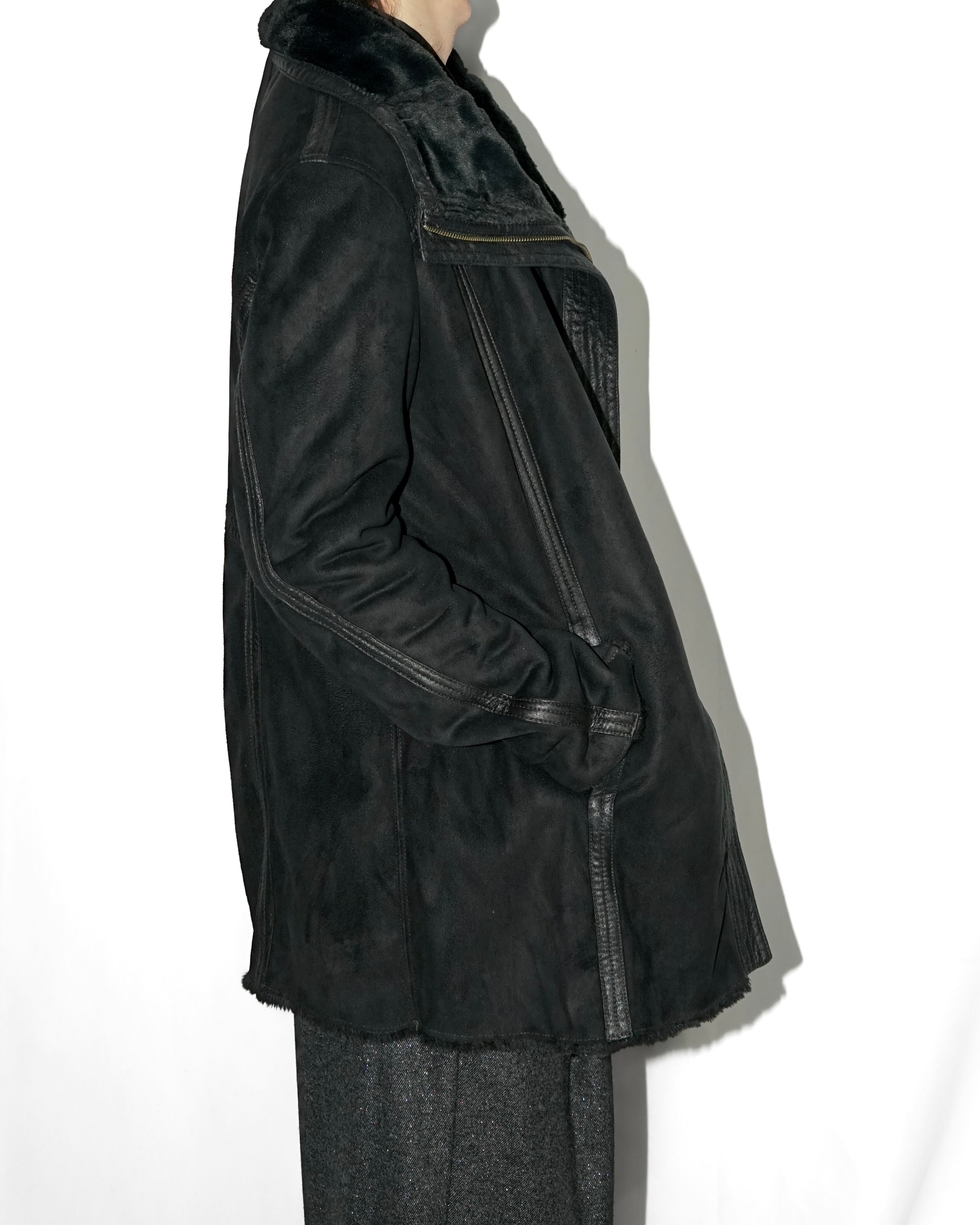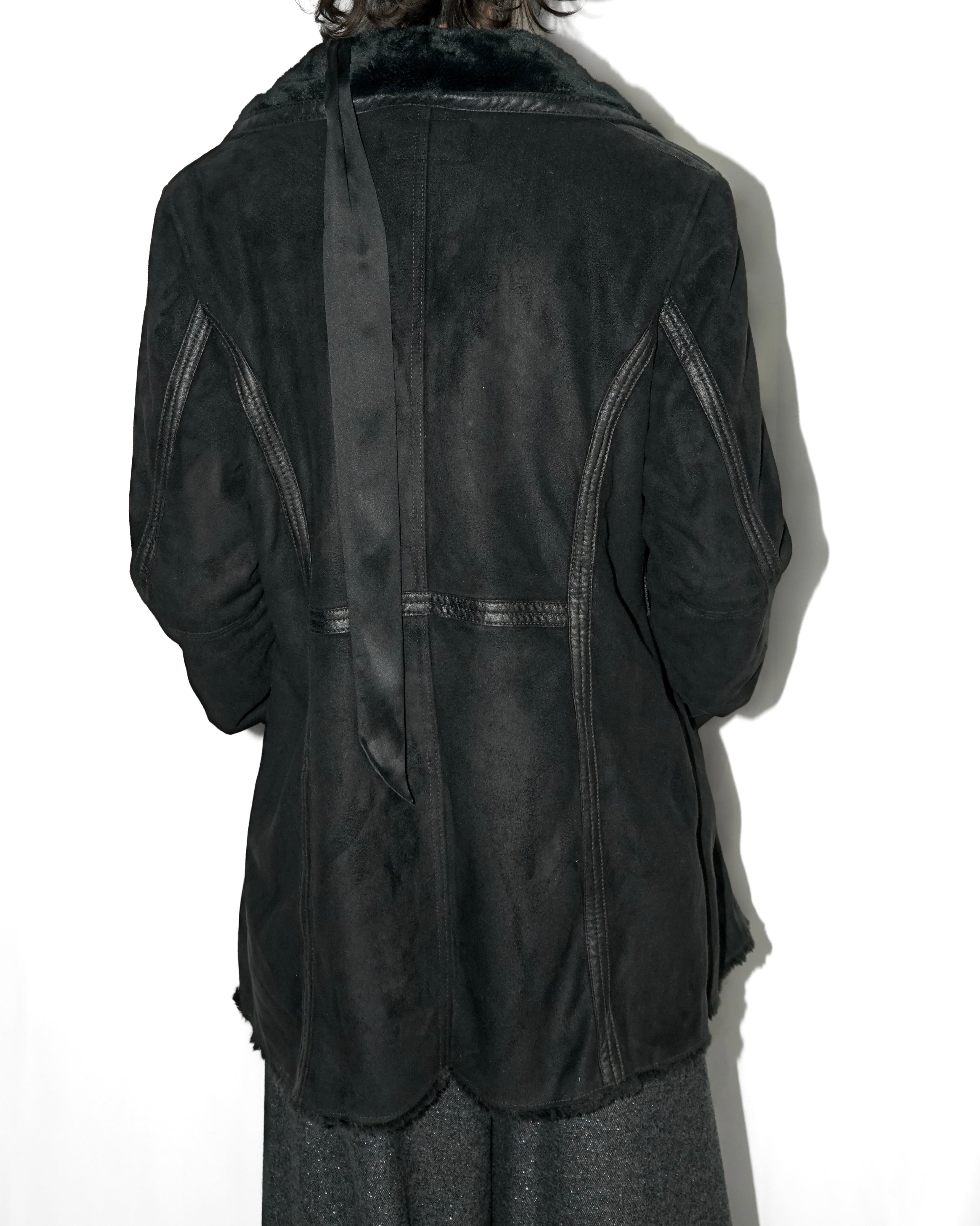深みのあるマットブラックのフェイクスエードに、上品な光沢を放つブラックファーのライニングを組み合わせたラグジュアリーな一着です。