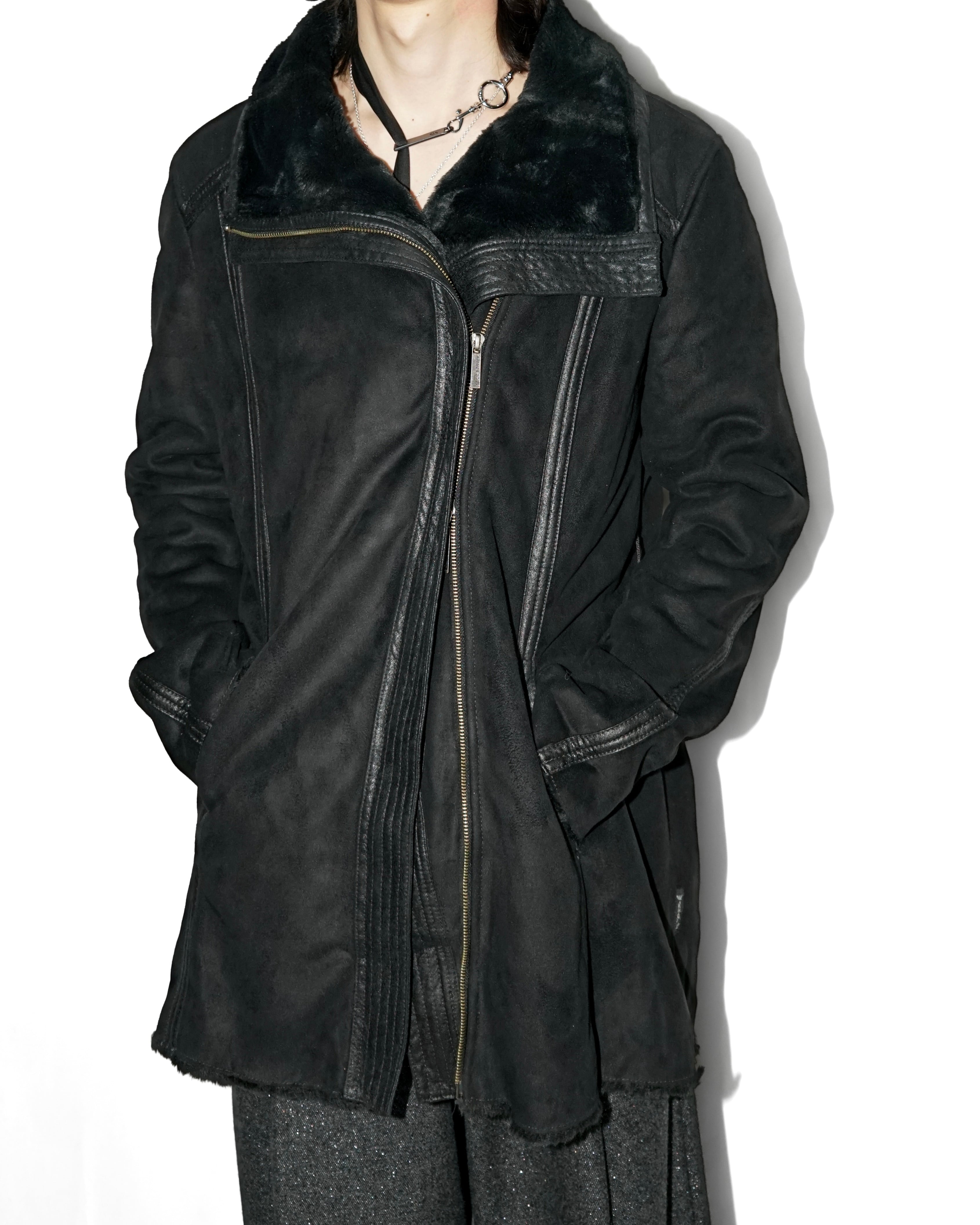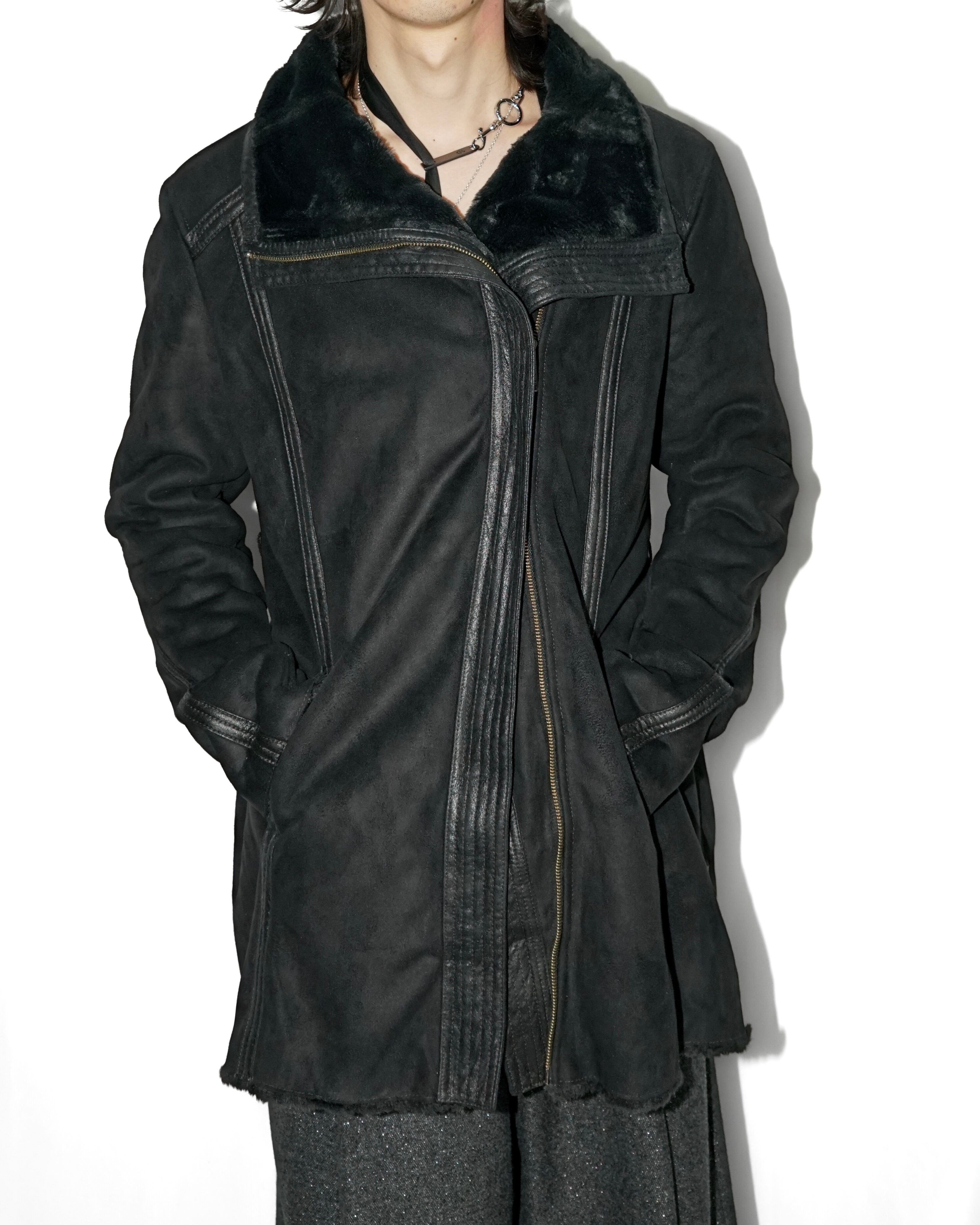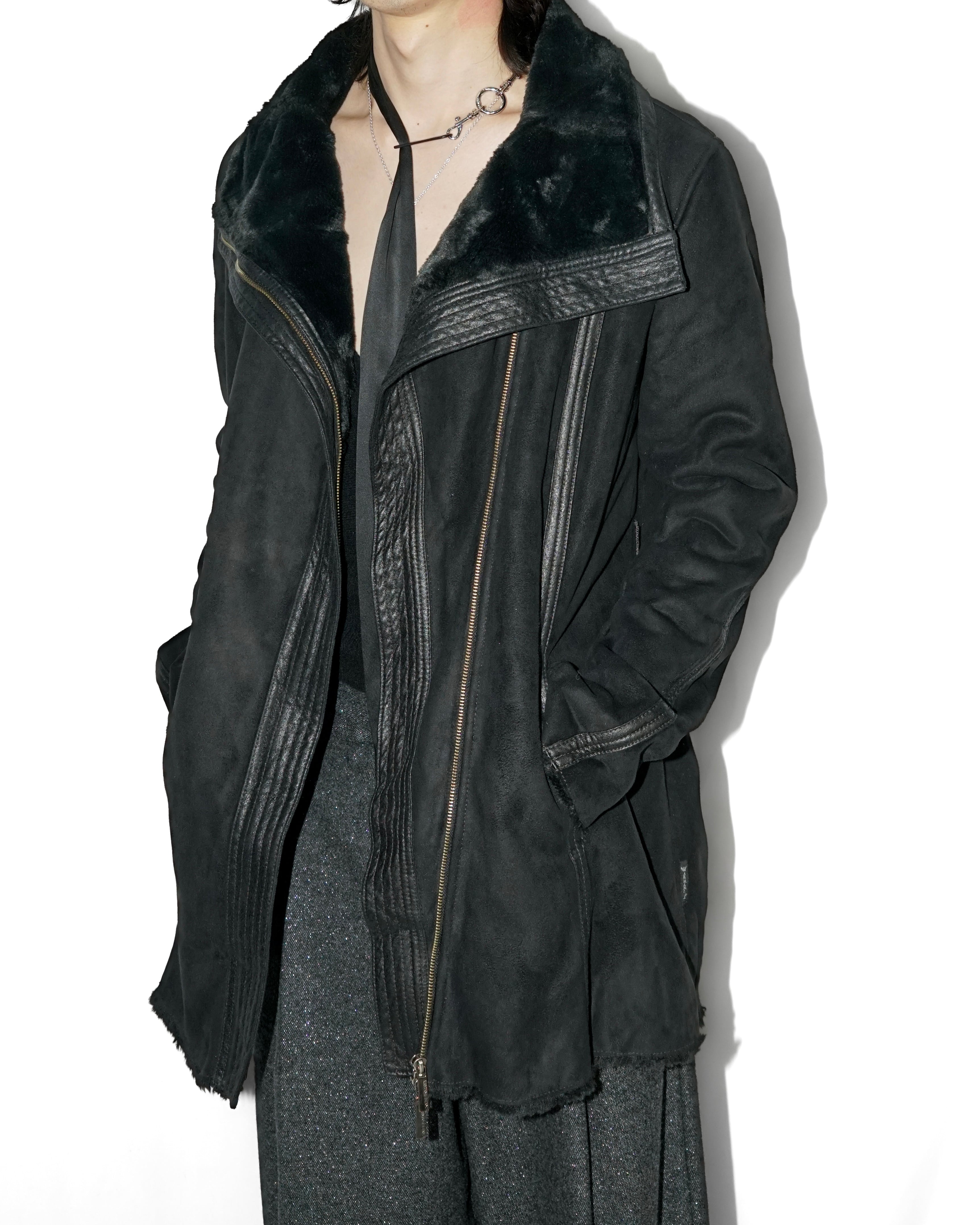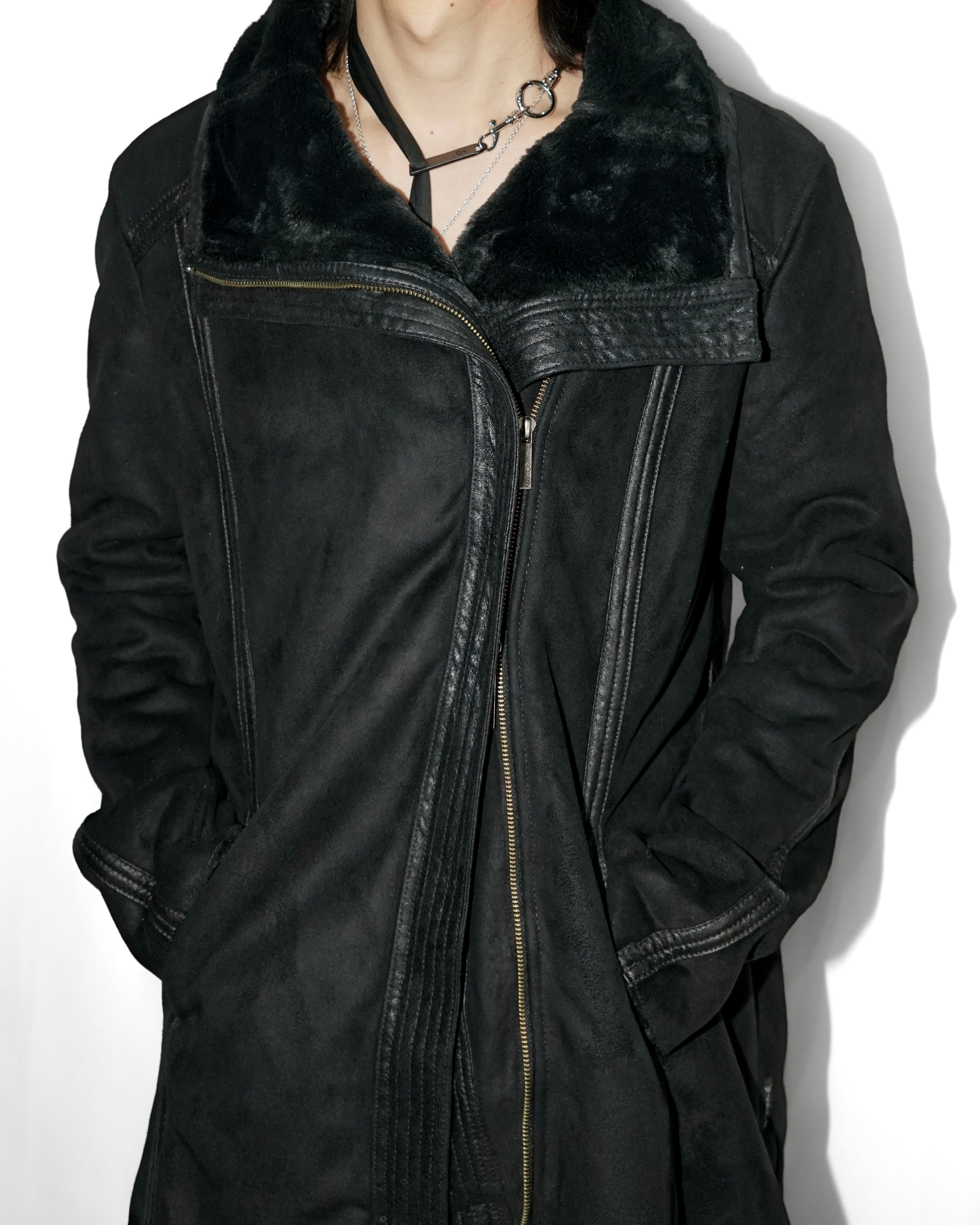深みのあるマットブラックのフェイクスエードに、上品な光沢を放つブラックファーのライニングを組み合わせたラグジュアリーな一着です。
