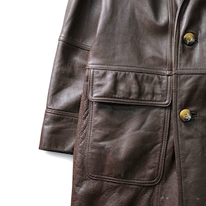 深みのあるダークブラウンのレザーは経年による豊かな陰影を纏い、ヴィンテージ特有の奥行きある風合いを楽しめる一着です。