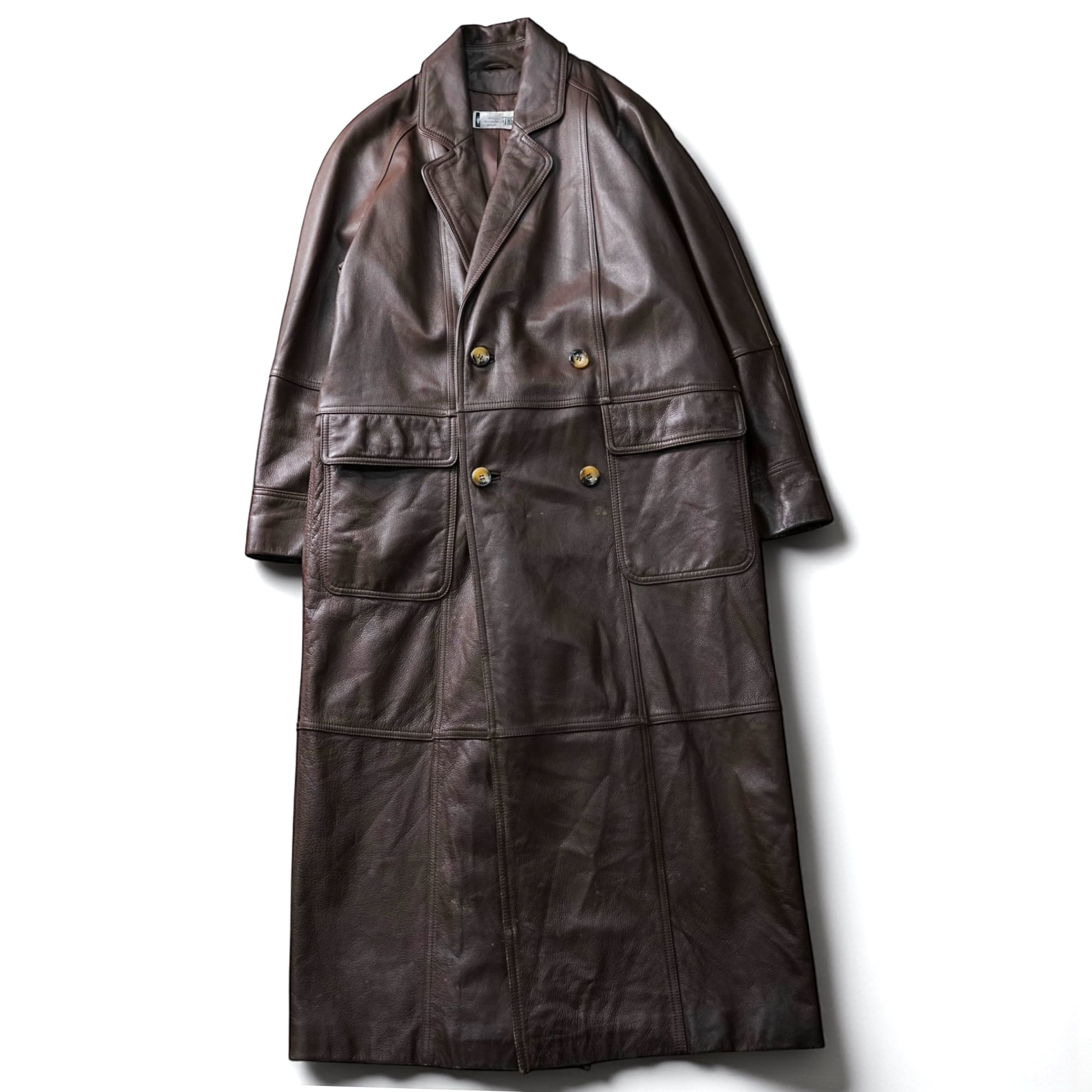 滑らかな質感と程よい厚みを持つ GENUINE LEATHER を贅沢に使用した、ダブルブレスト仕様のマキシ丈レザーコート。