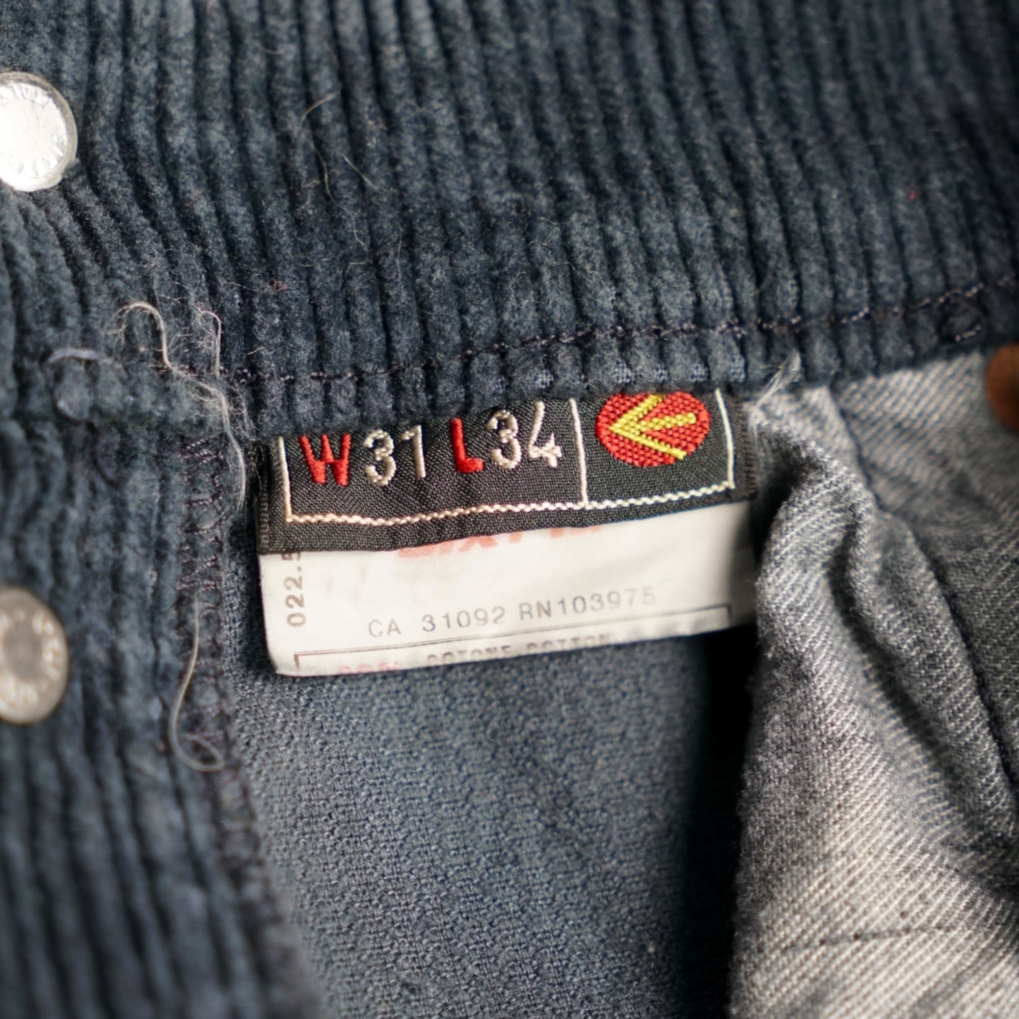 バックポケットやベルトループ周りにも加工がしっかり入っており、当時のデザインらしい“やり切った”ムードを感じさせる一本。