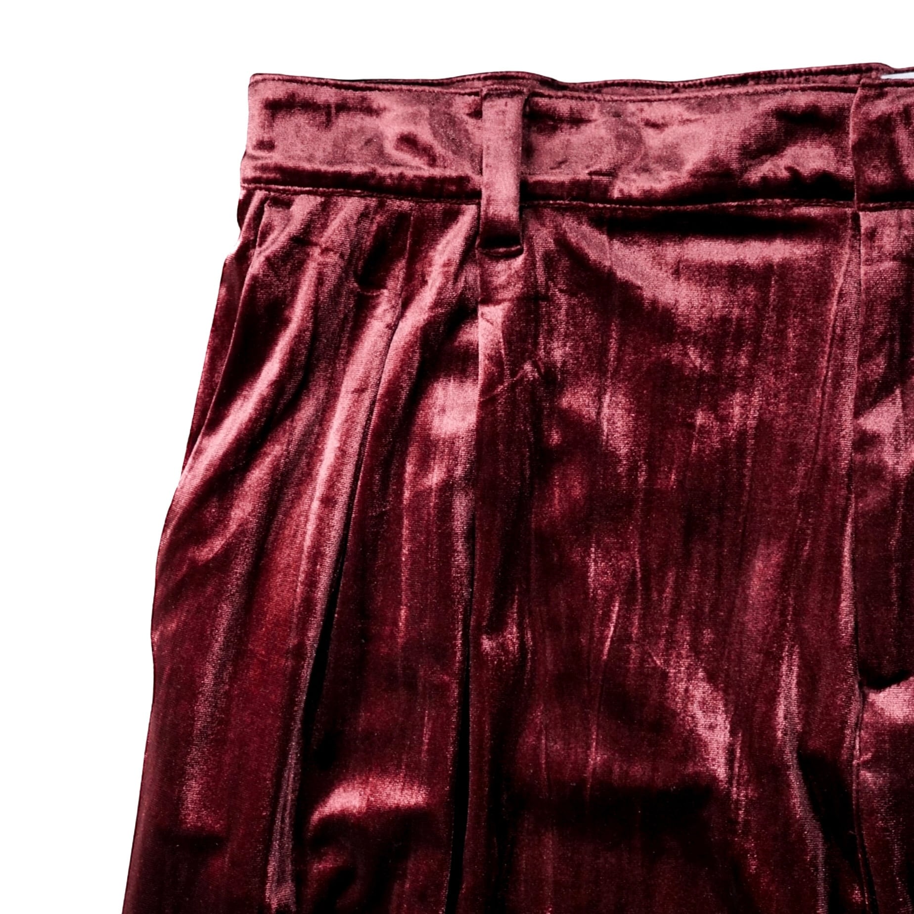 深みのあるボルドーカラーと、光の当たり方で表情を変えるベルベット素材が、クラシックかつ艶やかなムードを演出します。