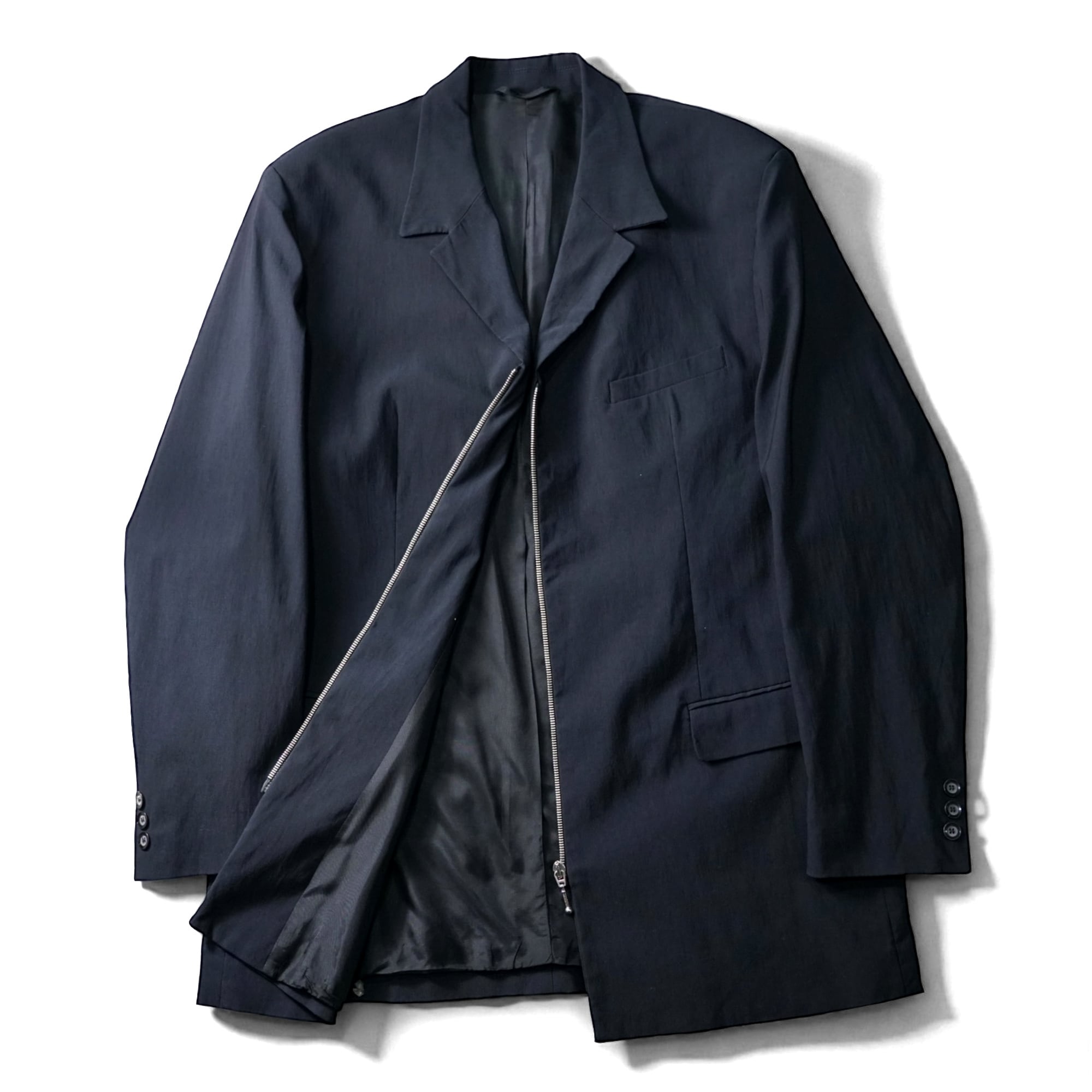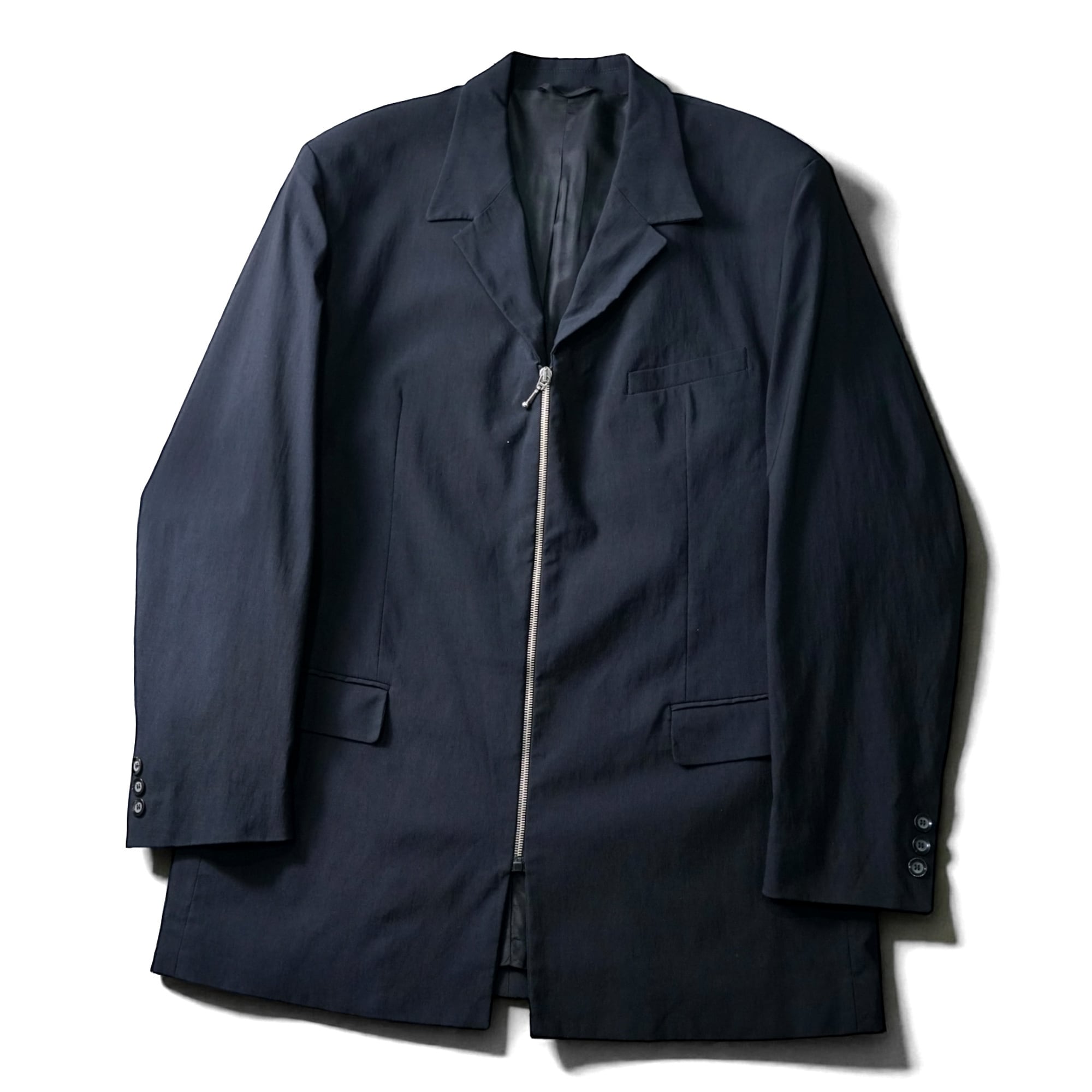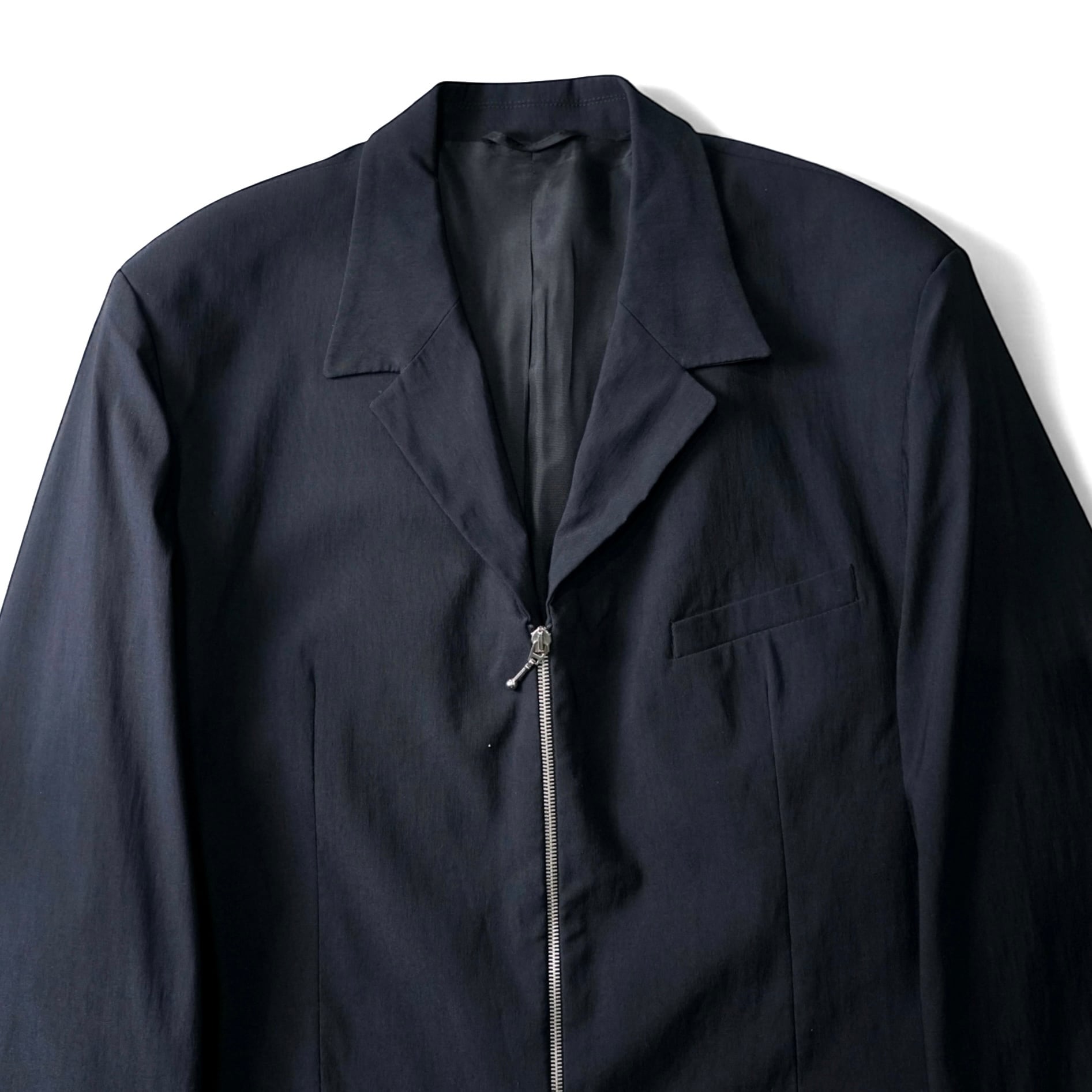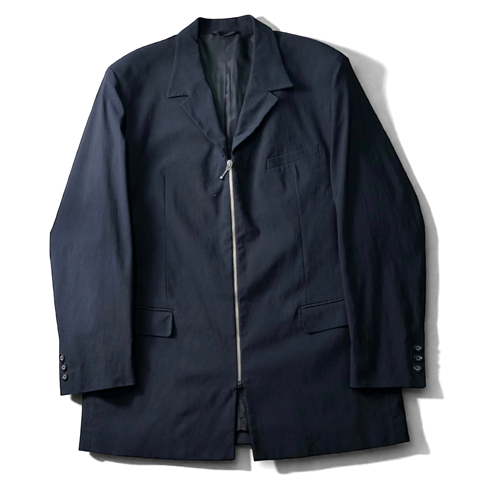 モードな空気感漂うZIPテーラードジャケット。